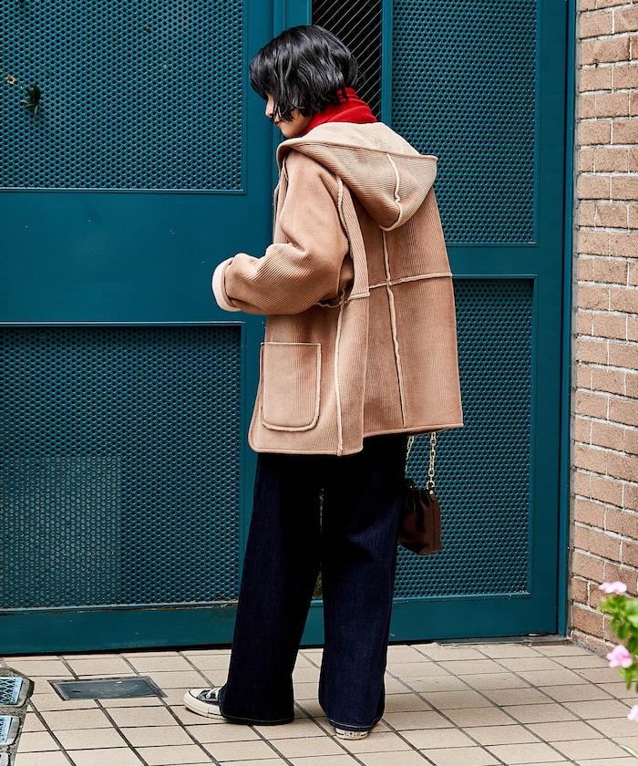 即使將兩面朝外穿著,也能瞥見內襯,隨性可愛。