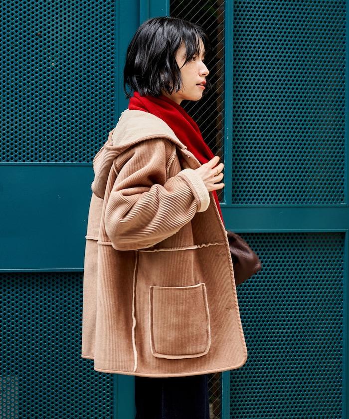 柔軟的燈芯絨面料和圍巾是雙面的,既保暖又輕便舒適。