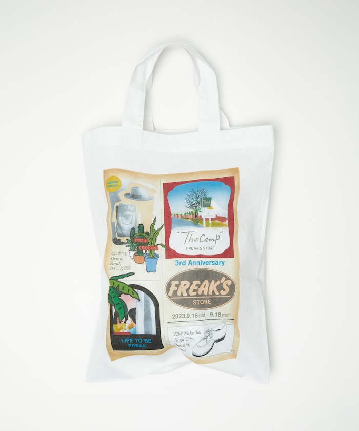 "The Camp" FREAK'S STORE",以紀念 "The Camp" FREAK'S STORE 三週年。設計以 "美國舊雜誌封面 "的形象為基礎。該設計以 "美國舊雜誌封面 "的形象為基礎,具有幾分懷舊和清新的感覺。