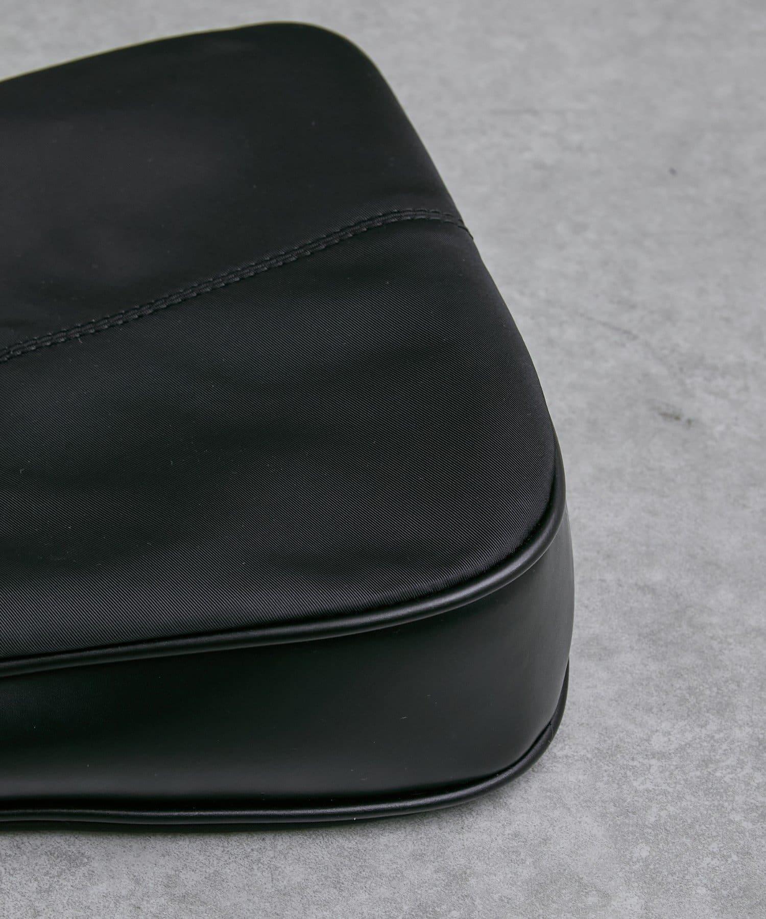包包的材質是具有泥濘質感的合成皮革。通過使用光澤度較低的尼龍材料,營造出簡潔明快的氛圍。