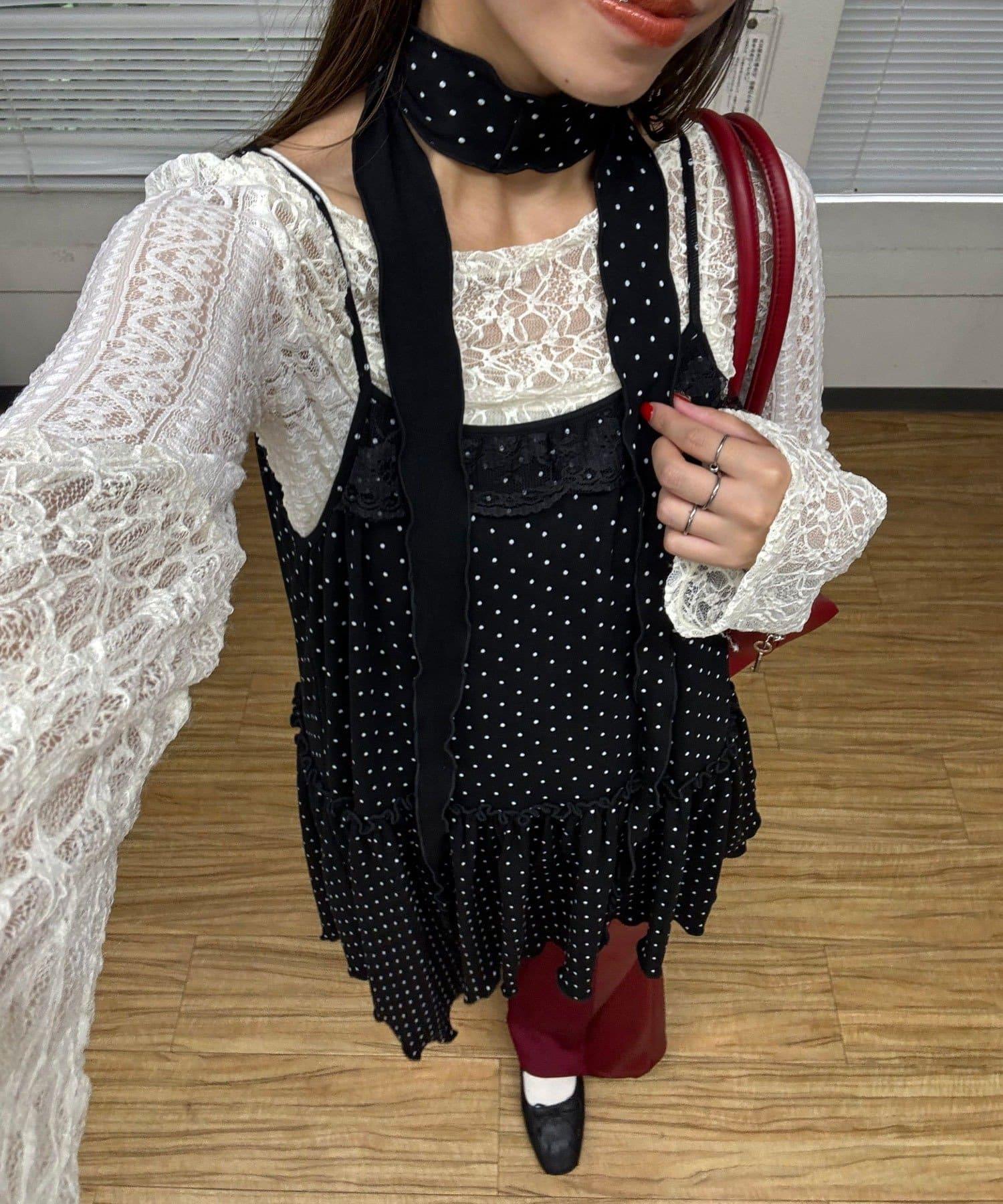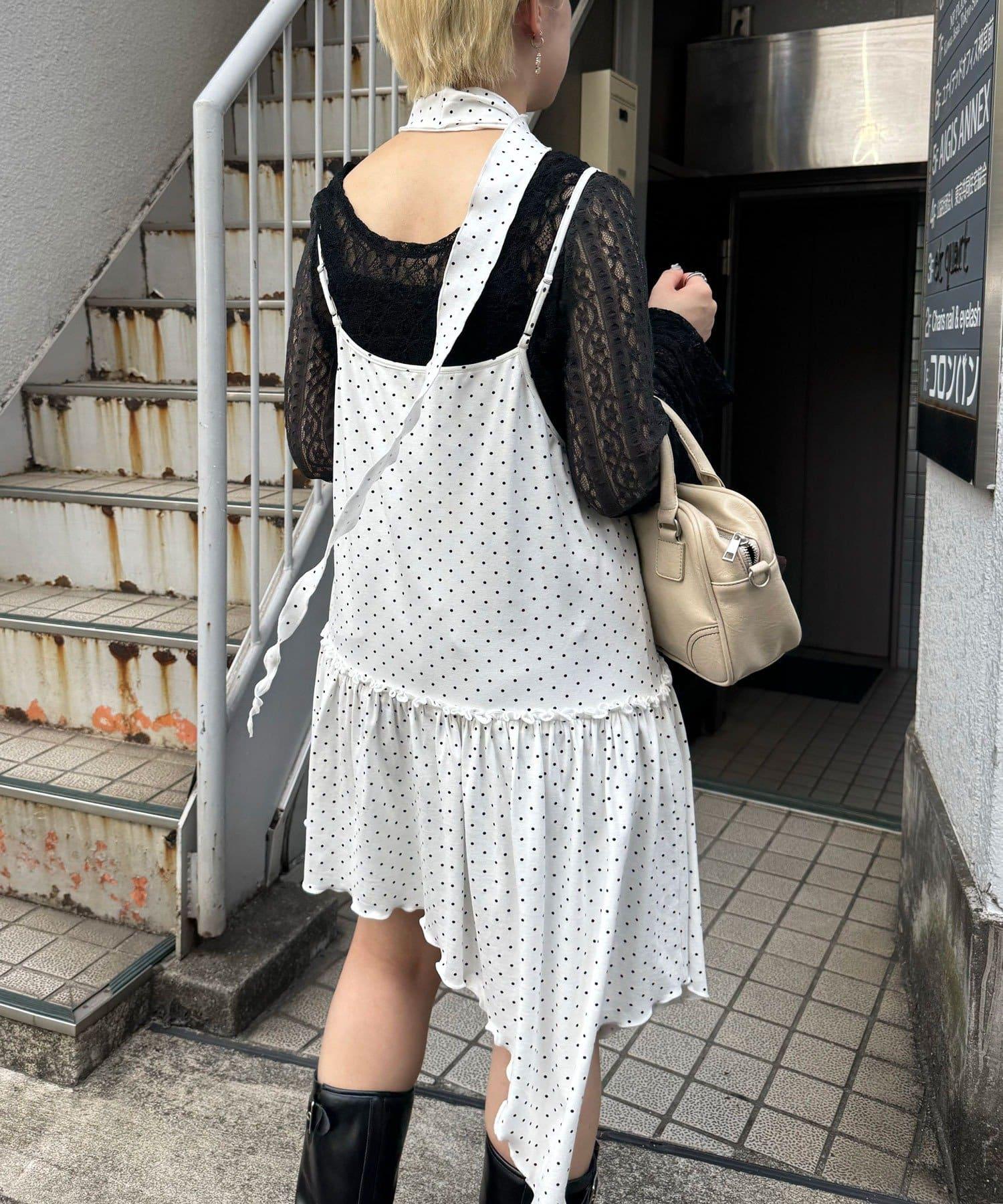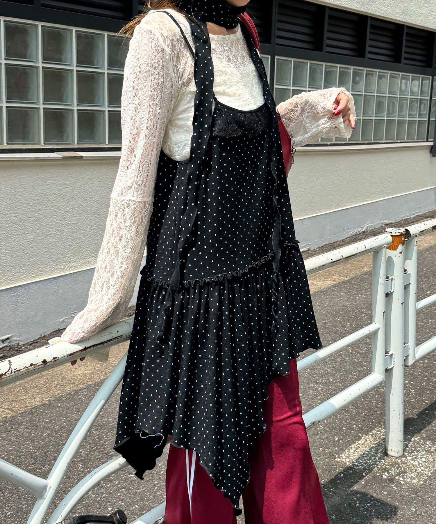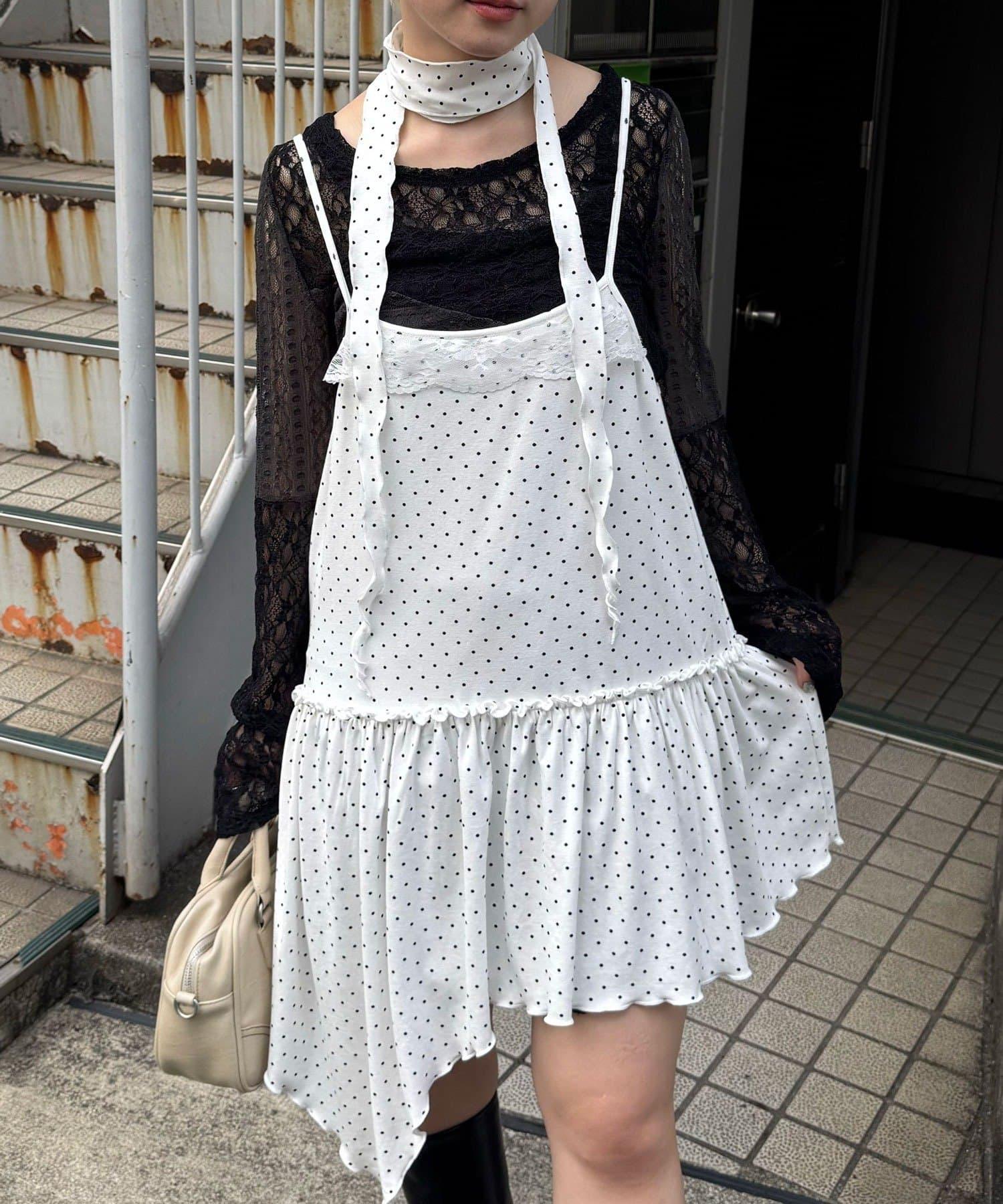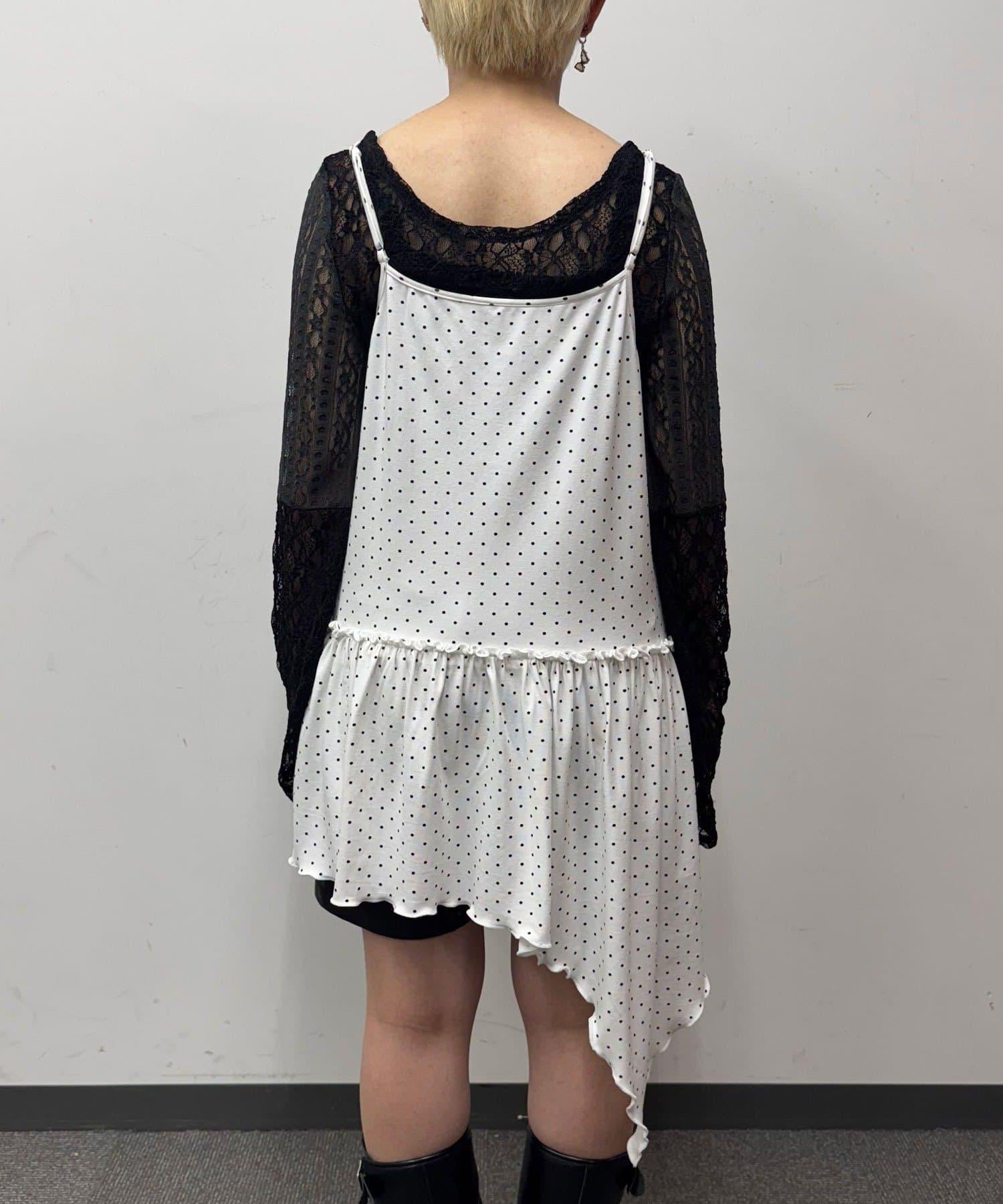 吊帶連身裙,採用蕾絲、圓點、不對稱設計和精巧的細節。