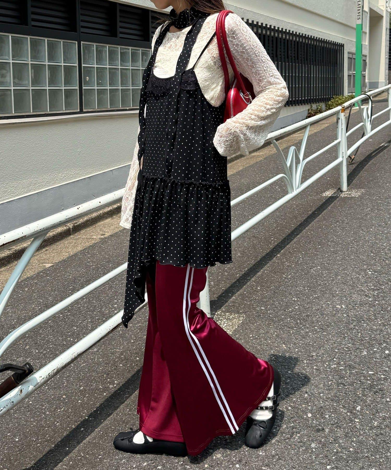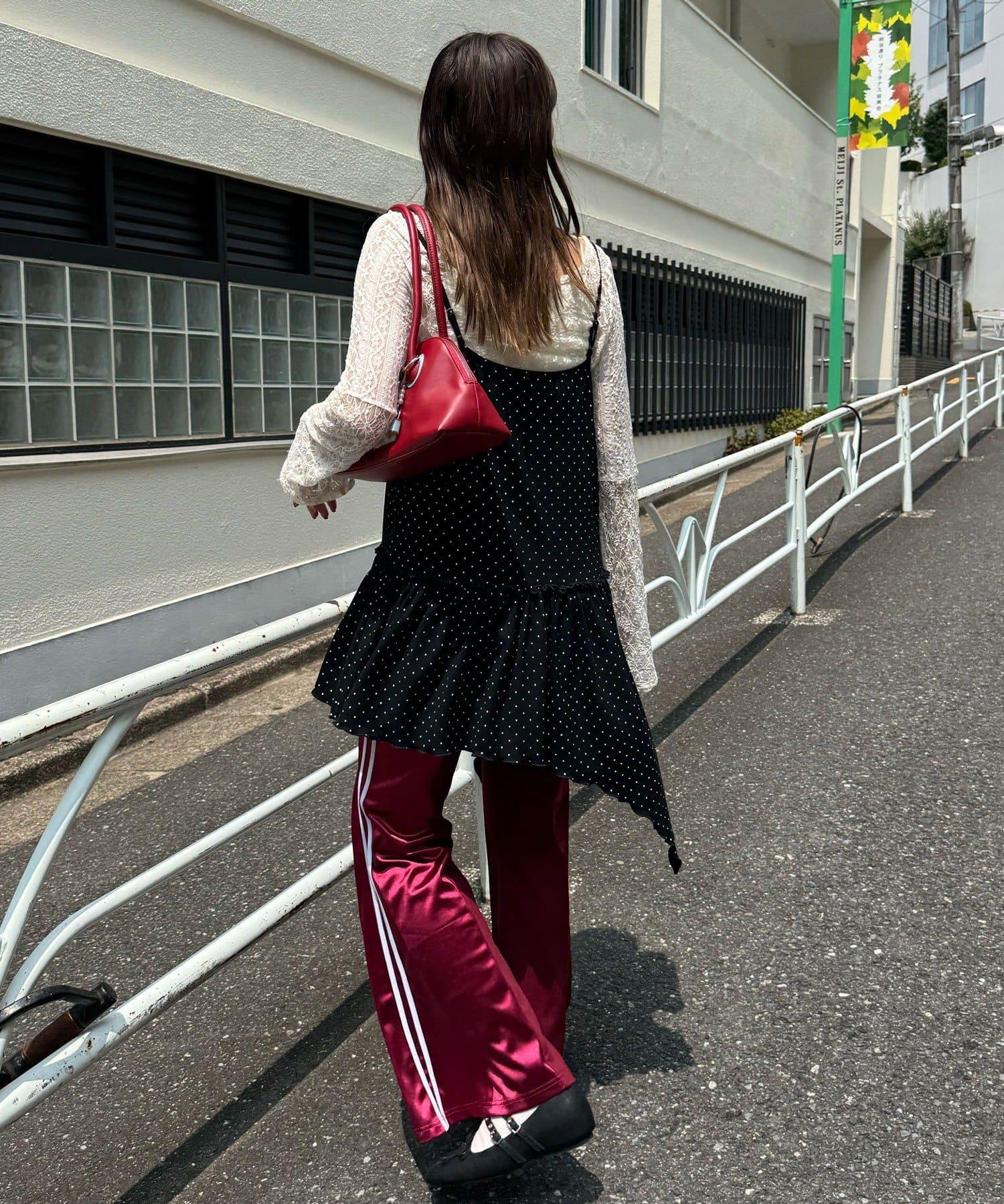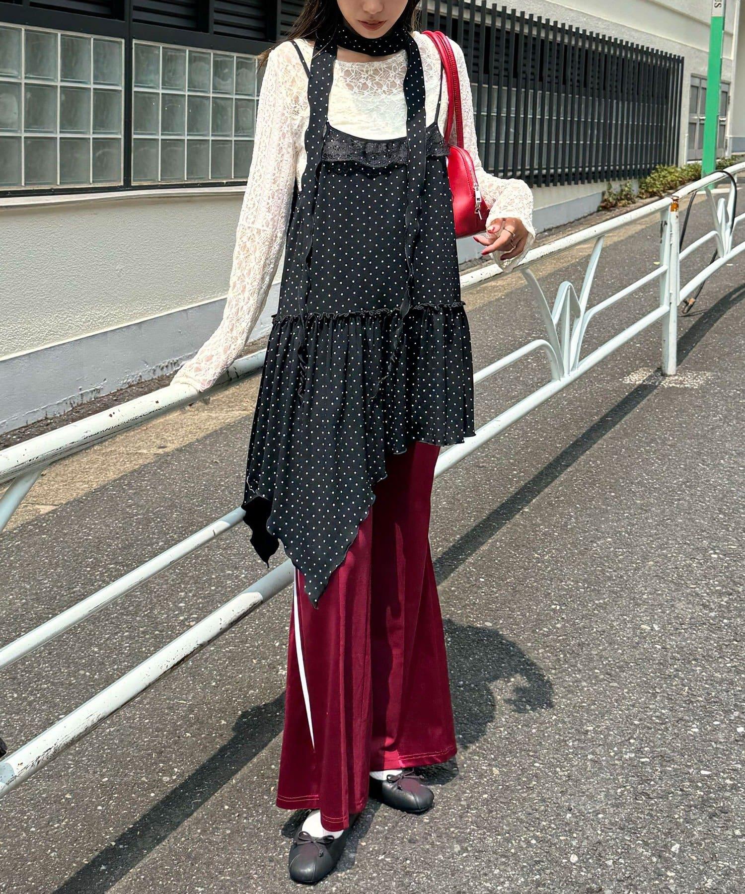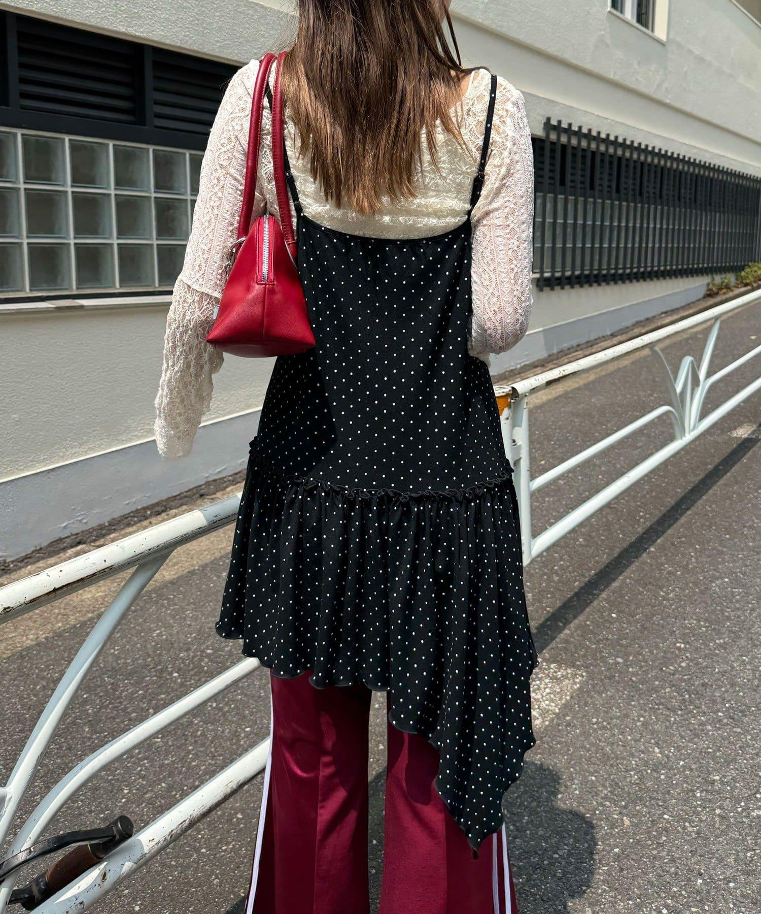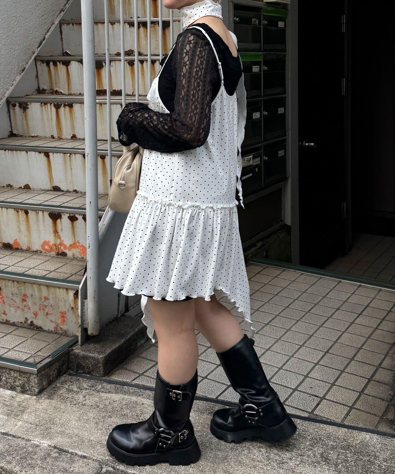 吊帶連身裙,採用蕾絲、圓點、不對稱設計和精巧的細節。