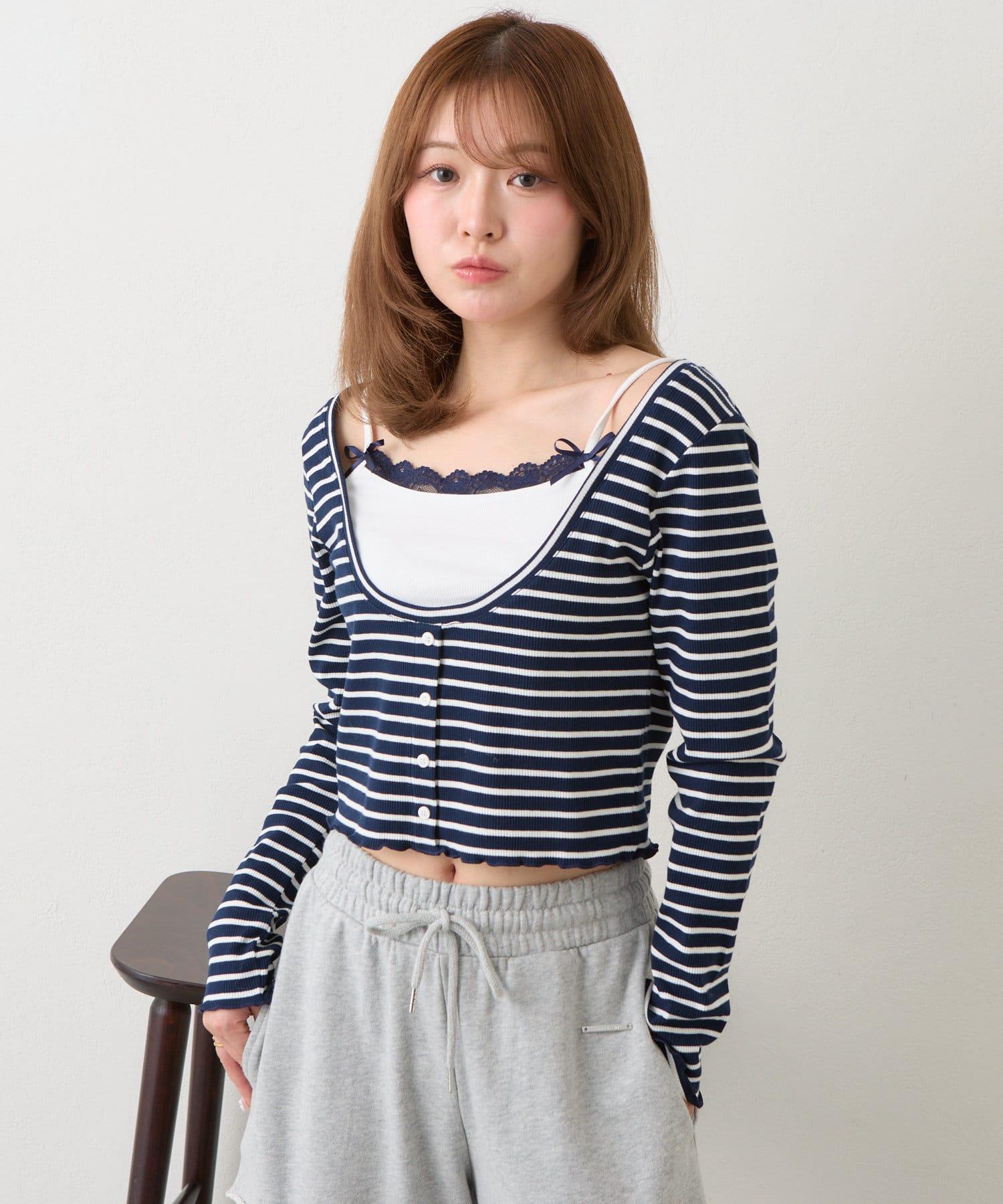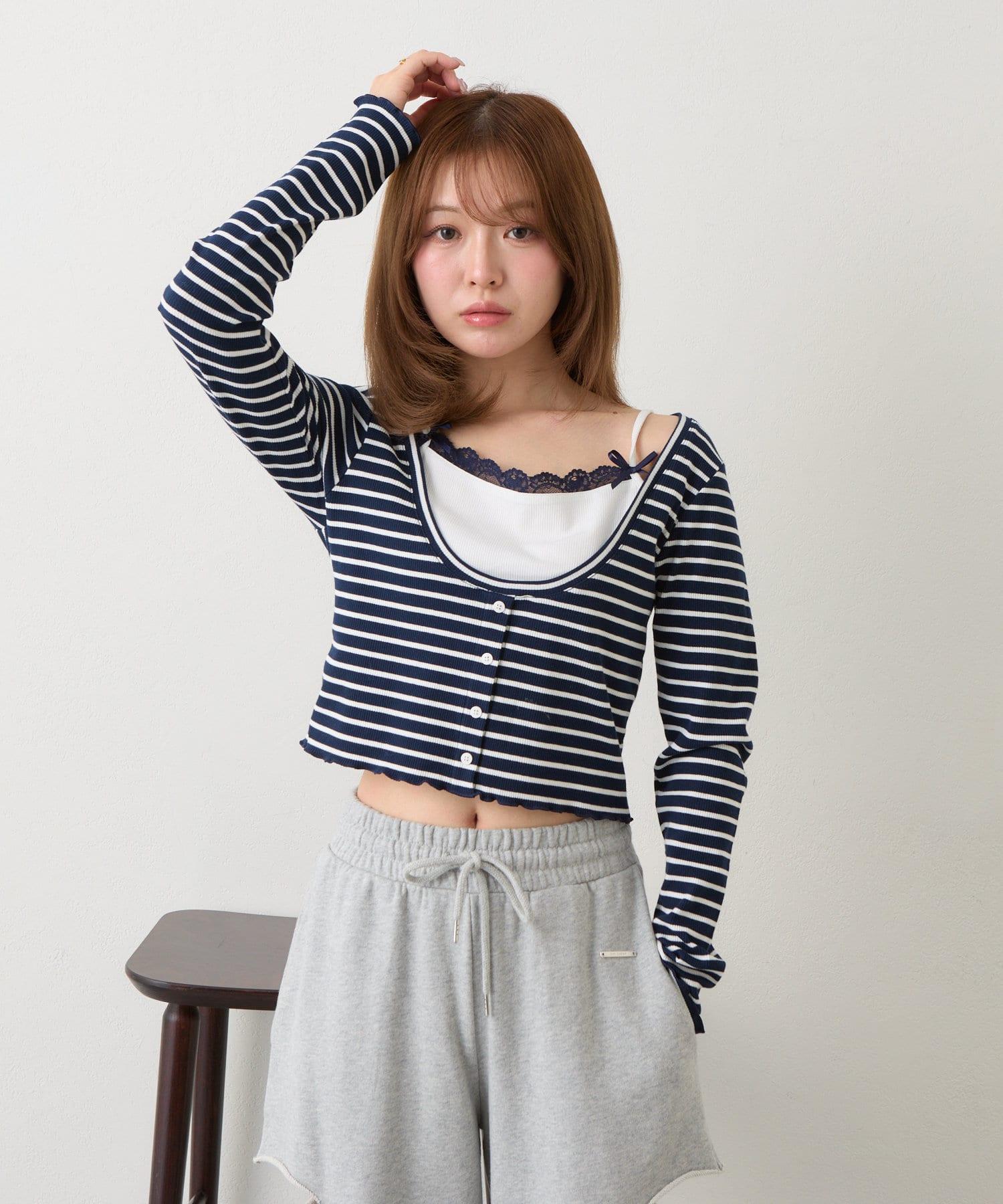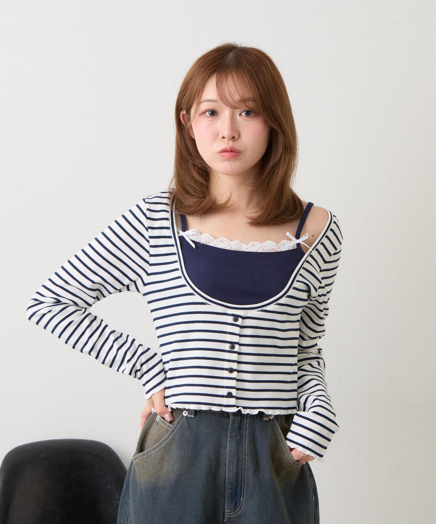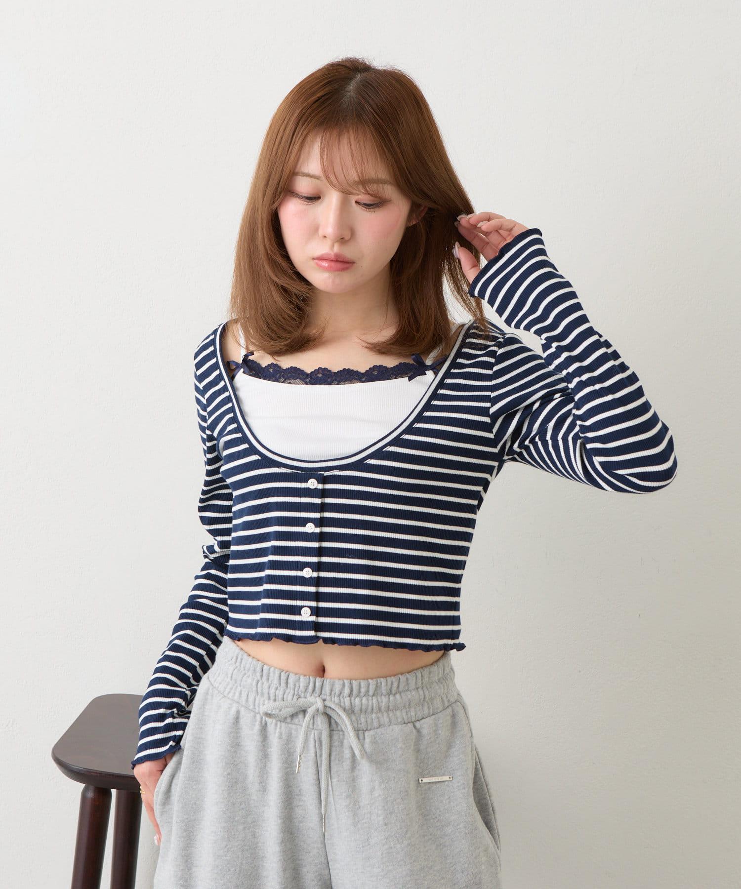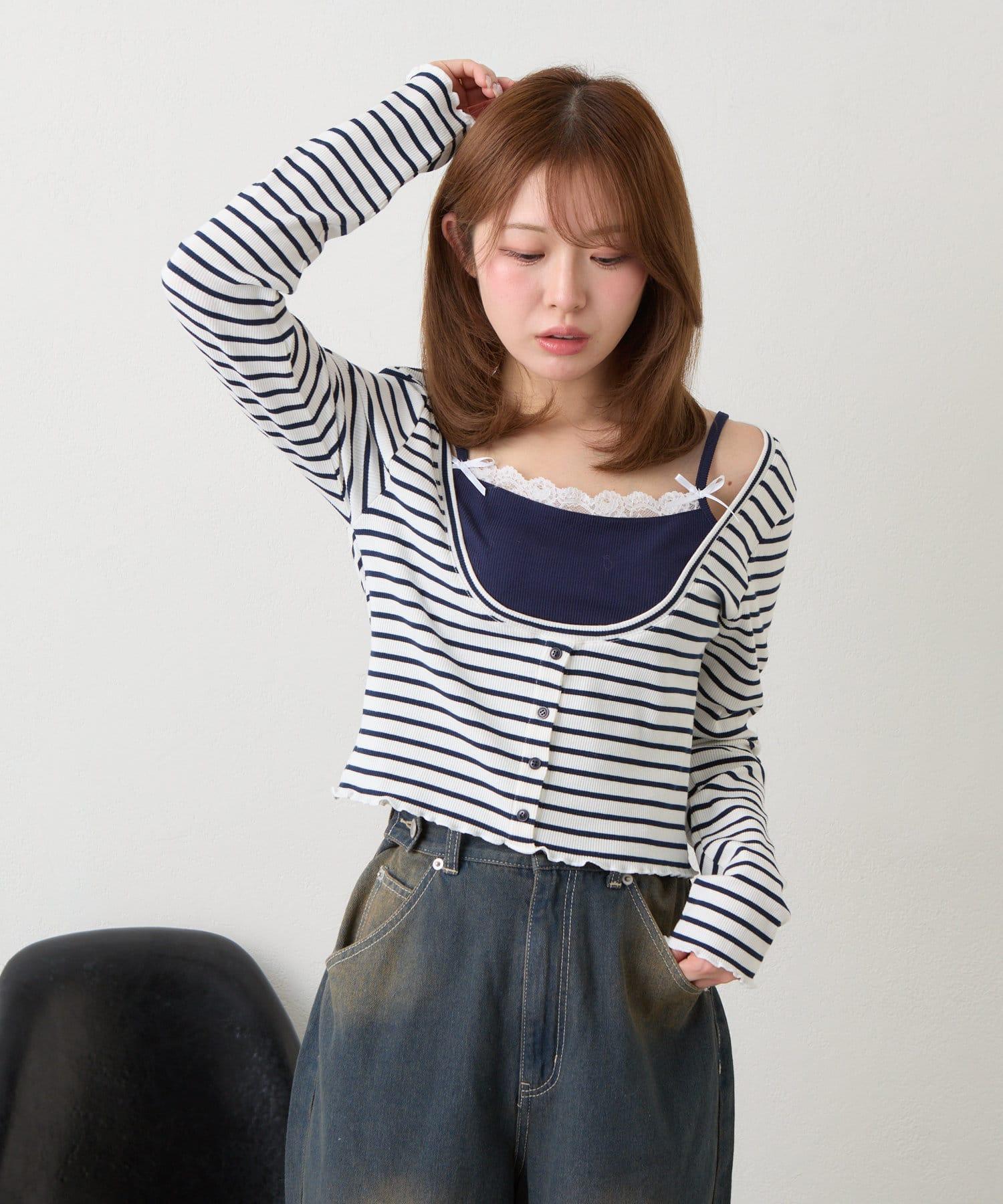 吊帶套裝 / 層次感 / 收腰 / 迷你 T 恤 / 韓版時尚 / 國際流行 / 條紋