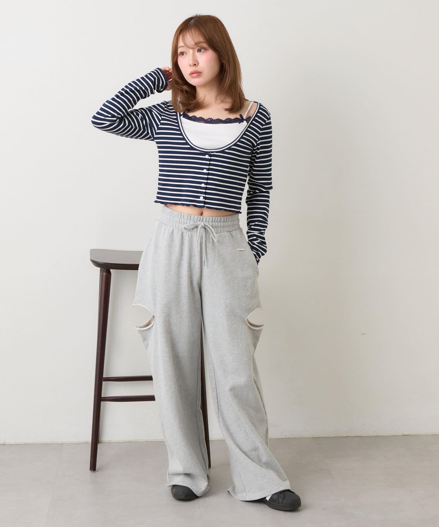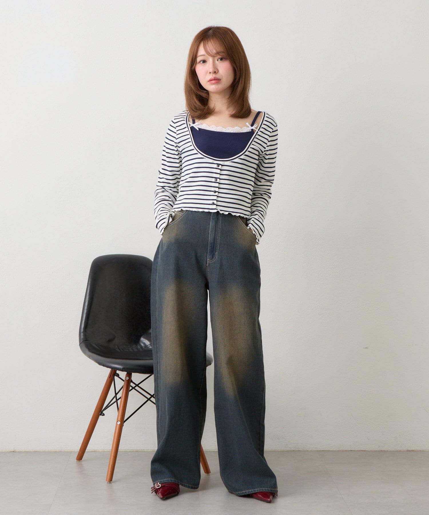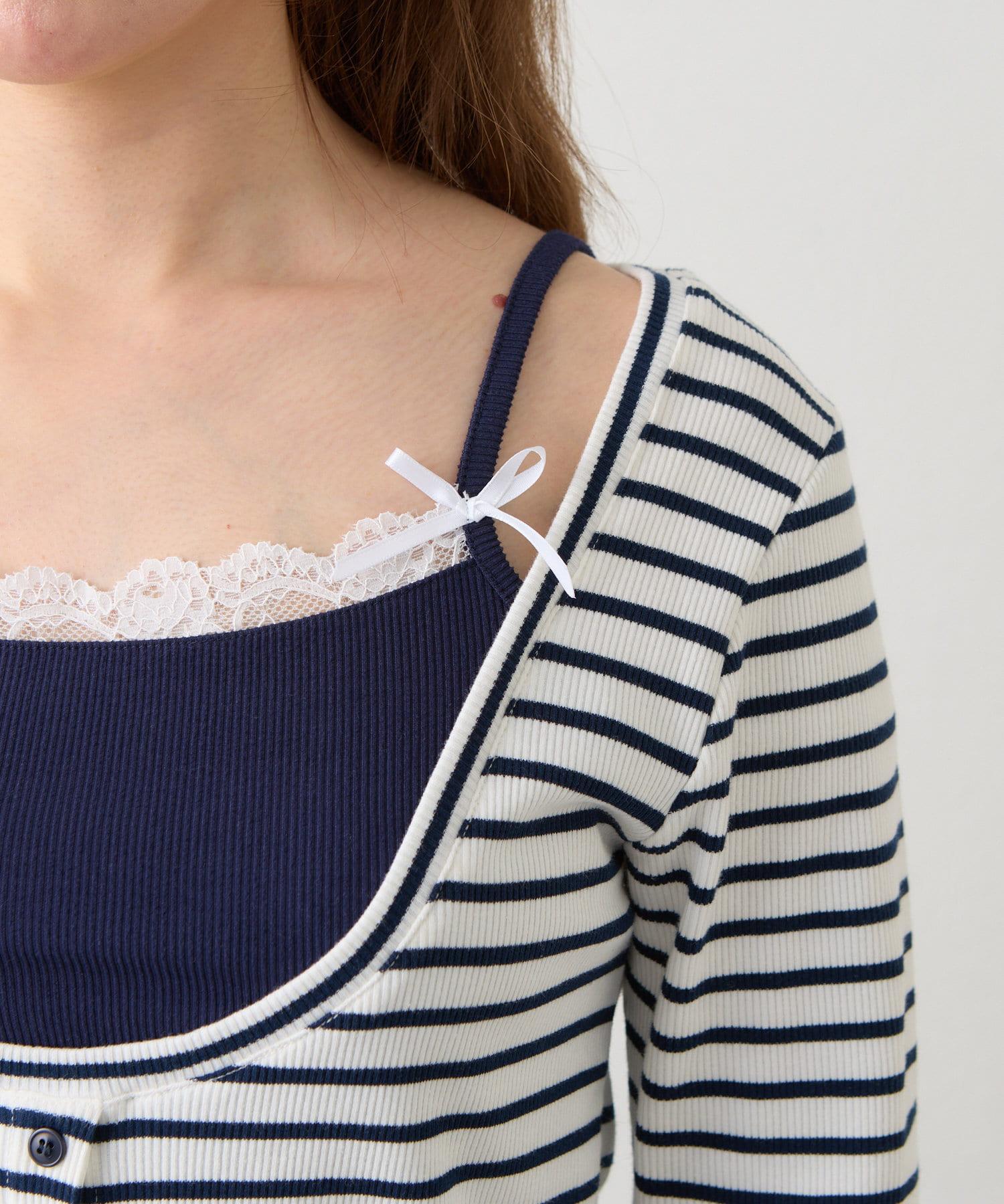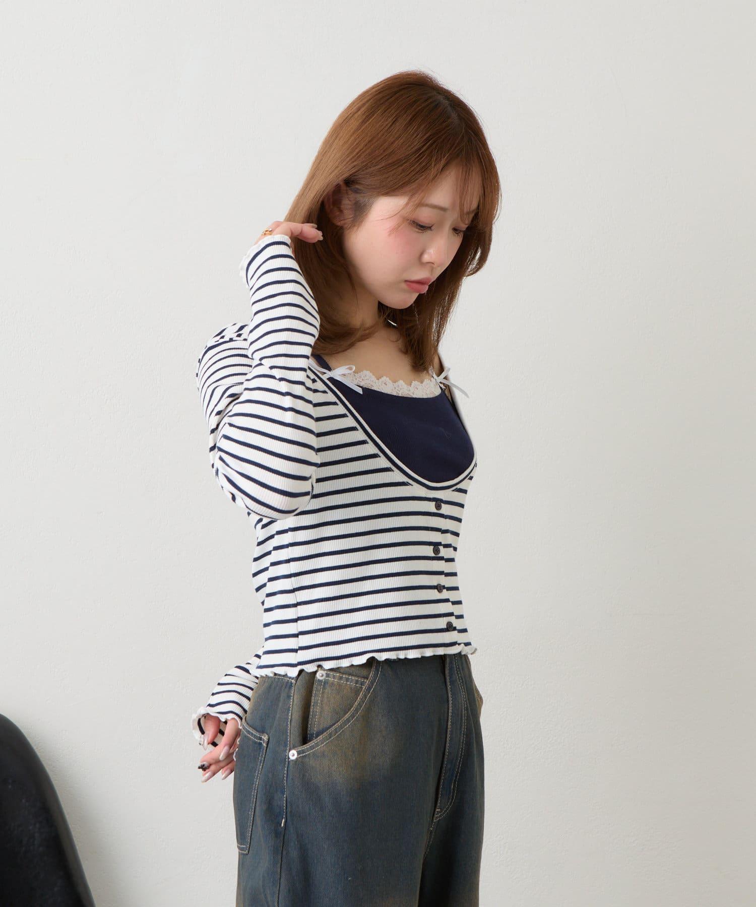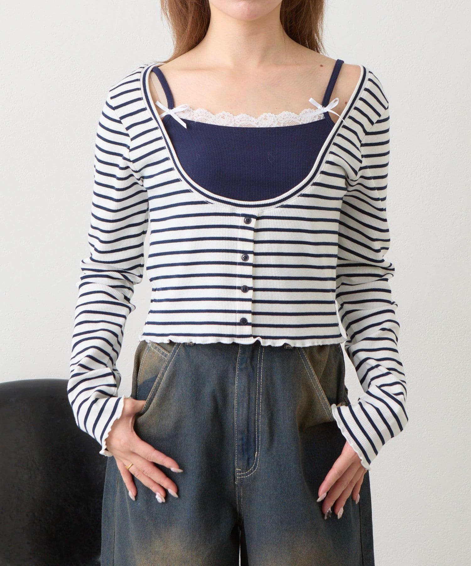 吊帶套裝 / 層次感 / 收腰 / 迷你 T 恤 / 韓版時尚 / 國際流行 / 條紋