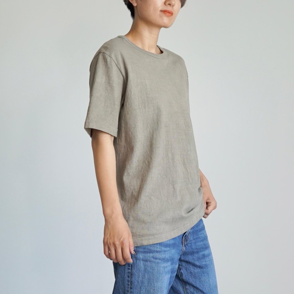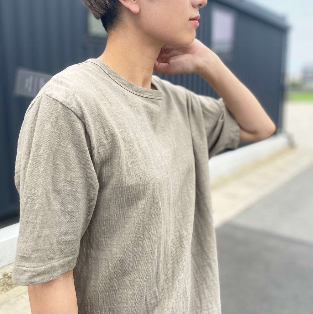 吊帶編織亞麻T恤/卡其色/和歌山縣產針織面料