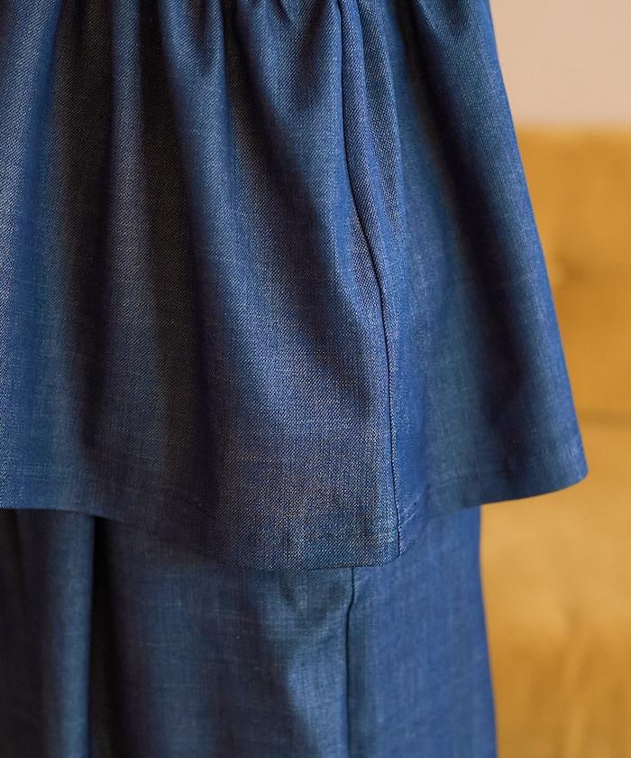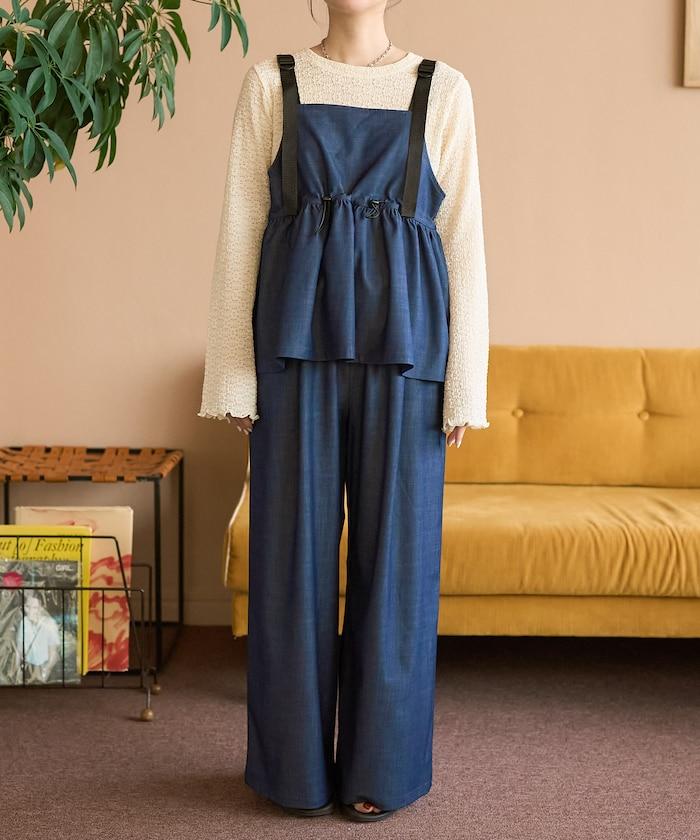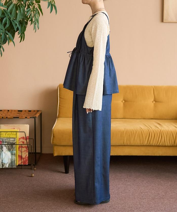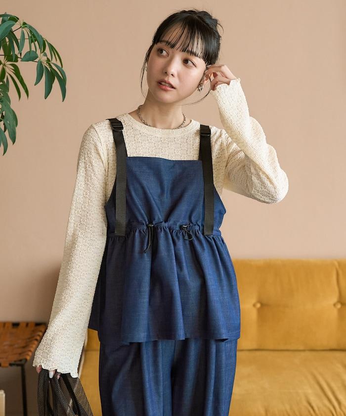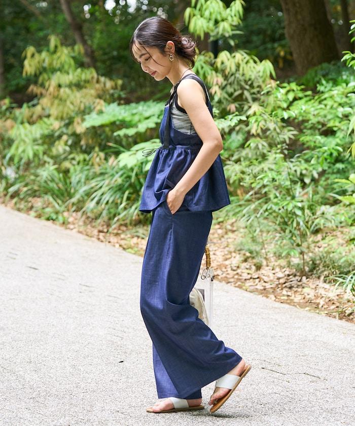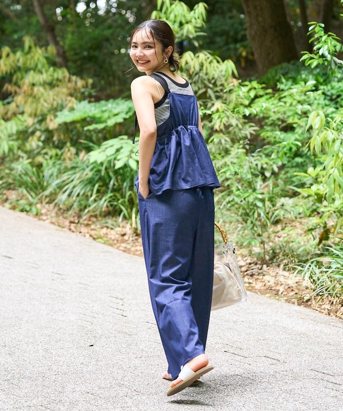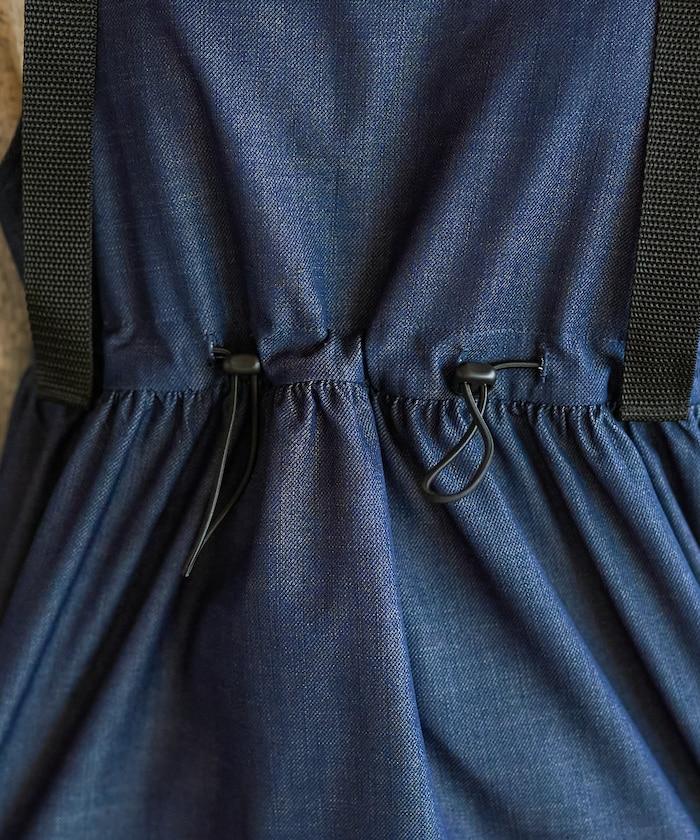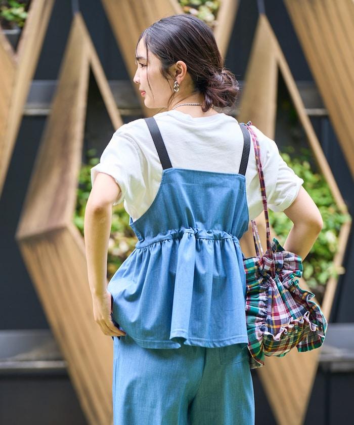 吊帶衫上的腰帶和褶皺使其輪廓更加女性化。