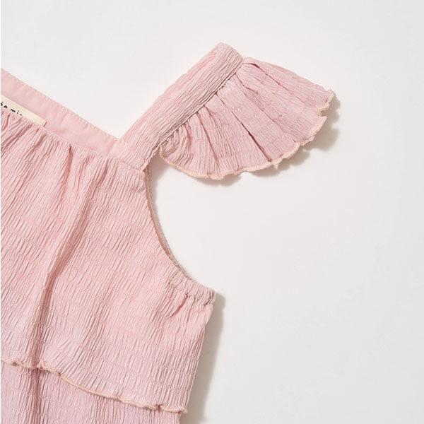 吊帶衫採用褶皺袖設計,給人一種女性化的印象。