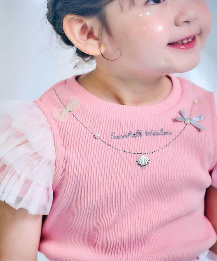 APRES LES COURS 短袖 T 恤 "項鍊式薄紗袖 T 恤_RP "是一款時尚單品,為自然風格增添了微妙的設計感*。