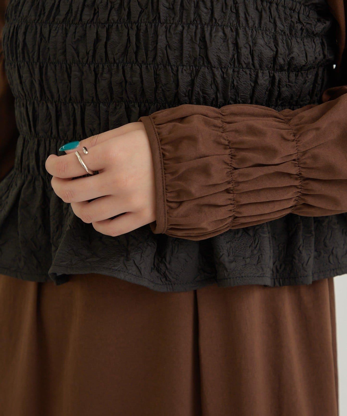 連衣裙設計簡潔,腰部採用收腰設計,可以很好地收緊腰部。袖口也有設計點。