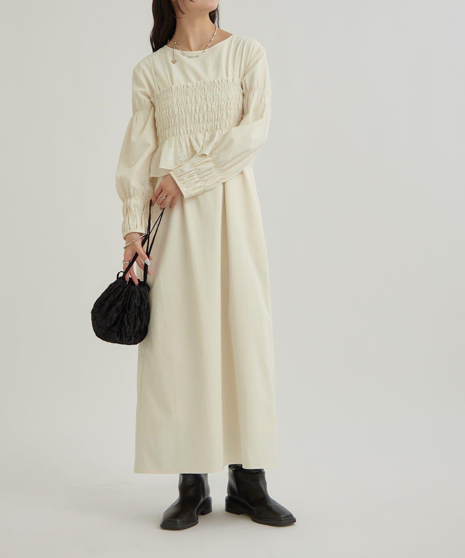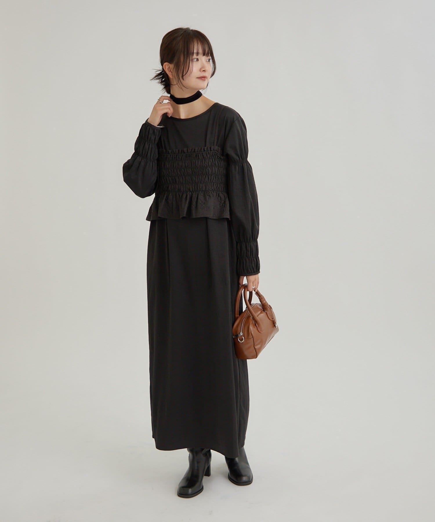 這款連衣裙是簡單的連身裙,因此添加配飾會給人更精緻的感覺。