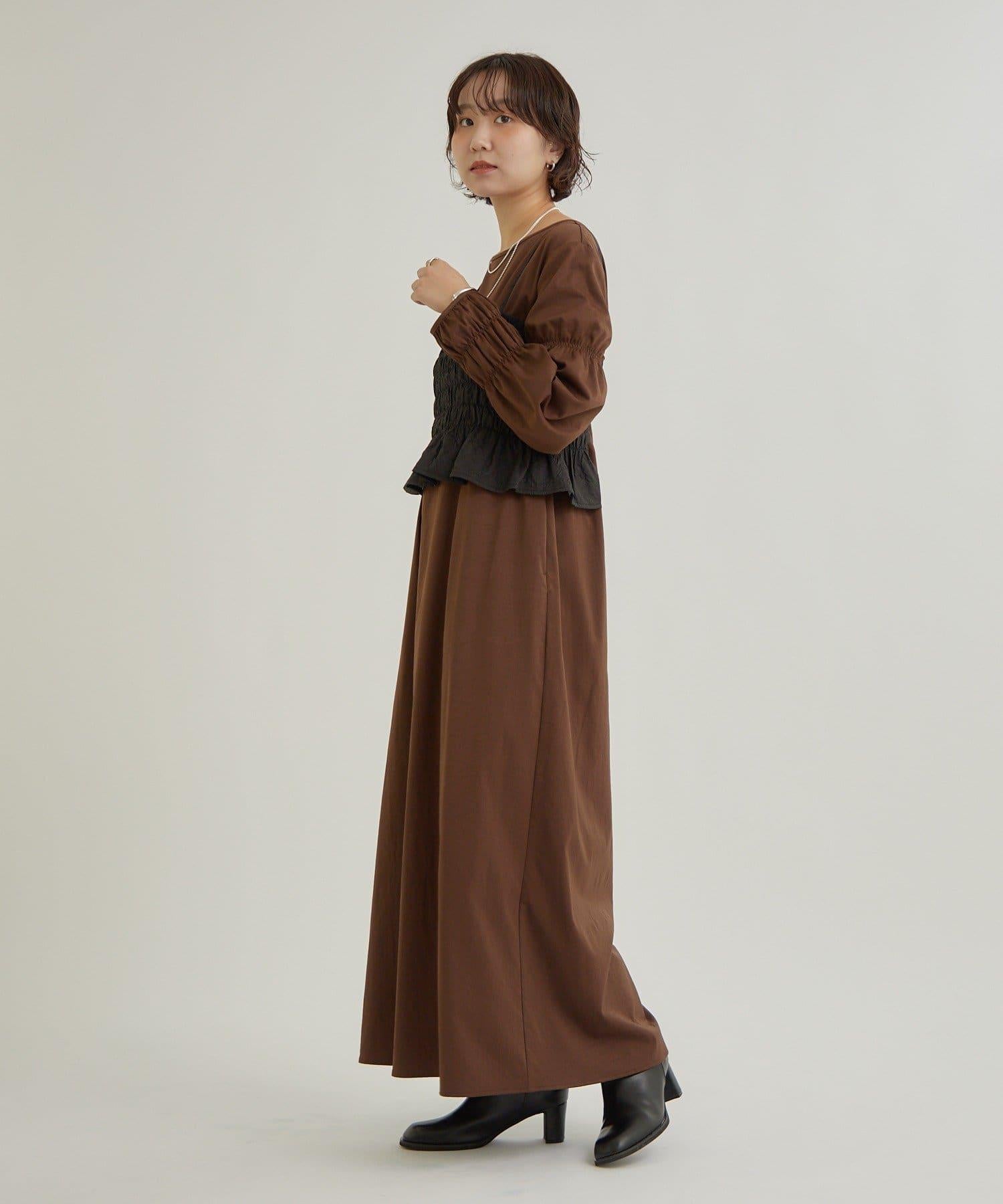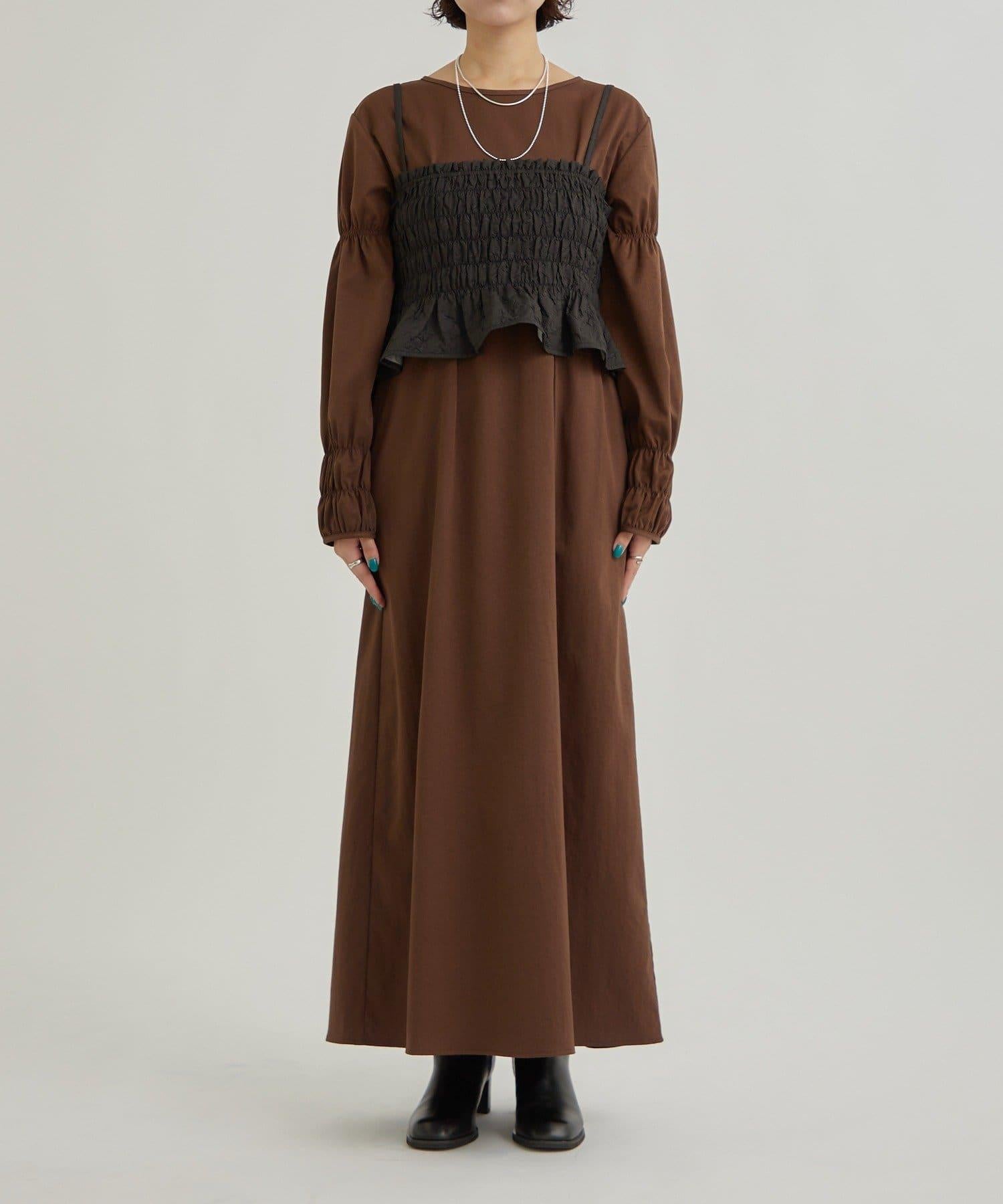 建議將連衣裙和半身裙搭配穿!也可以在外面穿一件外套。