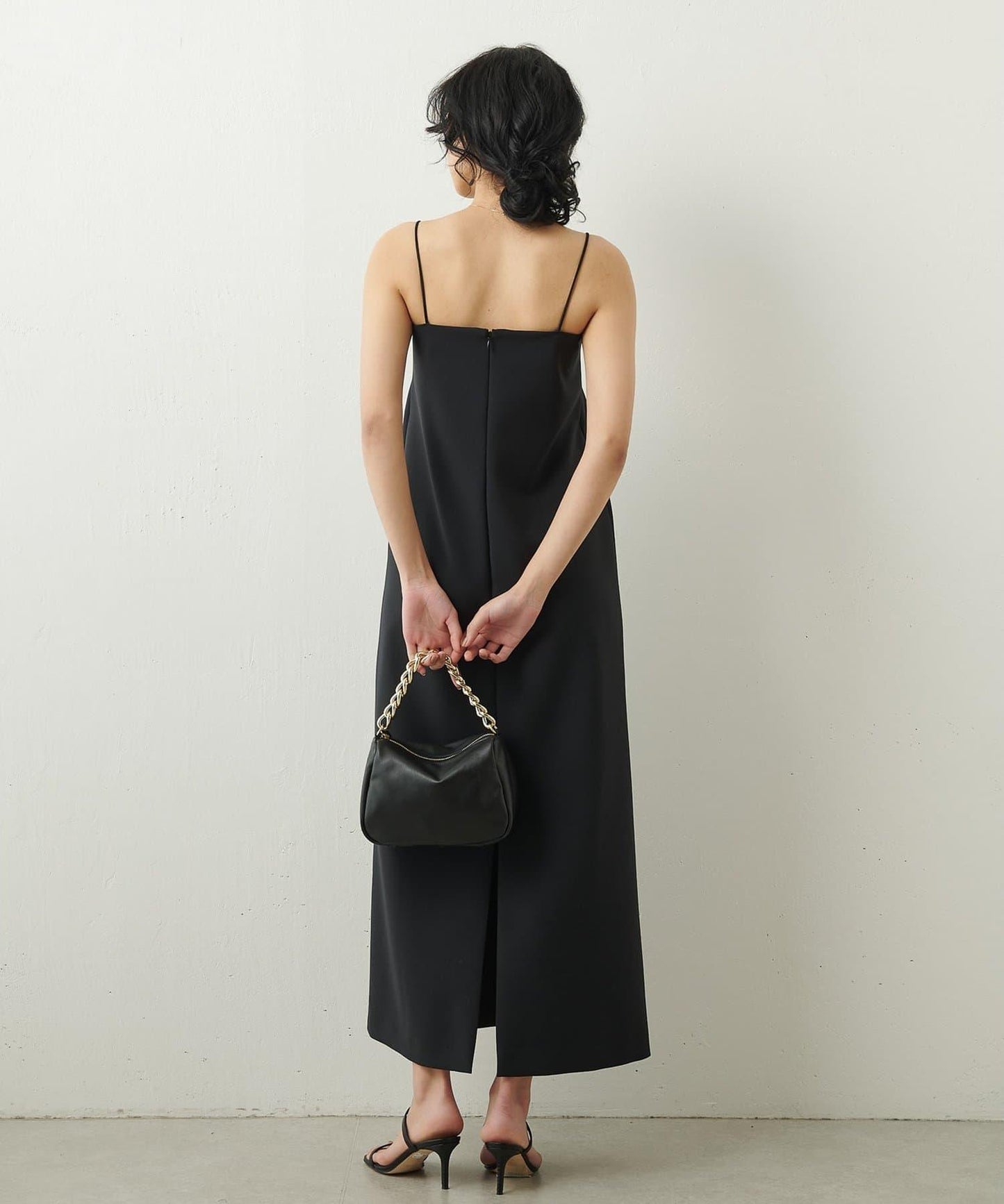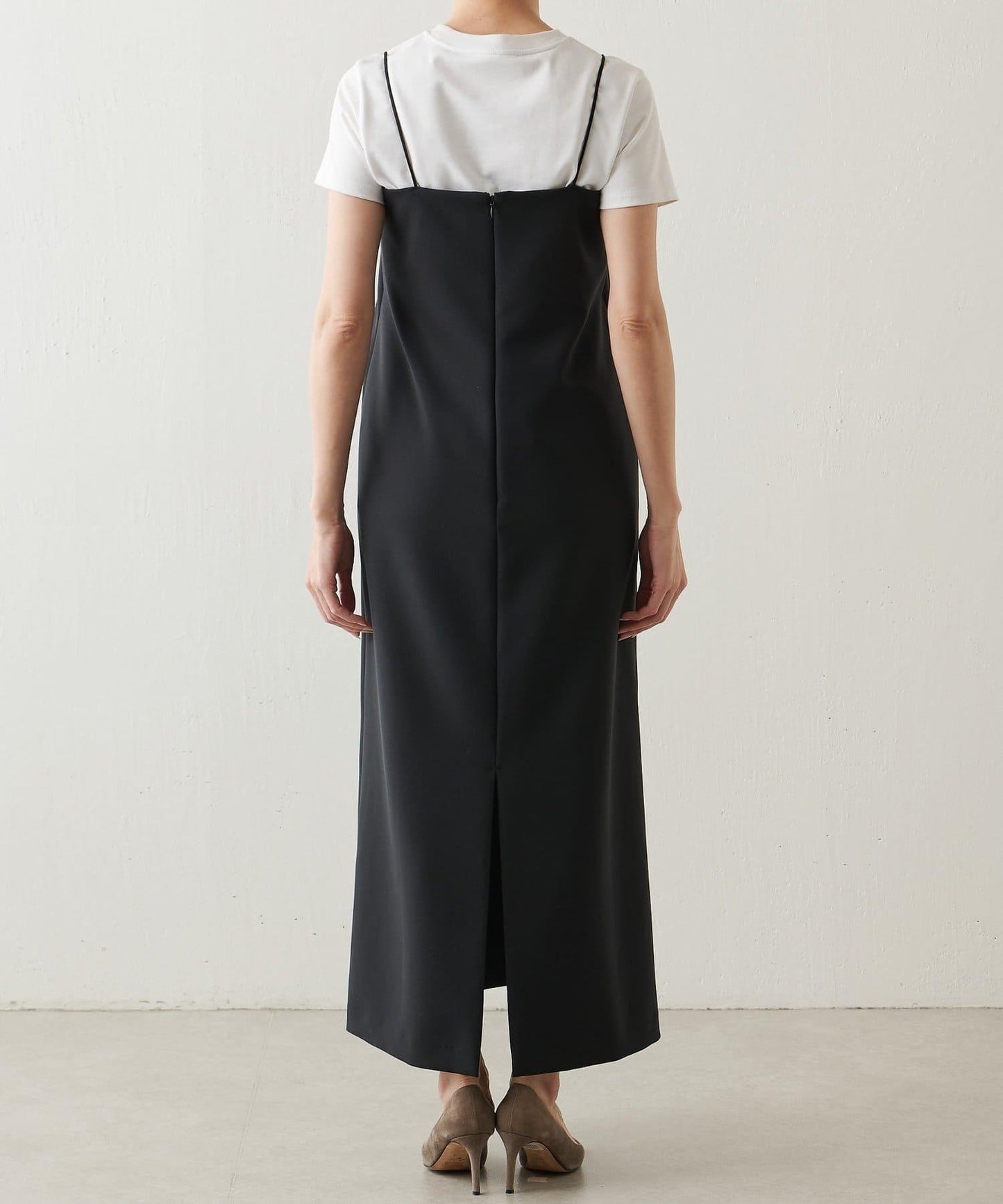 全長的 I 字型設計落落大方,背部的深開衩設計增添了一絲慵懶感。