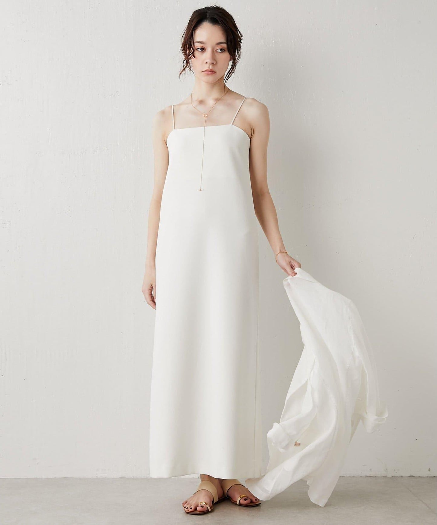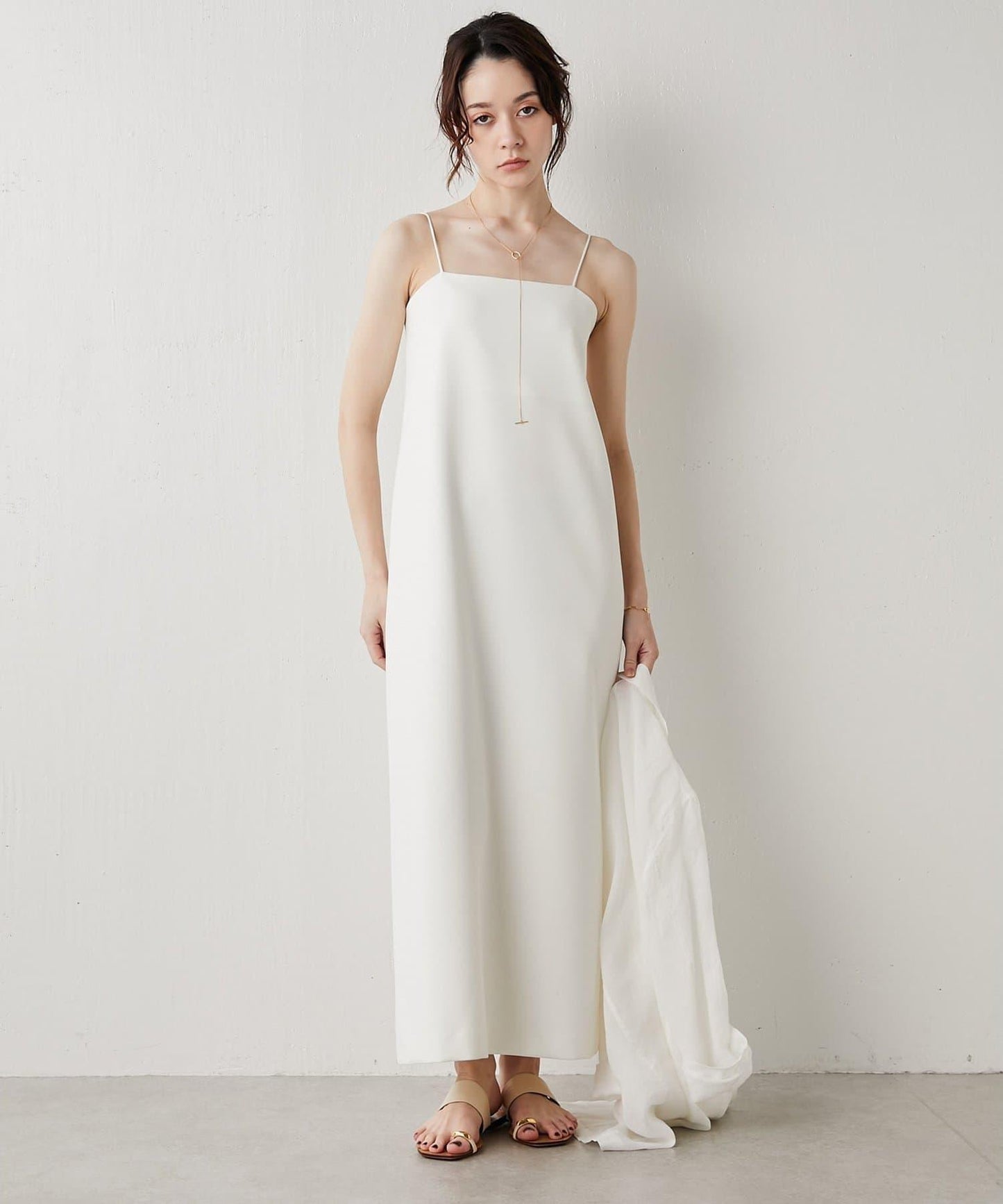 這款充滿女人味的吊帶連衣裙單穿效果極佳,也可搭配剪裁縫製的服裝,適合日常穿著。薄款高領毛衣和夾克也非常適合搭配。上身還可以搭配針織衫,可謂百搭。