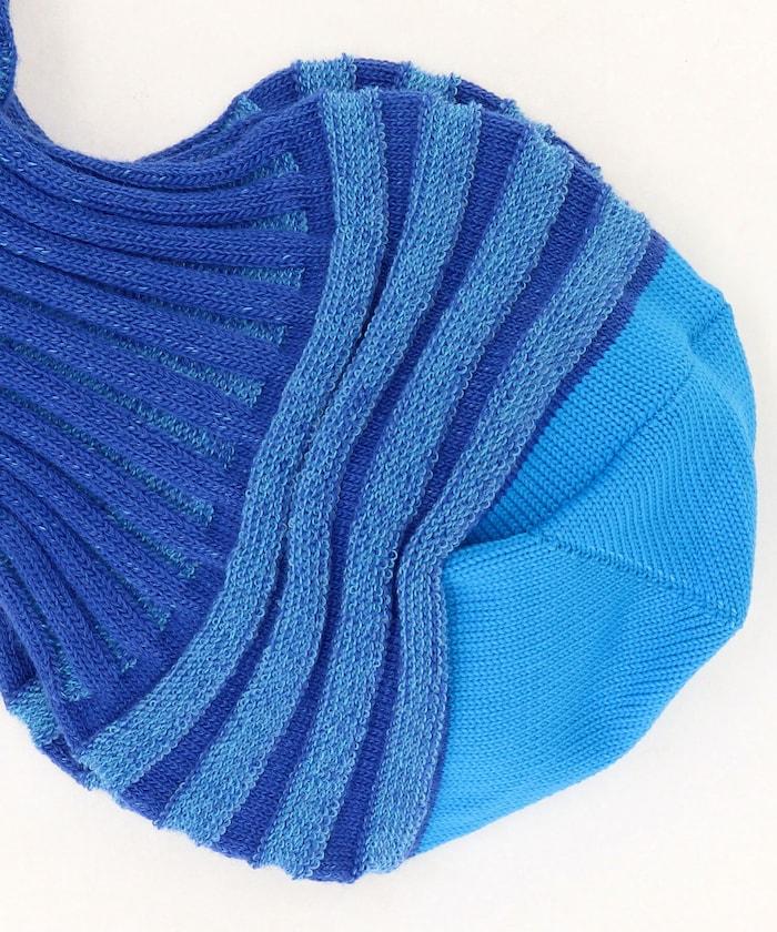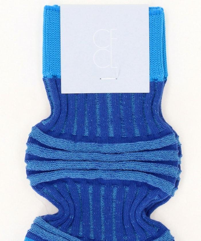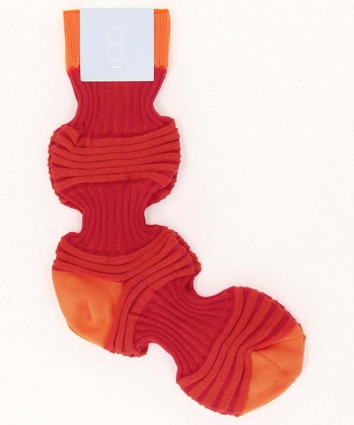 這款襪子輪廓獨特,將橫向突出的吊襪帶與橫向收縮的羅紋襪相結合。