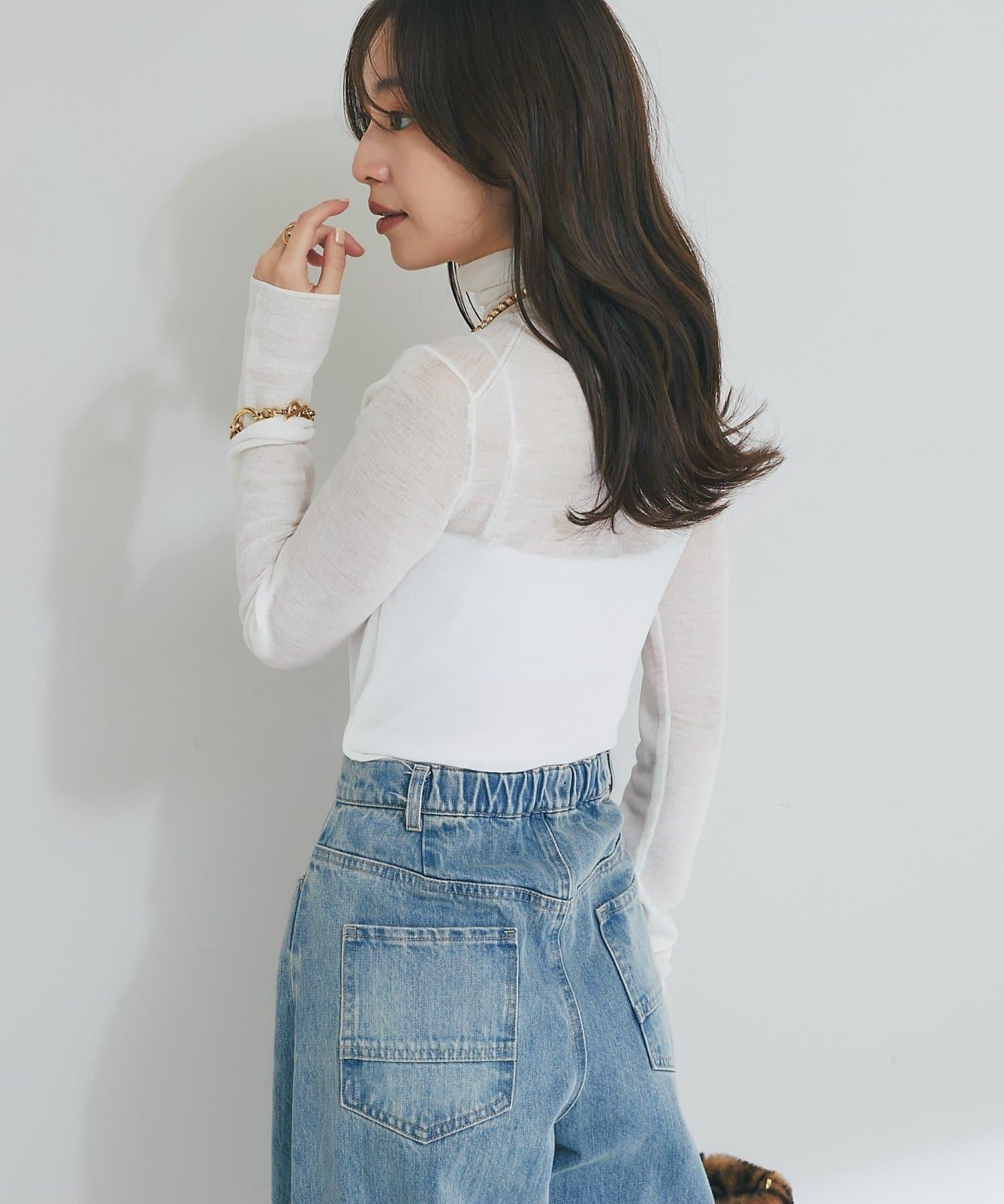 【名品・長季可穿】透視羊毛混紡羅紋高領針織衫