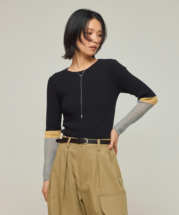 這款設計感十足的針織衫非常適合上班通勤等場合,搭配乾淨利落的休閒褲或緊身短裙,既可以單穿,也可以在寒冷的季節疊穿在外套內搭或運動衫/針織衫內,巧妙地展現袖口的透明材質。值得推薦。這款單品廓形小巧,版型適中,可與豐滿的長裙和寬大的牛仔褲均衡搭配。這款單品可活躍於各種場合,無論穿上還是脫下。