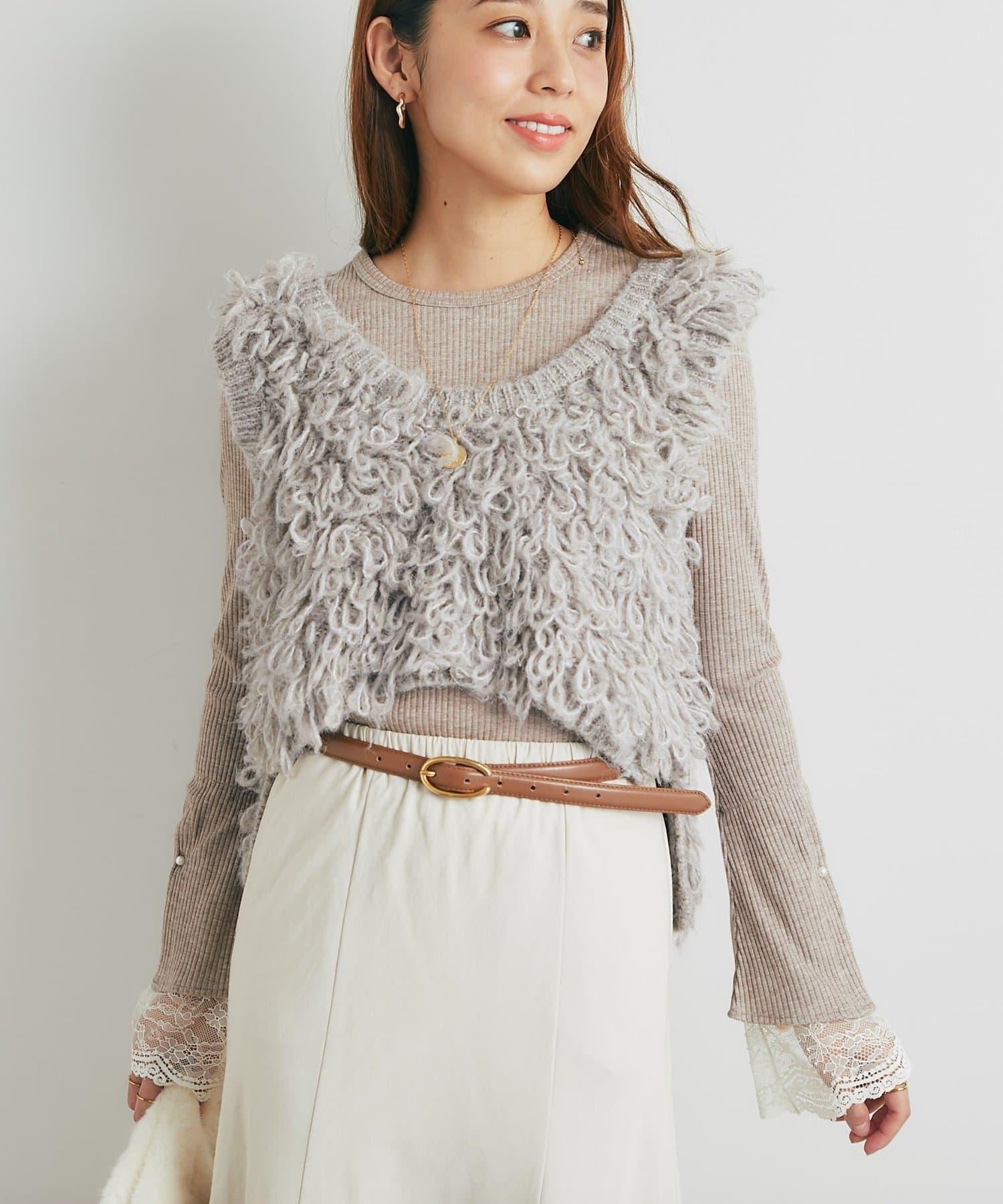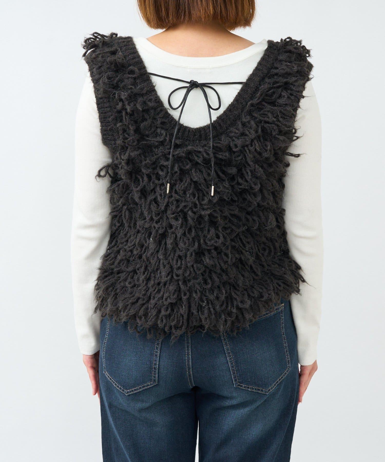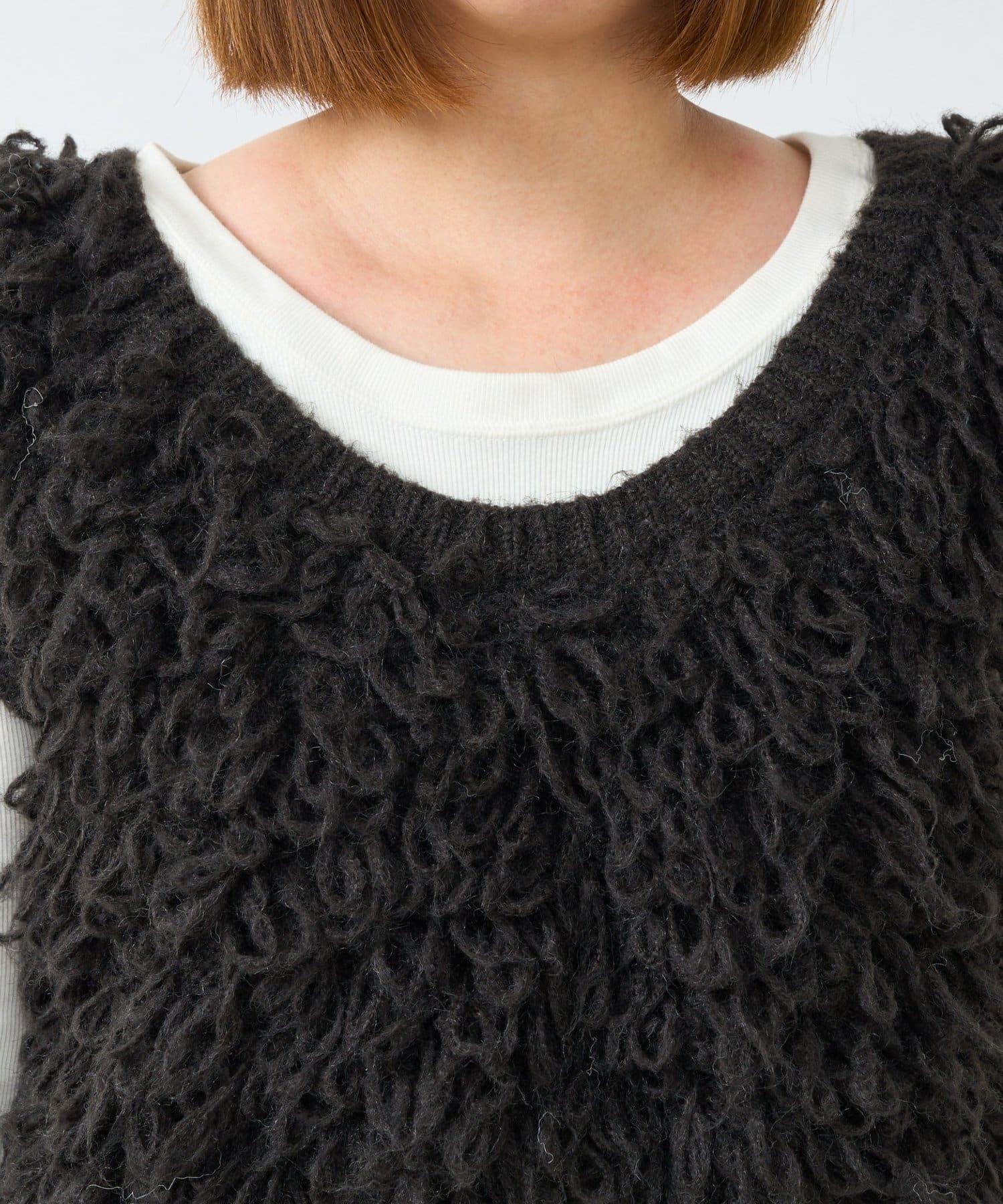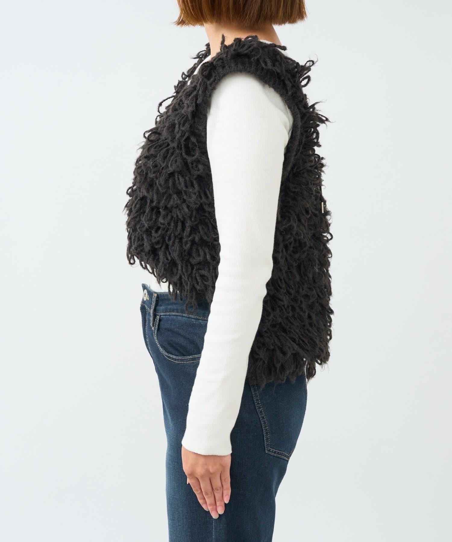 這款獨特的針織馬甲具有蓬鬆、毛茸茸的質感,可為您的日常搭配增添俏皮氣息。