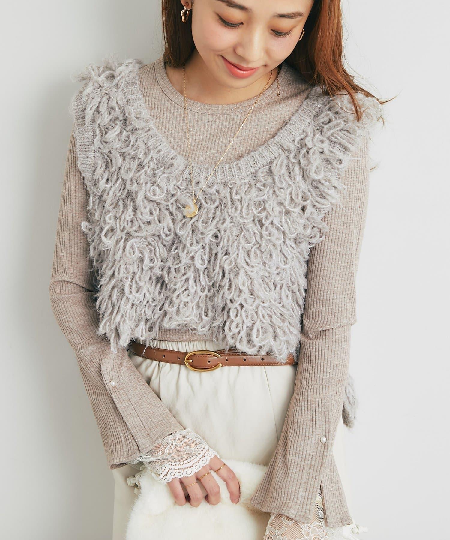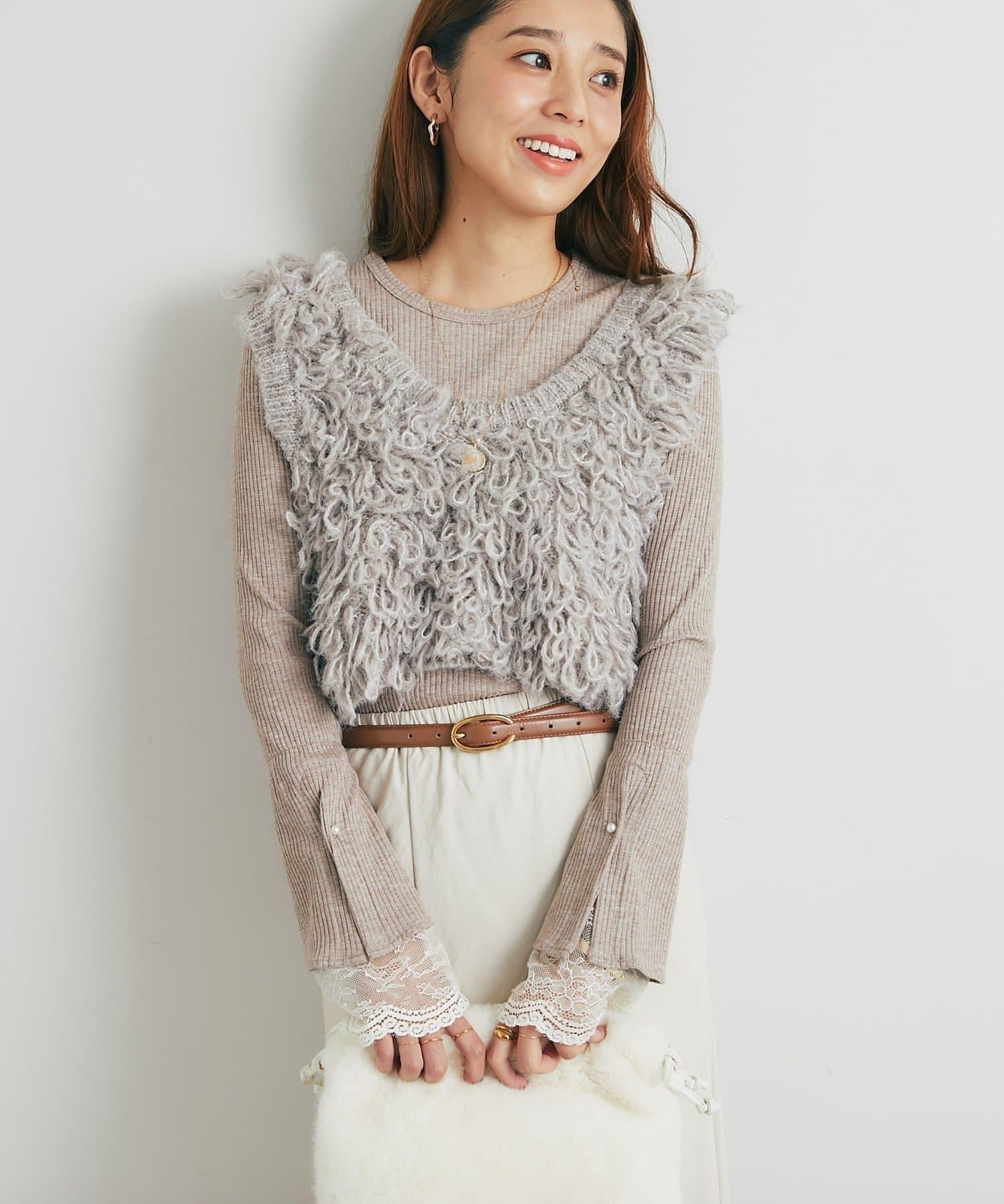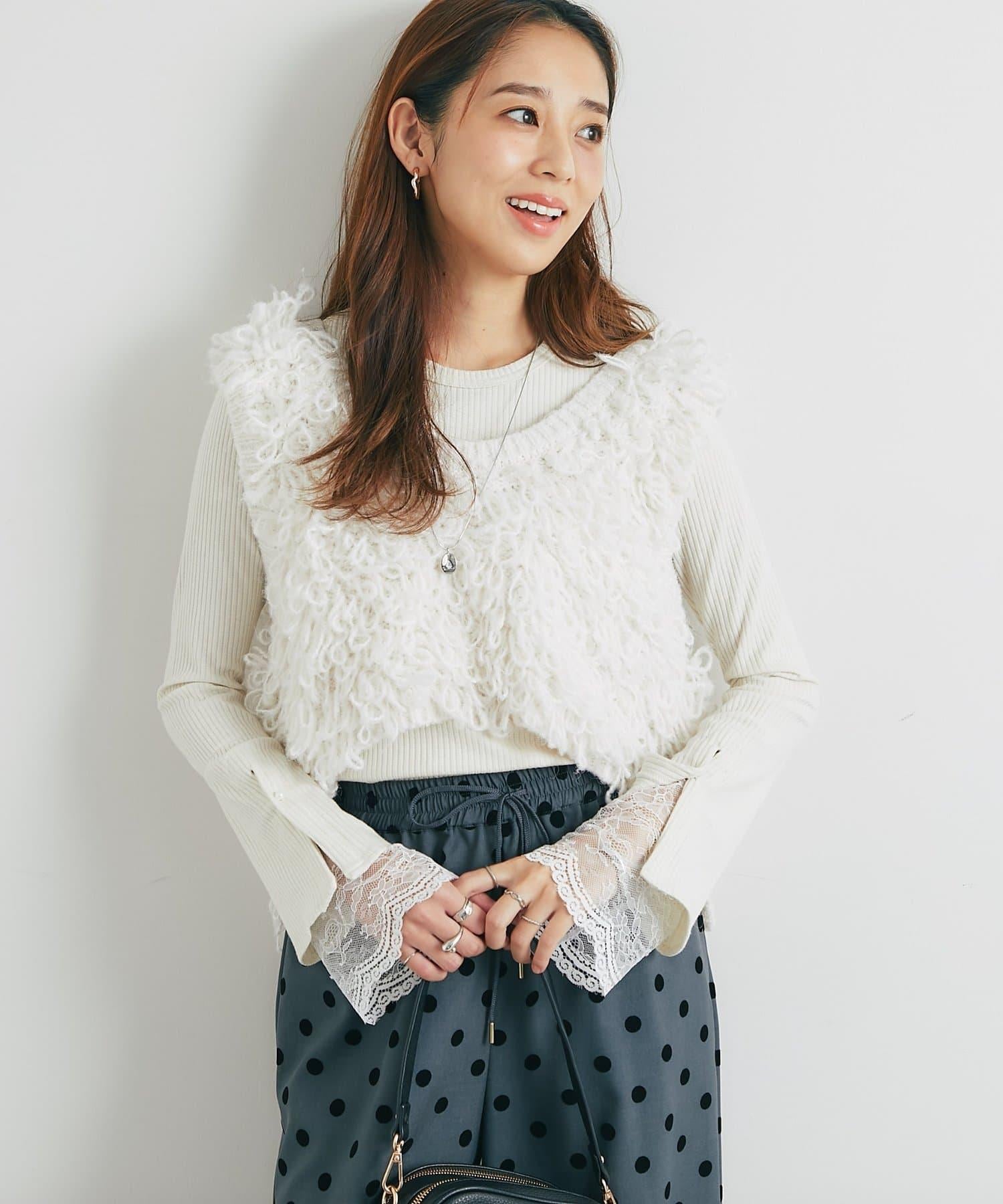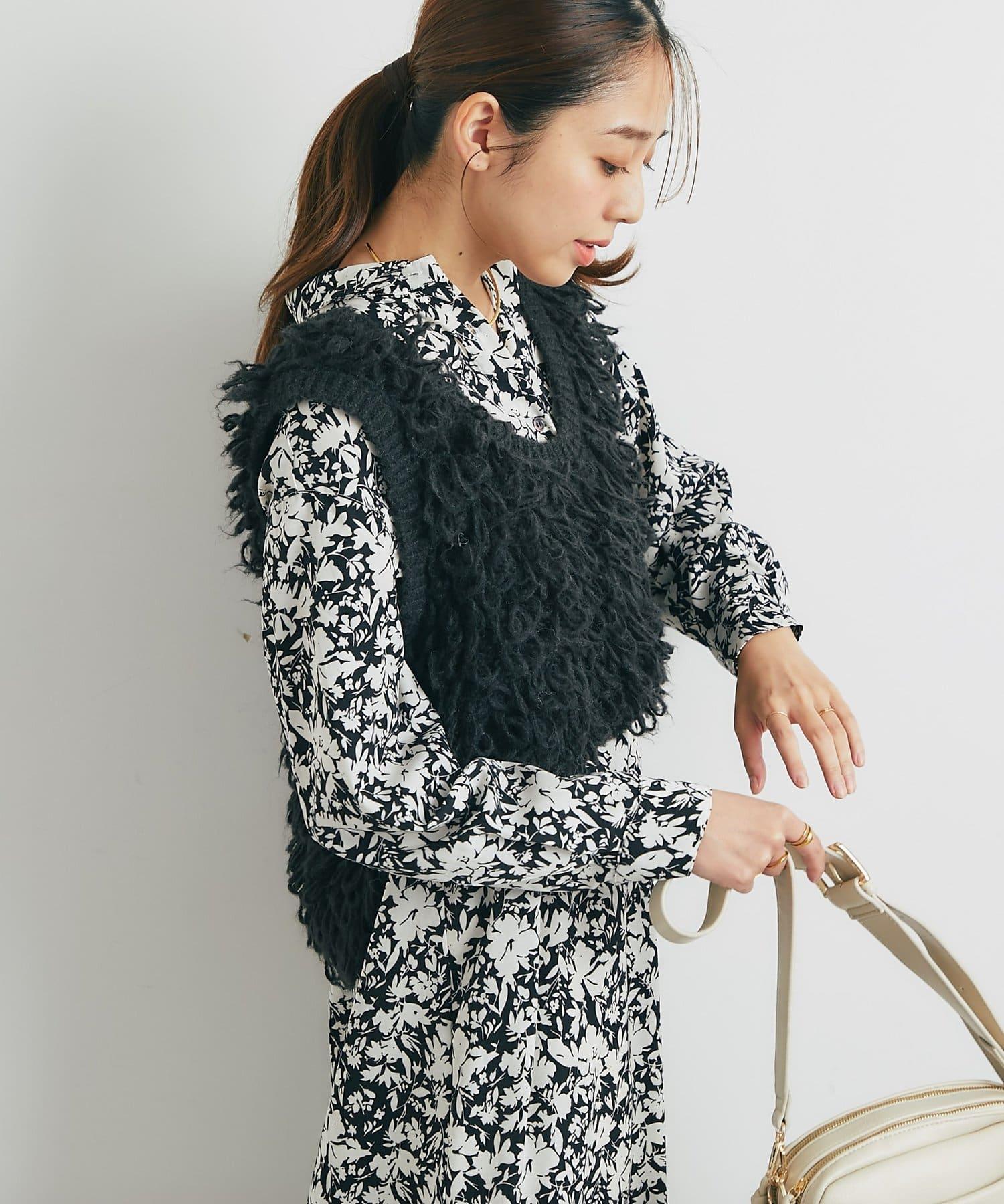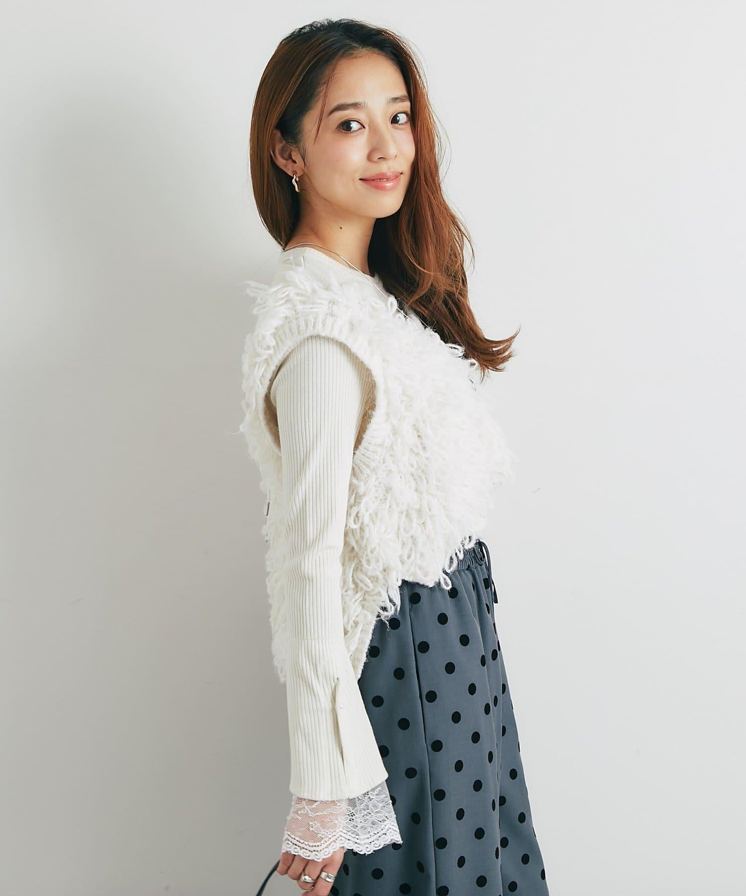 這款獨特的針織馬甲具有蓬鬆、毛茸茸的質感,可為您的日常搭配增添俏皮氣息。