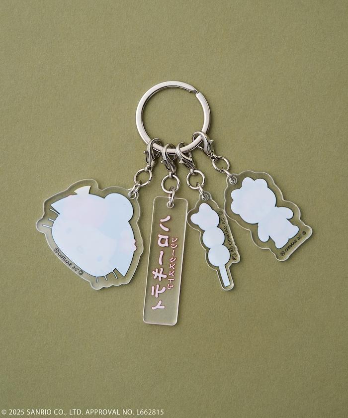 鑰匙扣上有 "HELLO KITTY"、"TINY CHUM"、餃子和梅花等可愛的日式圖案。
