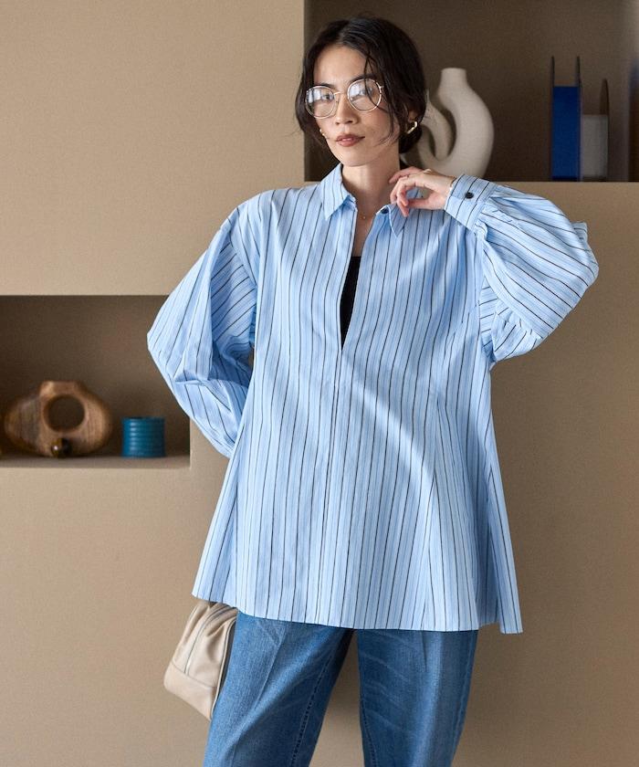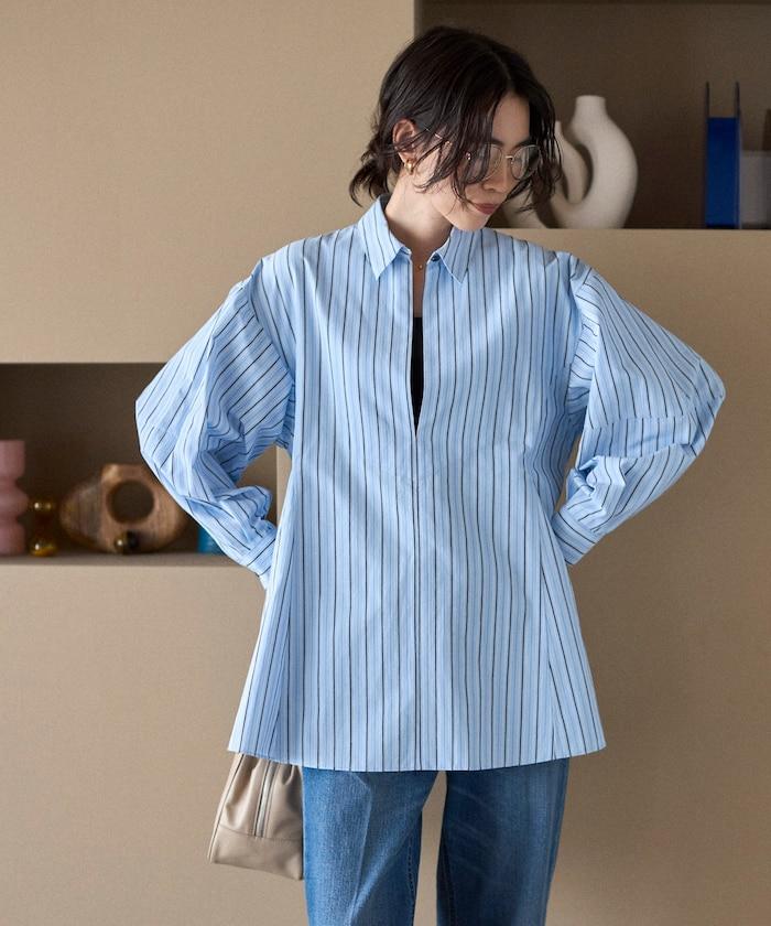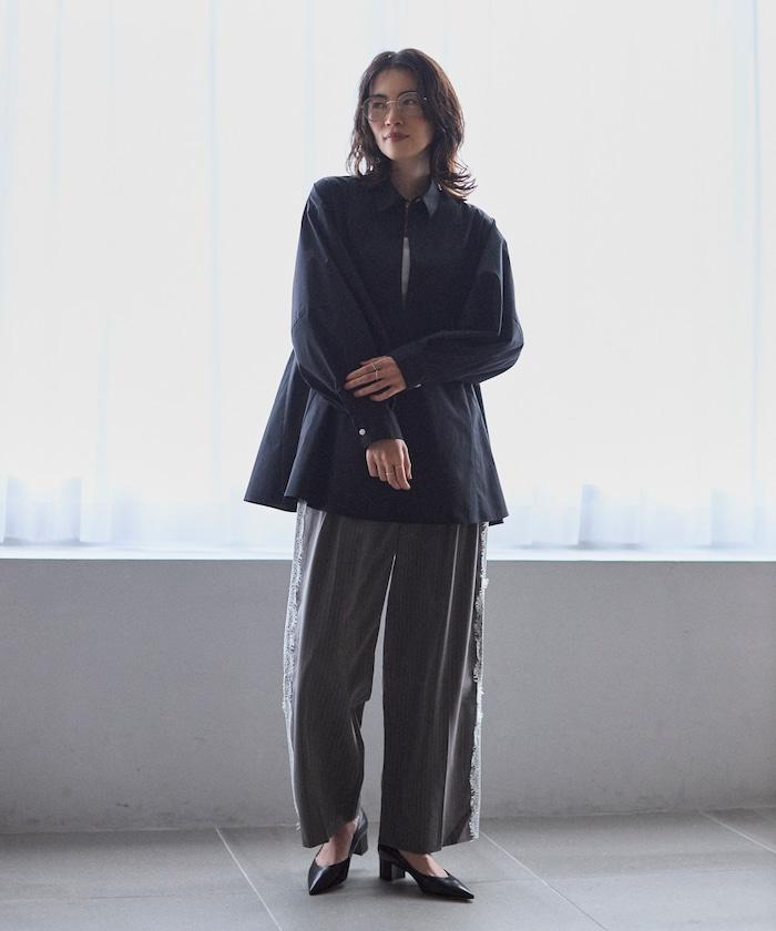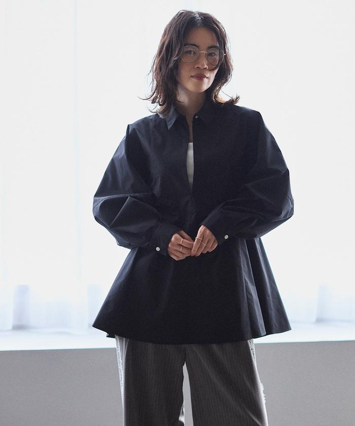 從略高於腰部的位置開始塑形,隨意展開的下襬廓形具有提升風格的效果。