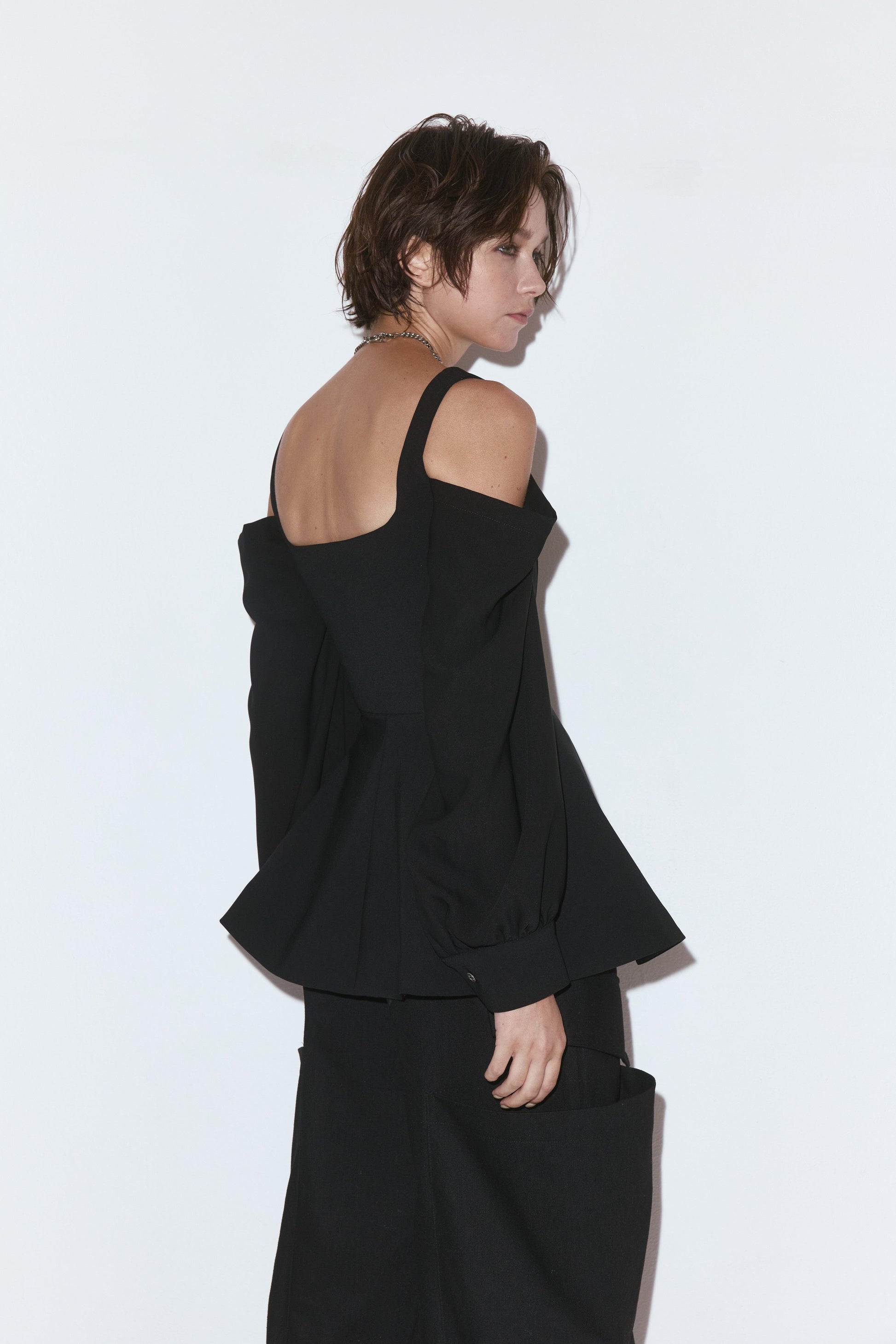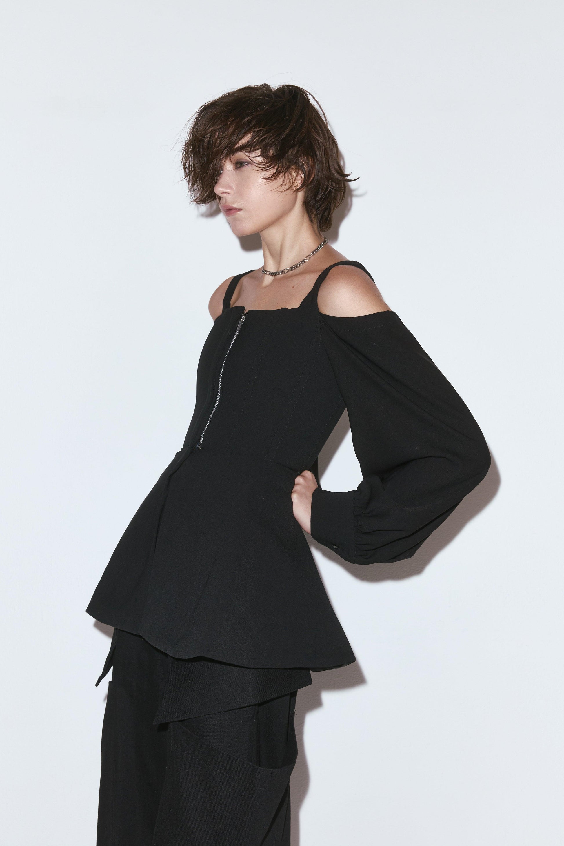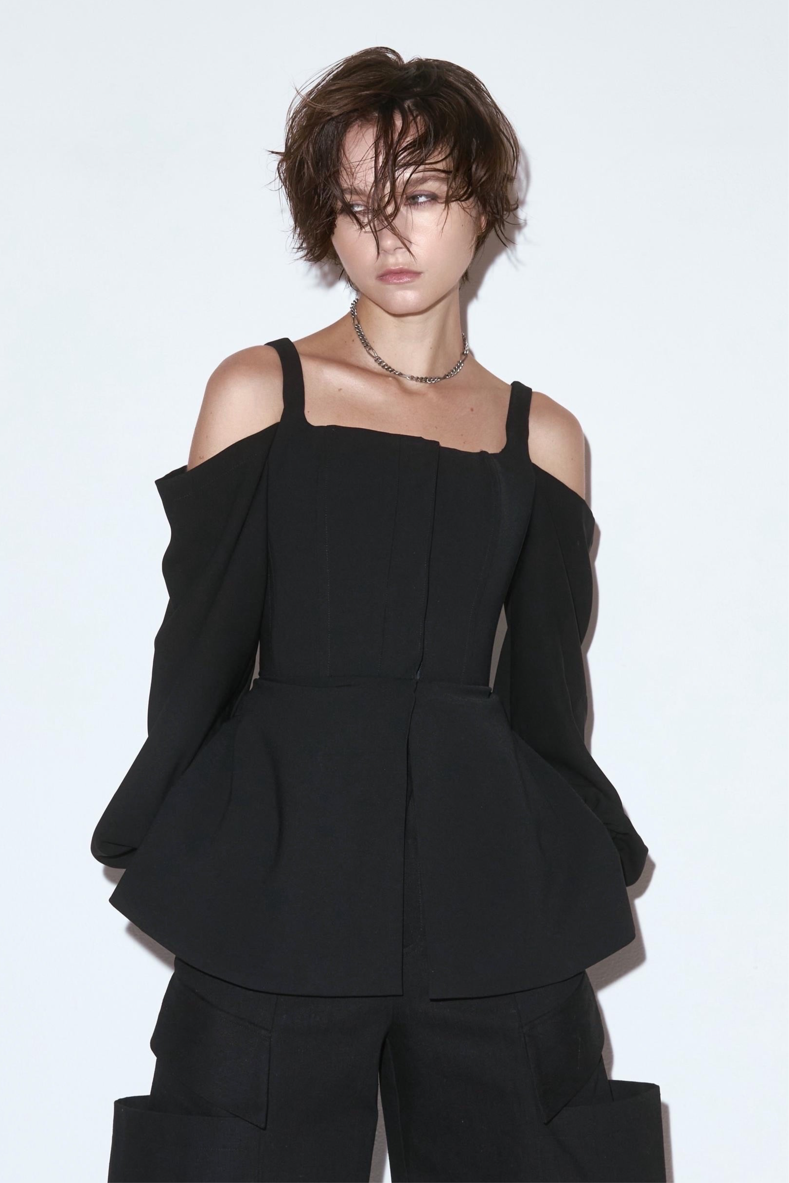 喇叭袖束身上衣