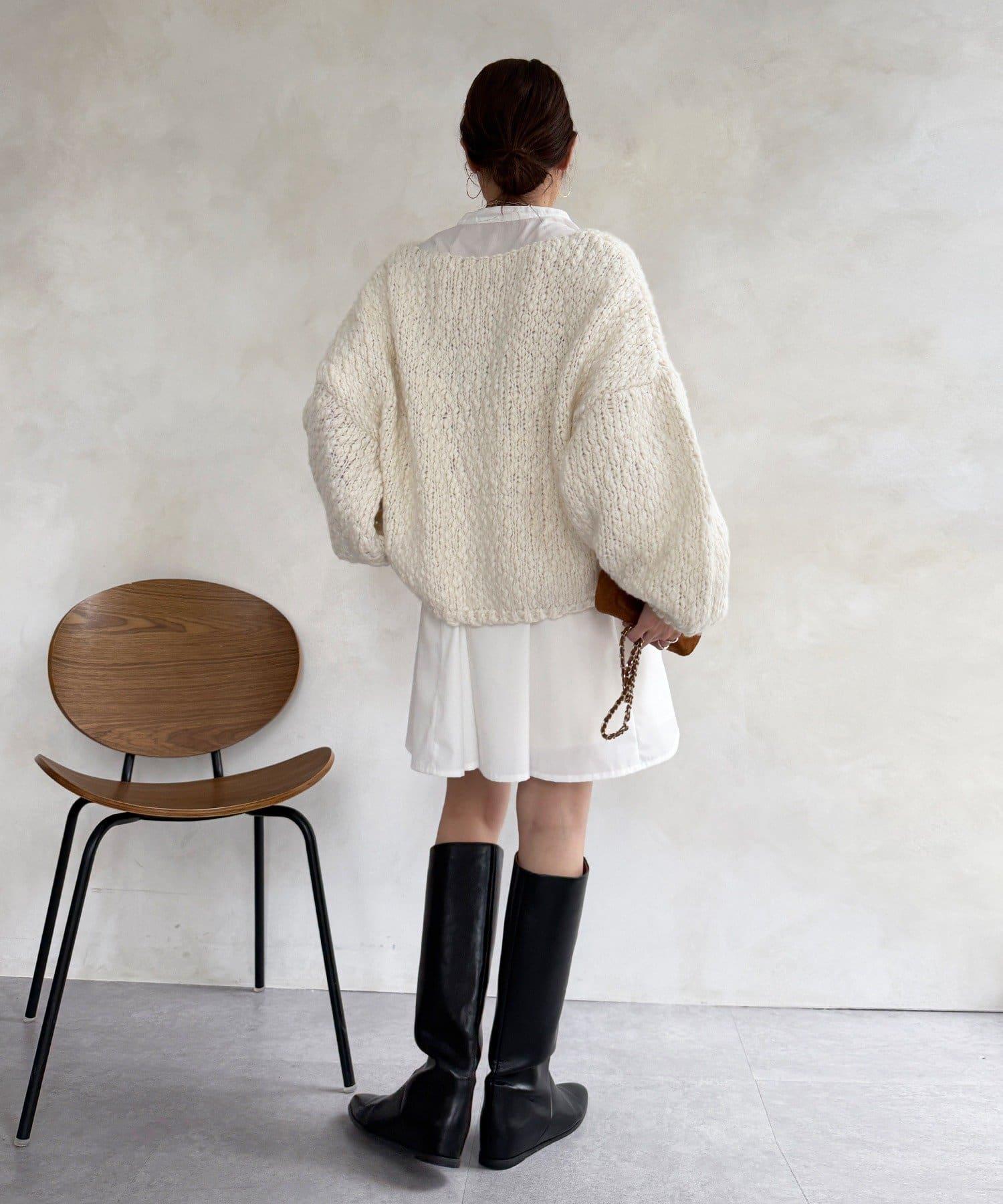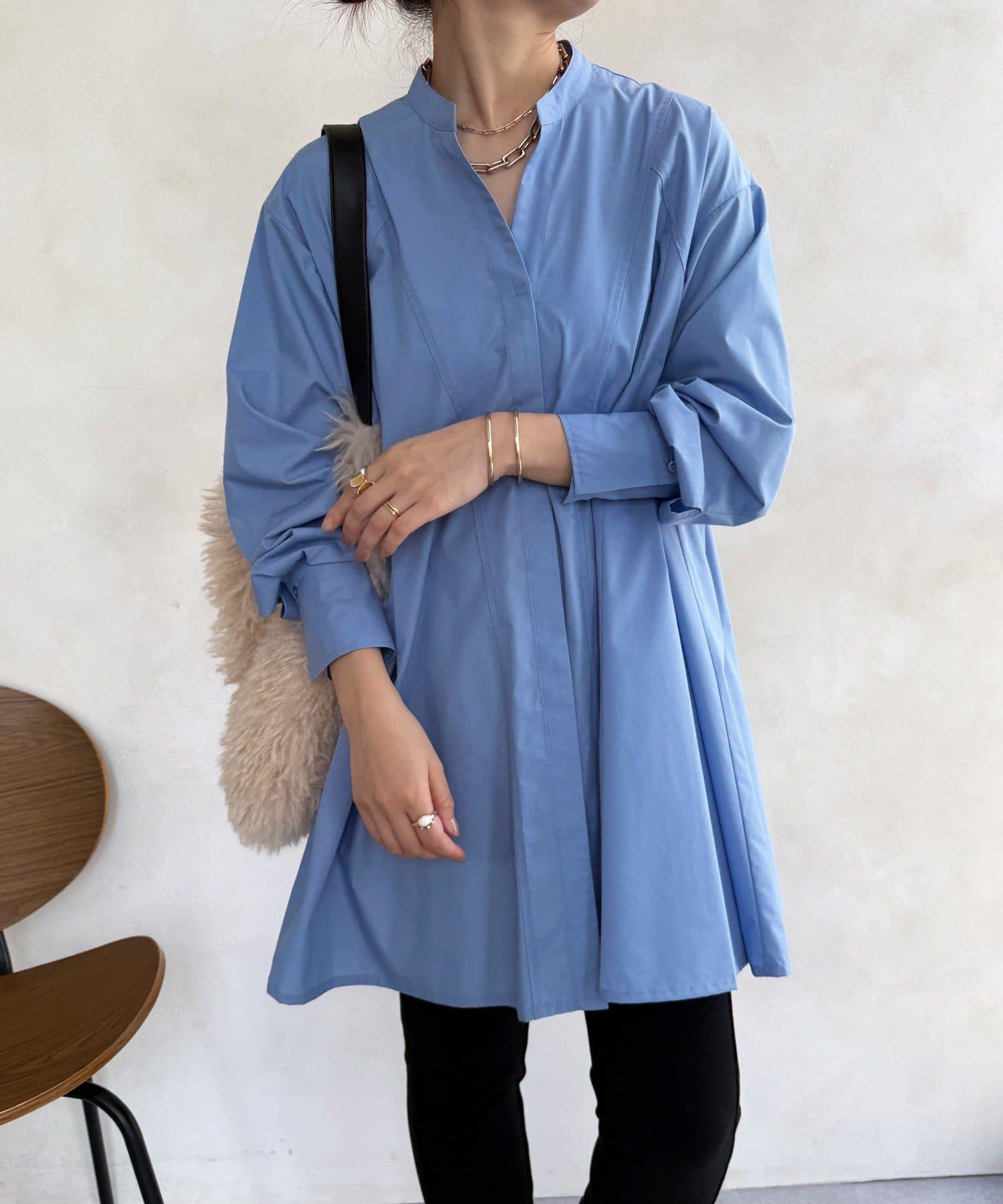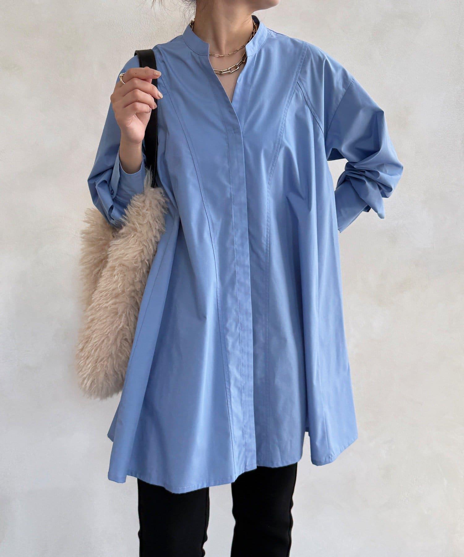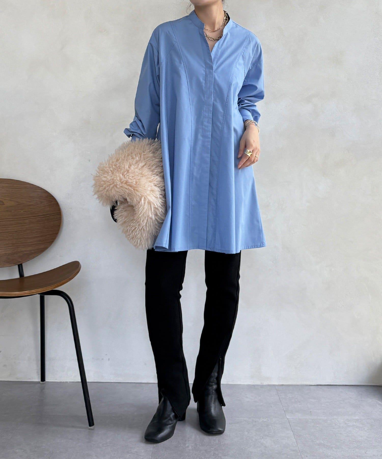 這款外衣採用喇叭形輪廓,下襬優美舒展,只需穿上它,就能給人一種壓倒性的氣勢。