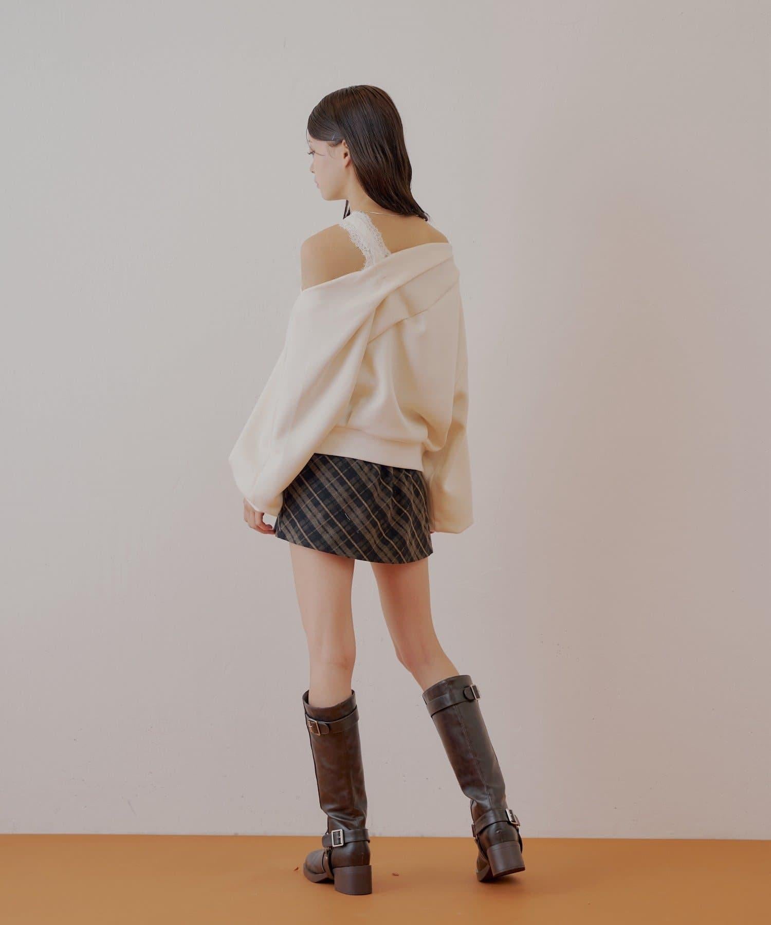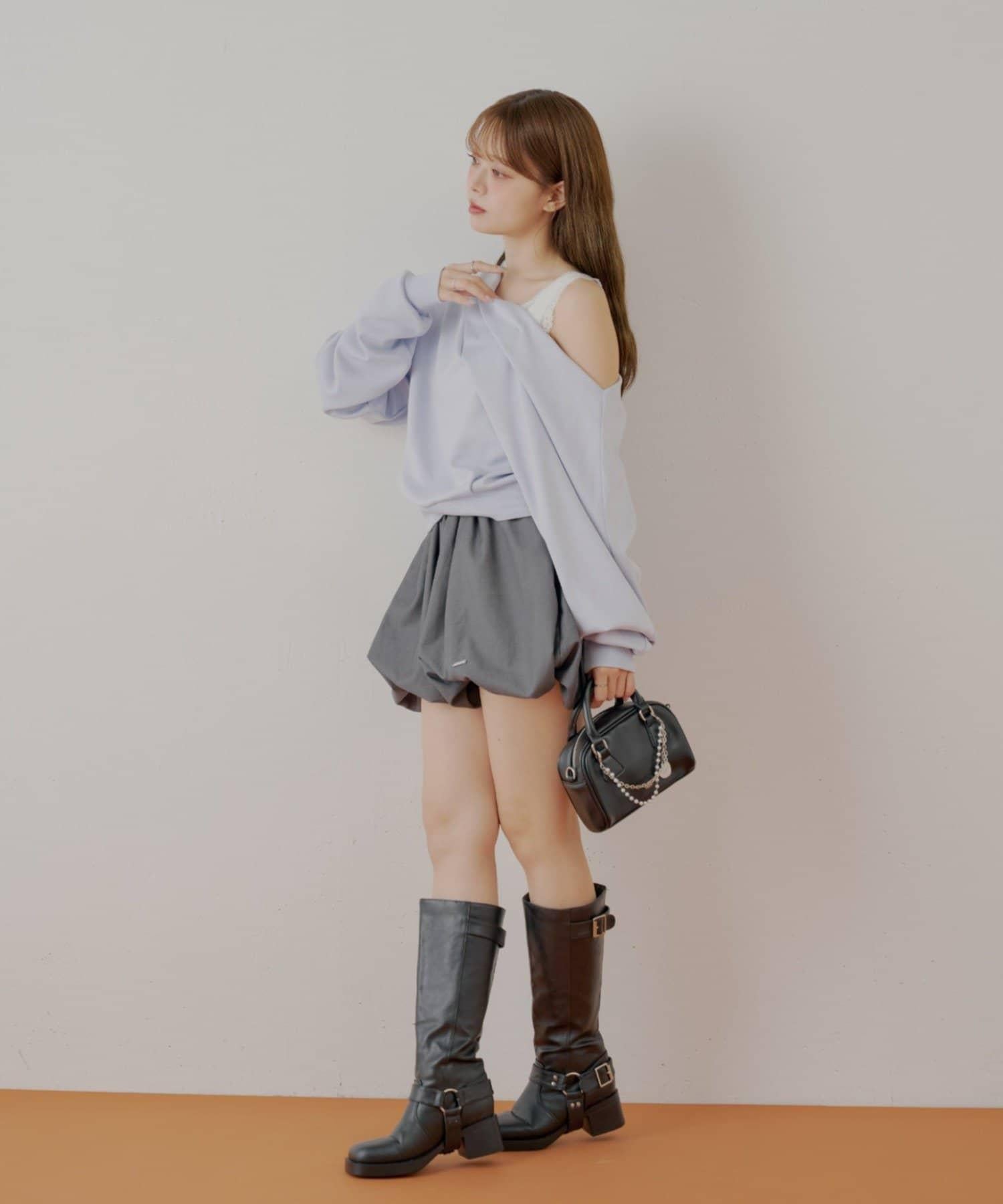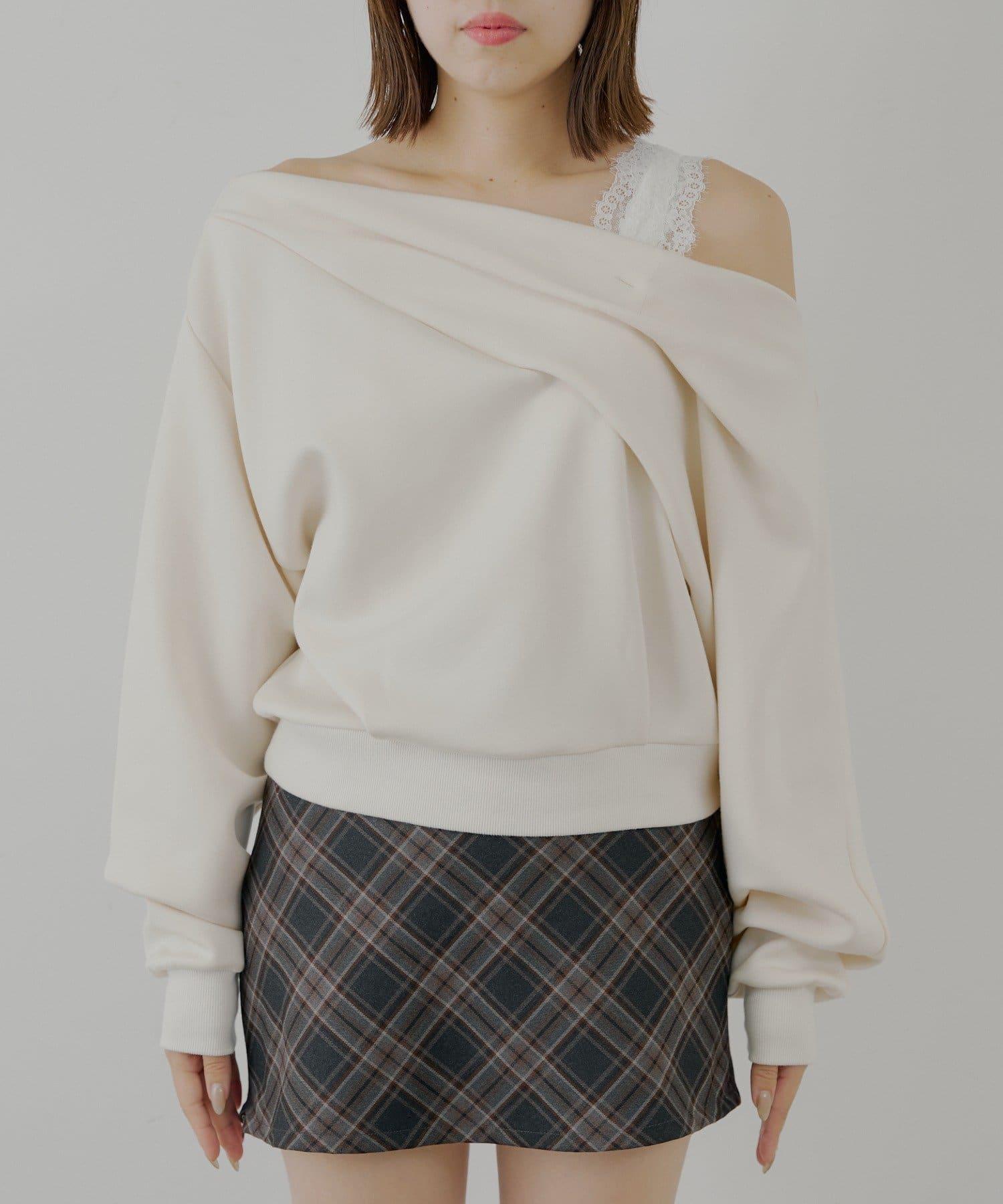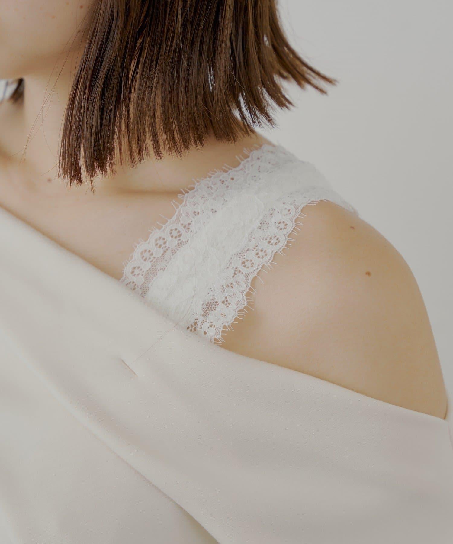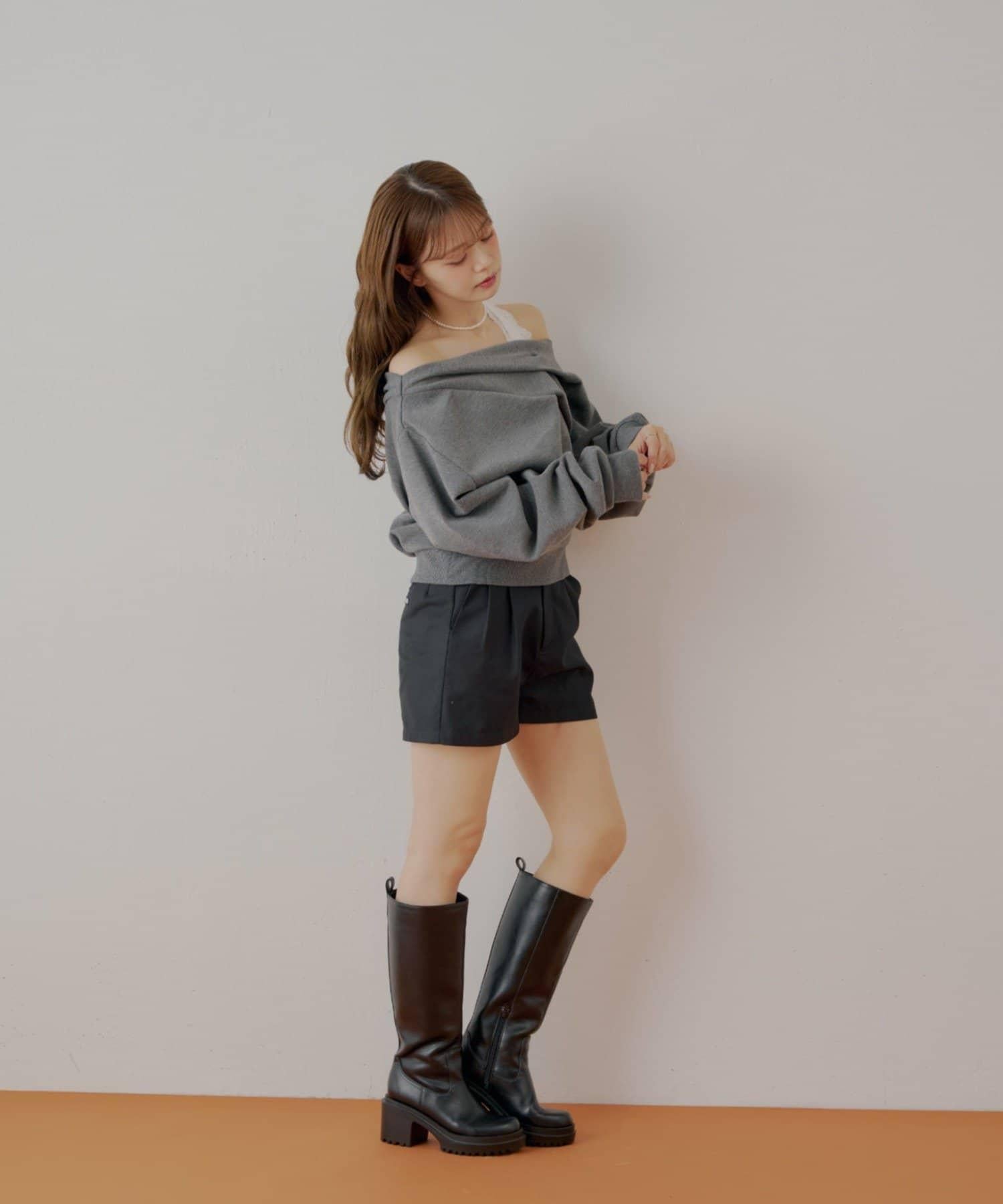 不對稱的領口設計能很好地展現肩部線條,營造出女性的寬鬆感。