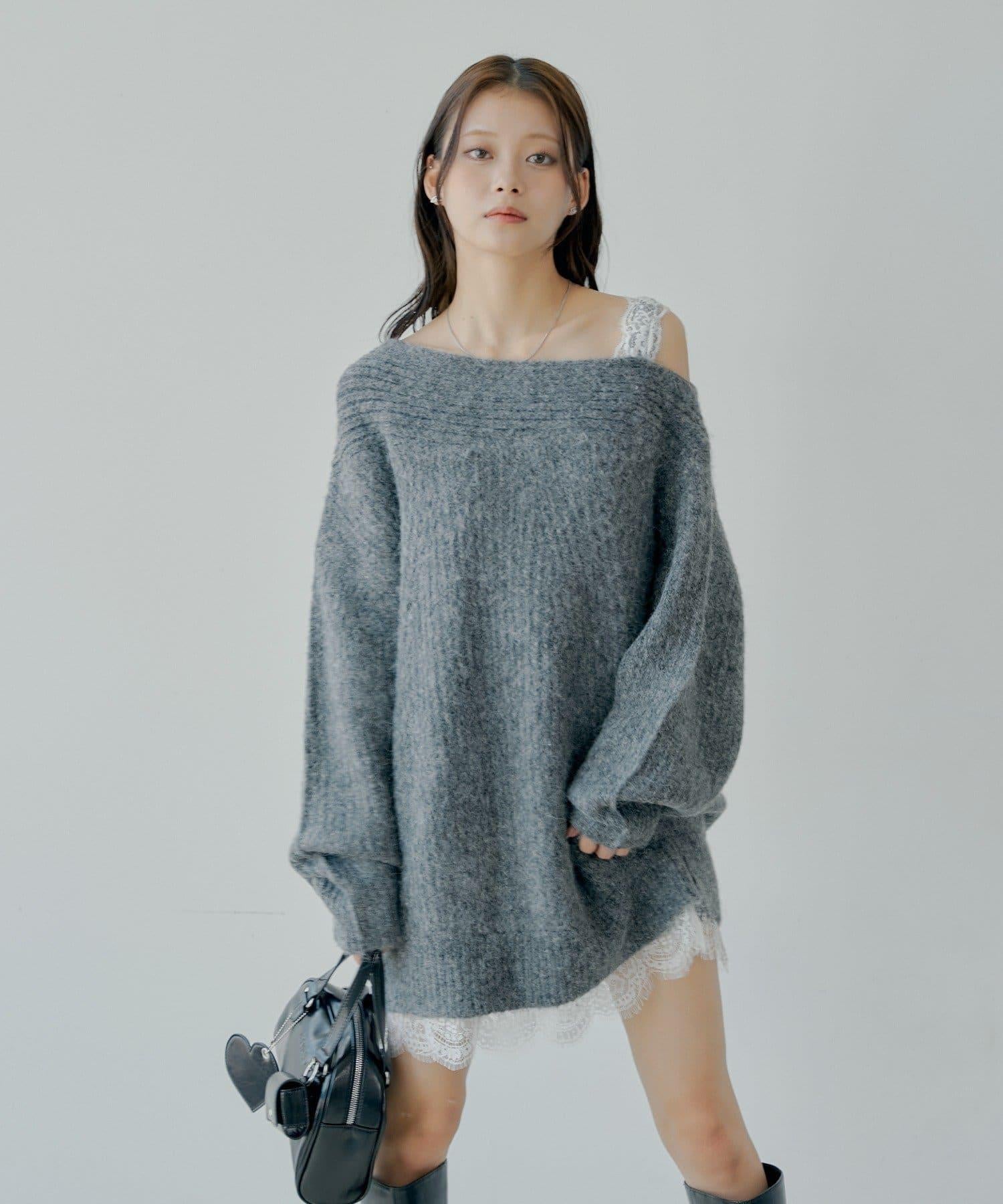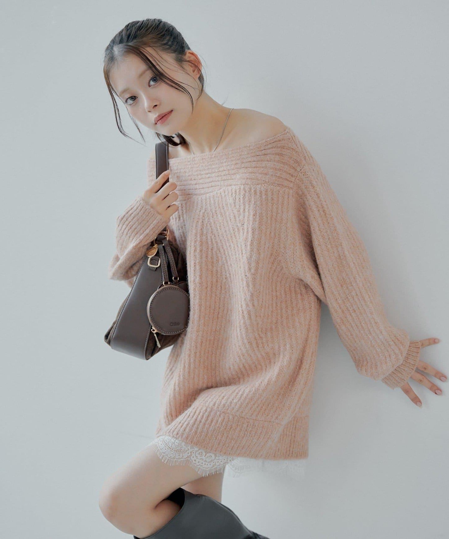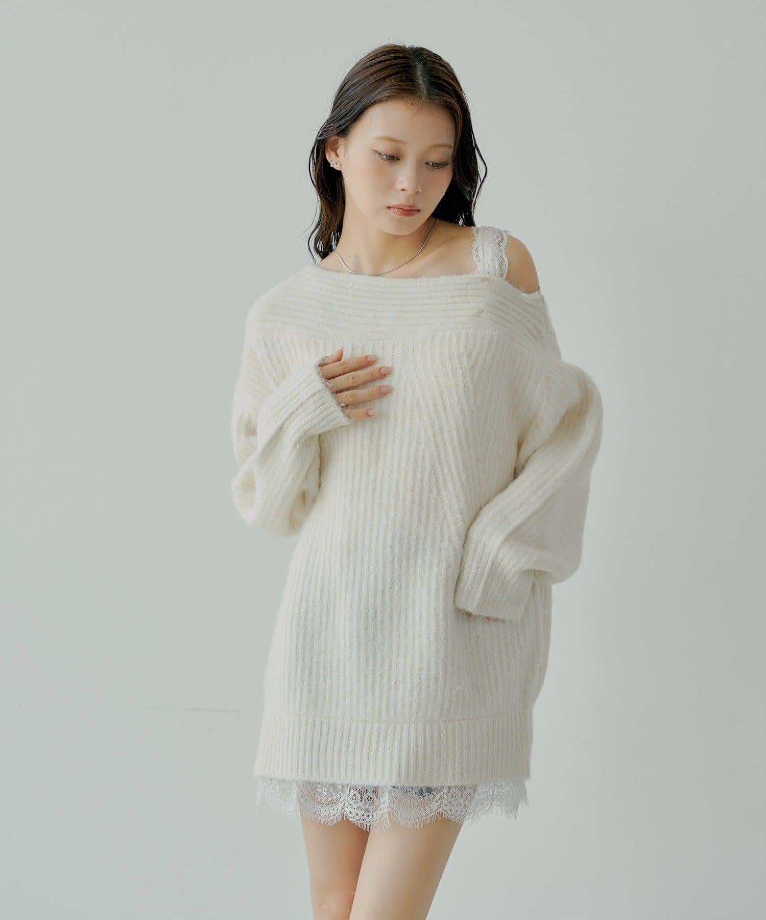 下襬的精緻蕾絲為這款休閒針織衫增添了女性氣息。