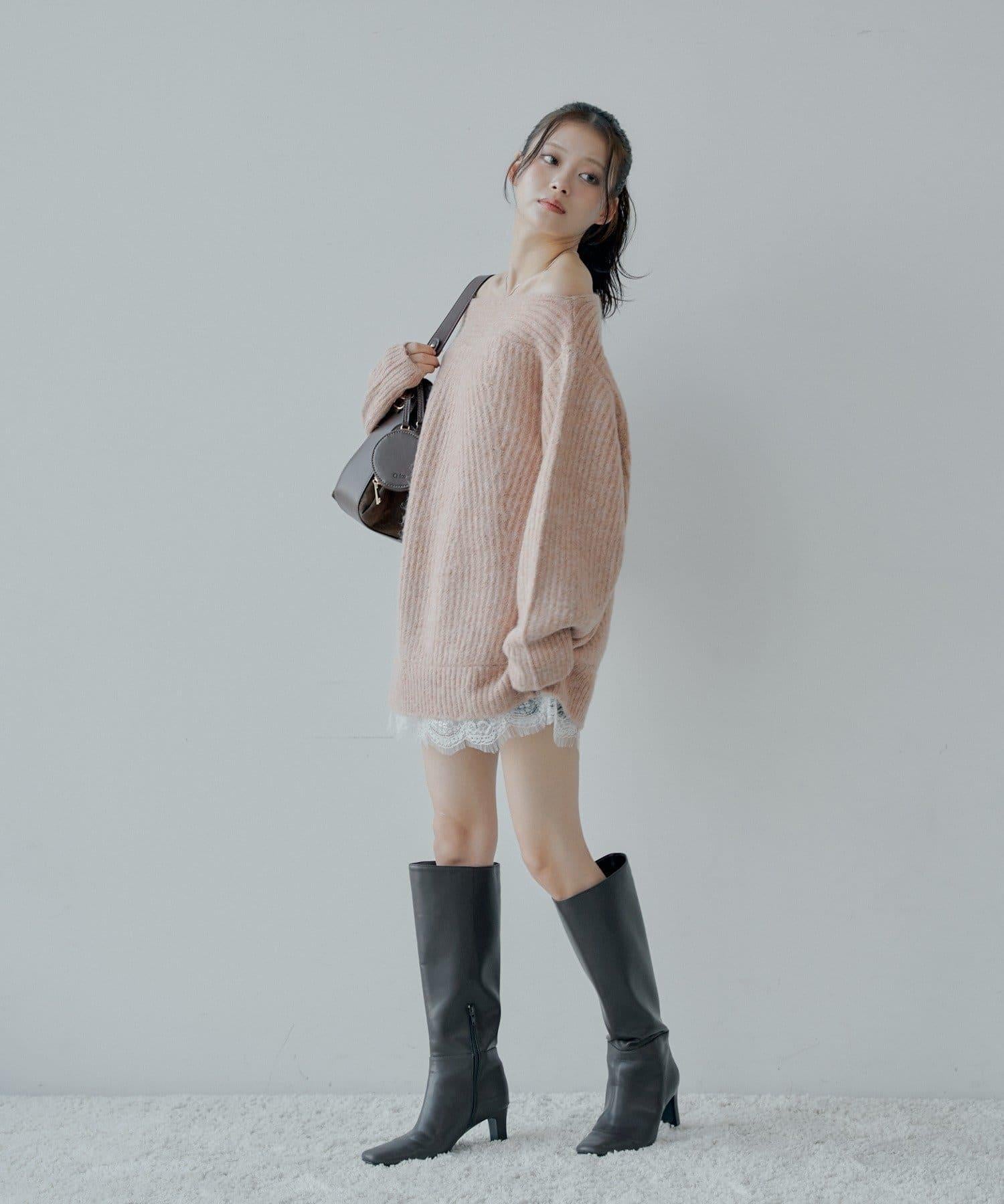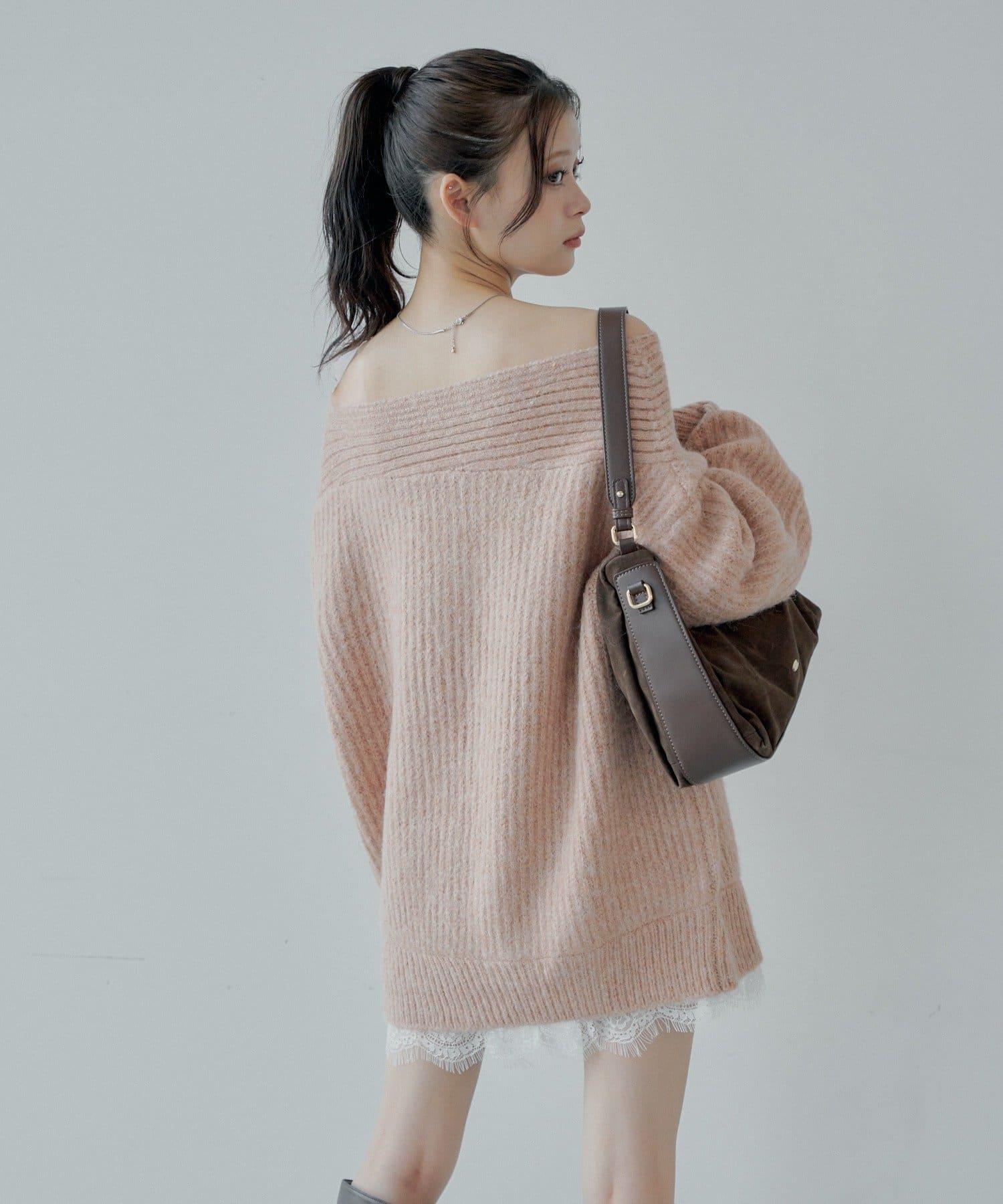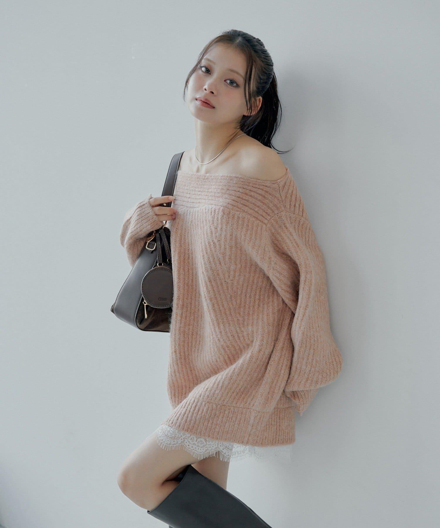 下襬的精緻蕾絲為這款休閒針織衫增添了女性氣息。