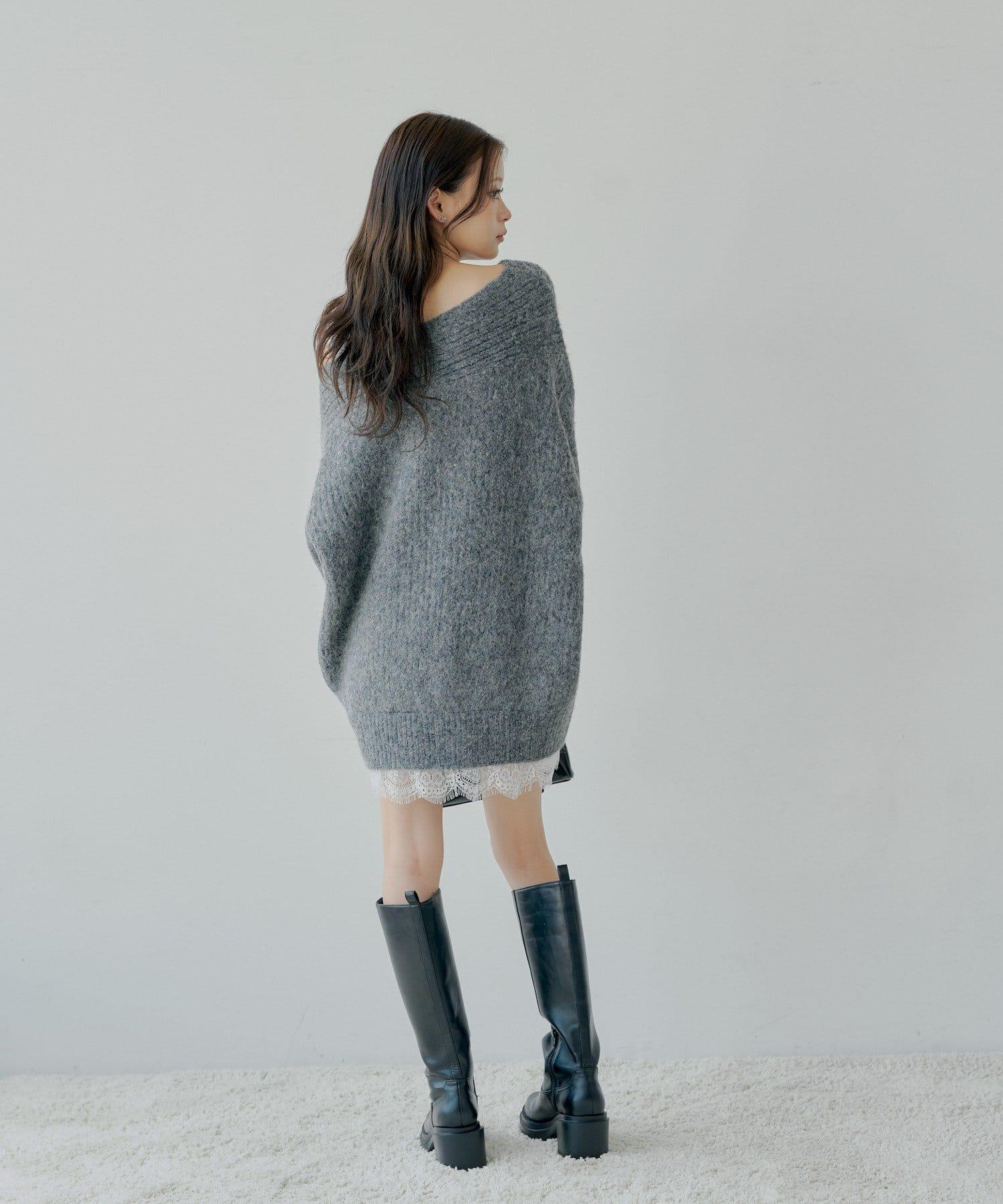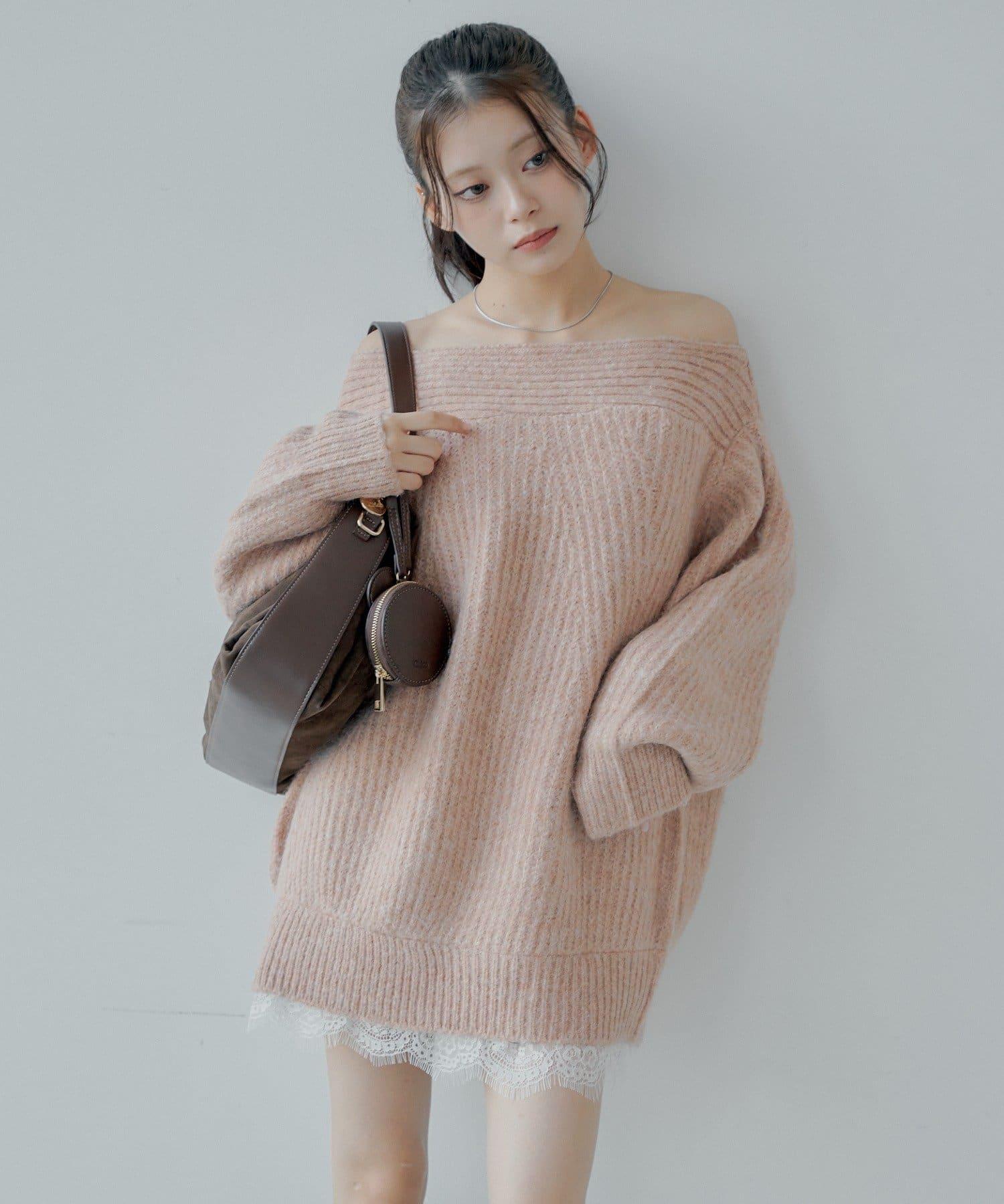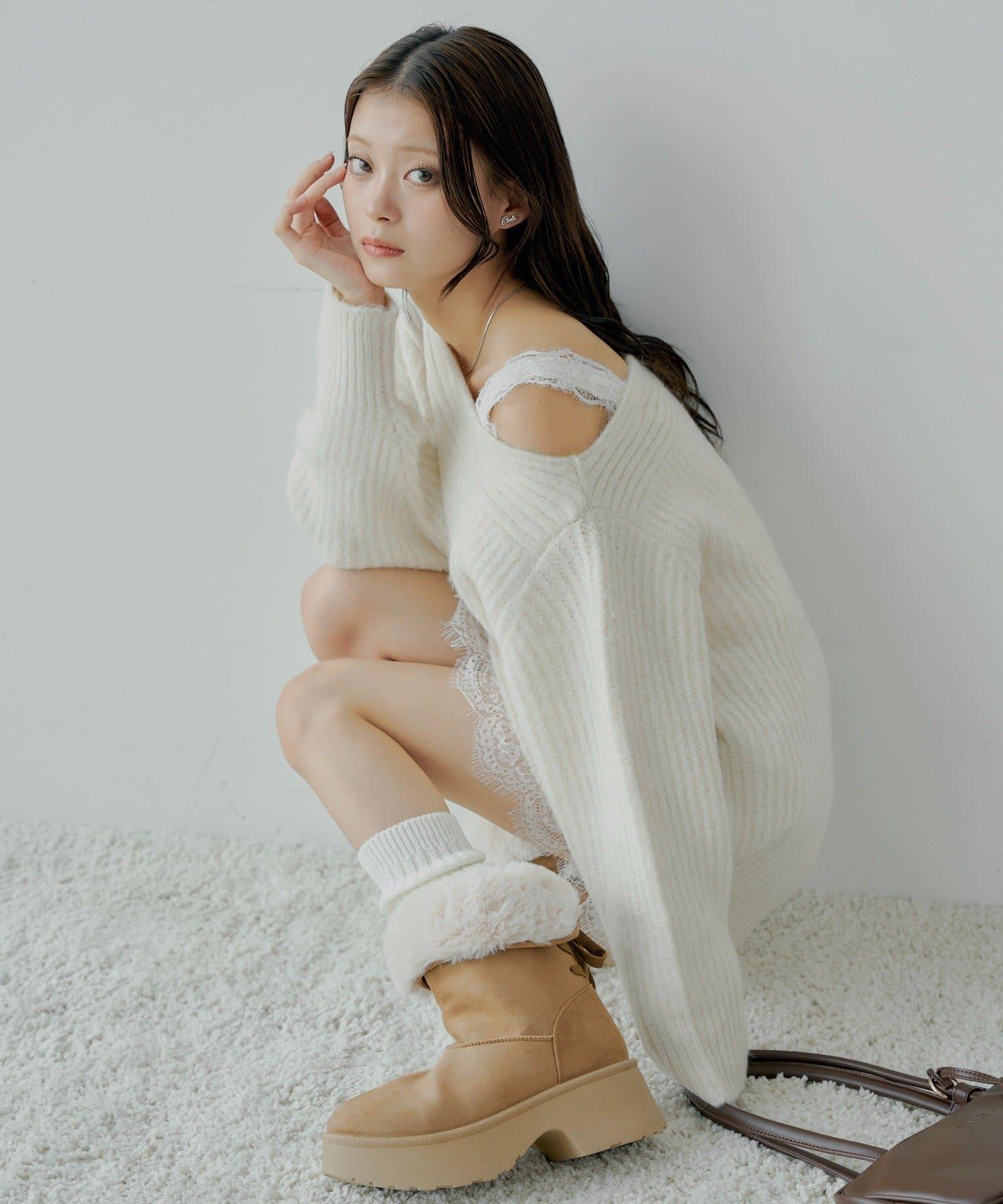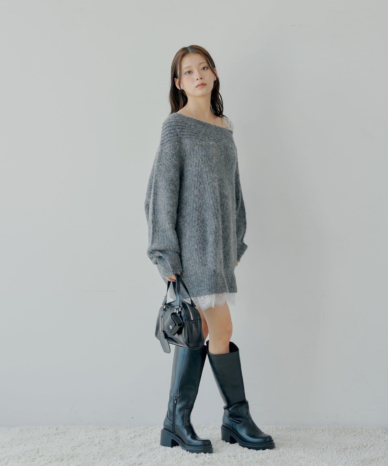單肩蕾絲針織迷你連衣裙,柔軟舒適的包裹感。