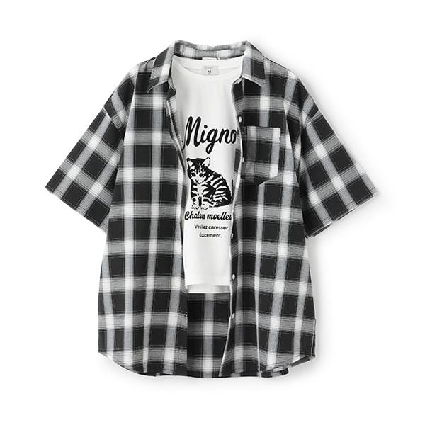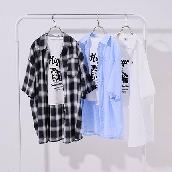 襯衫和 T 恤套裝,超大版型,時尚大方。