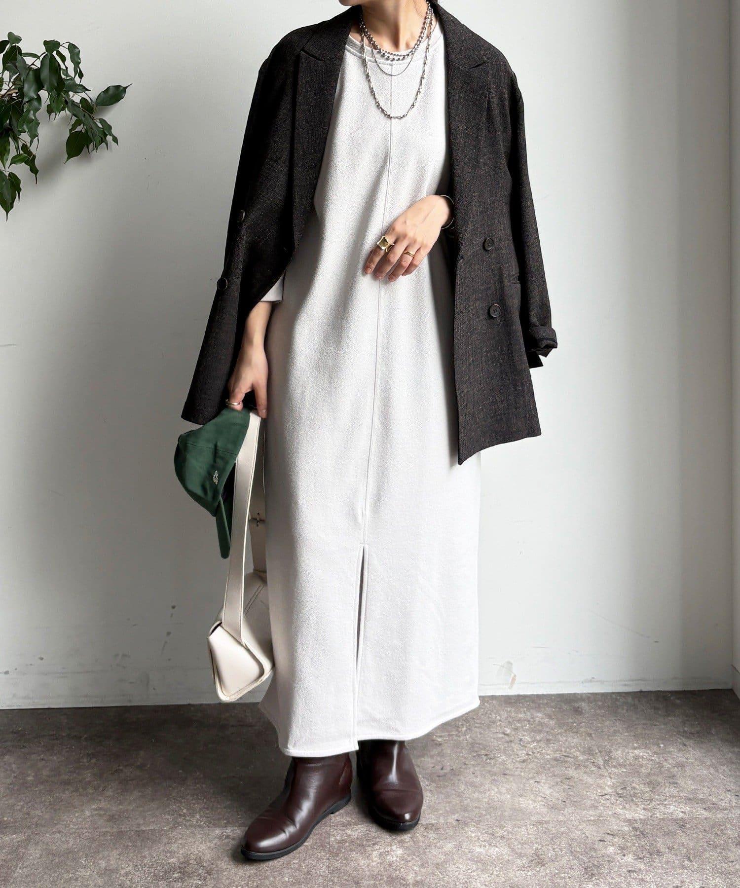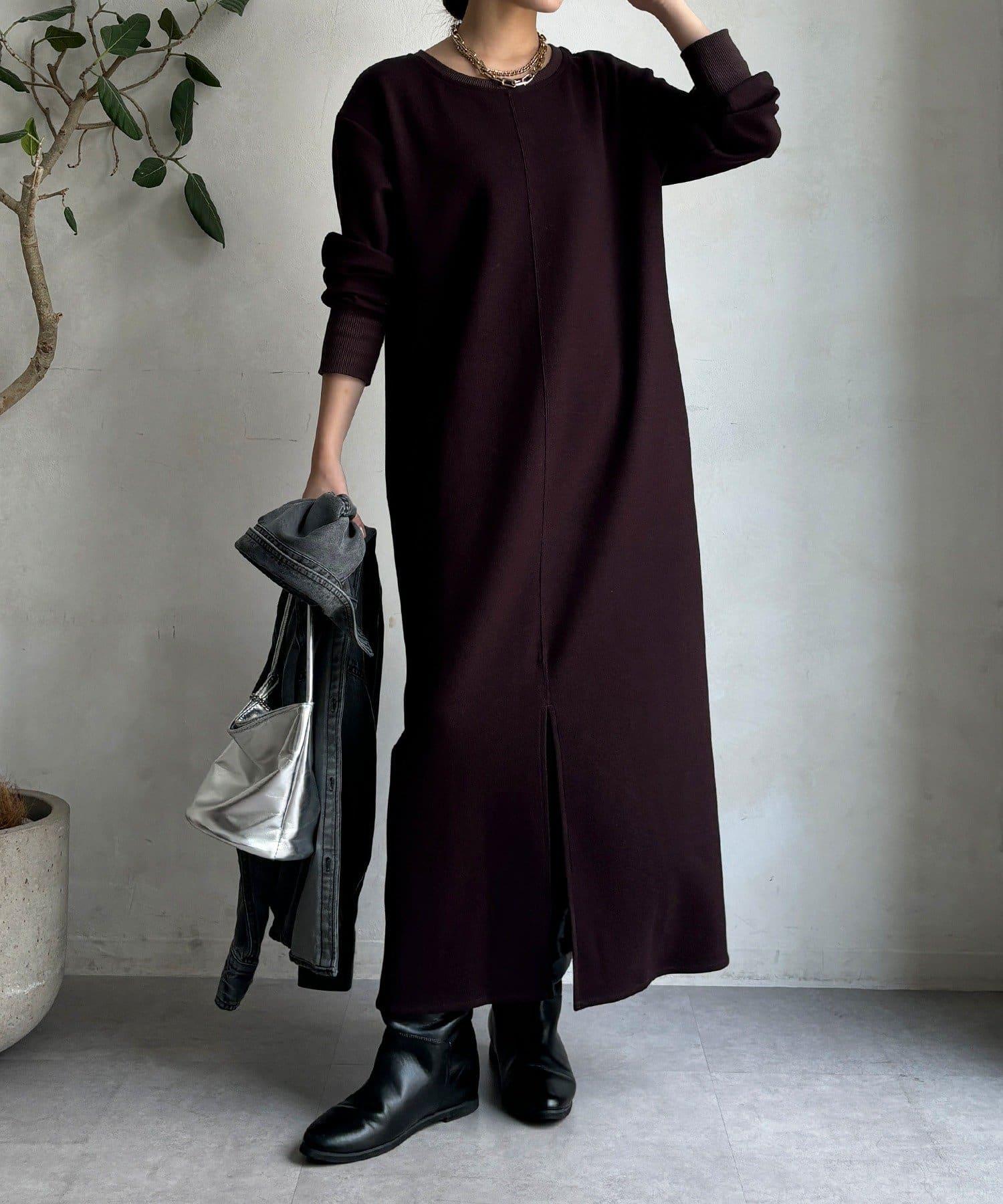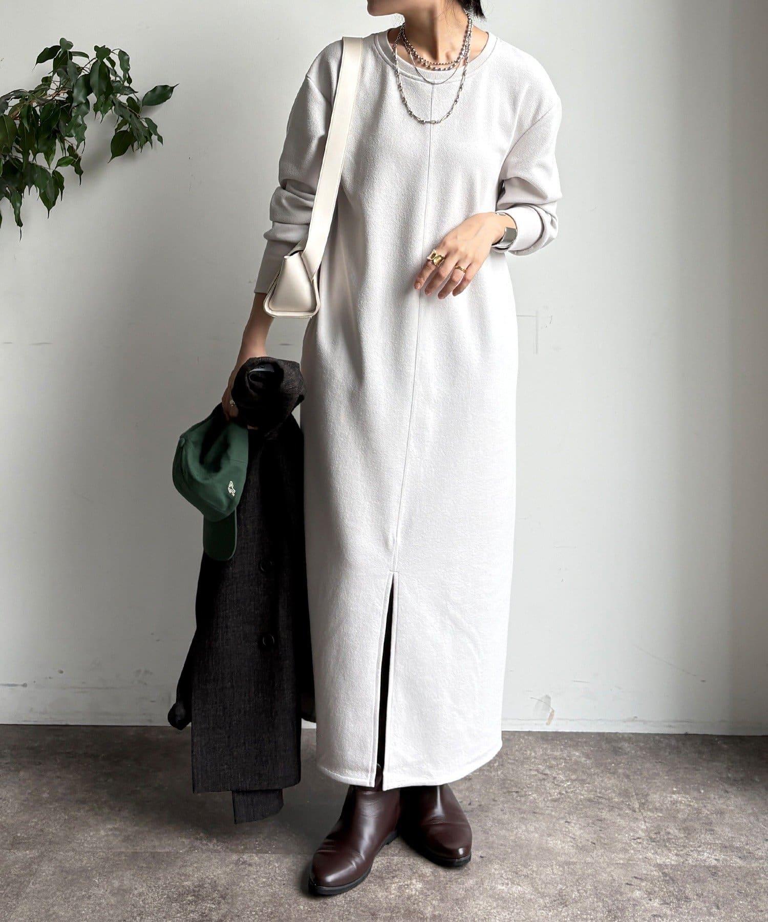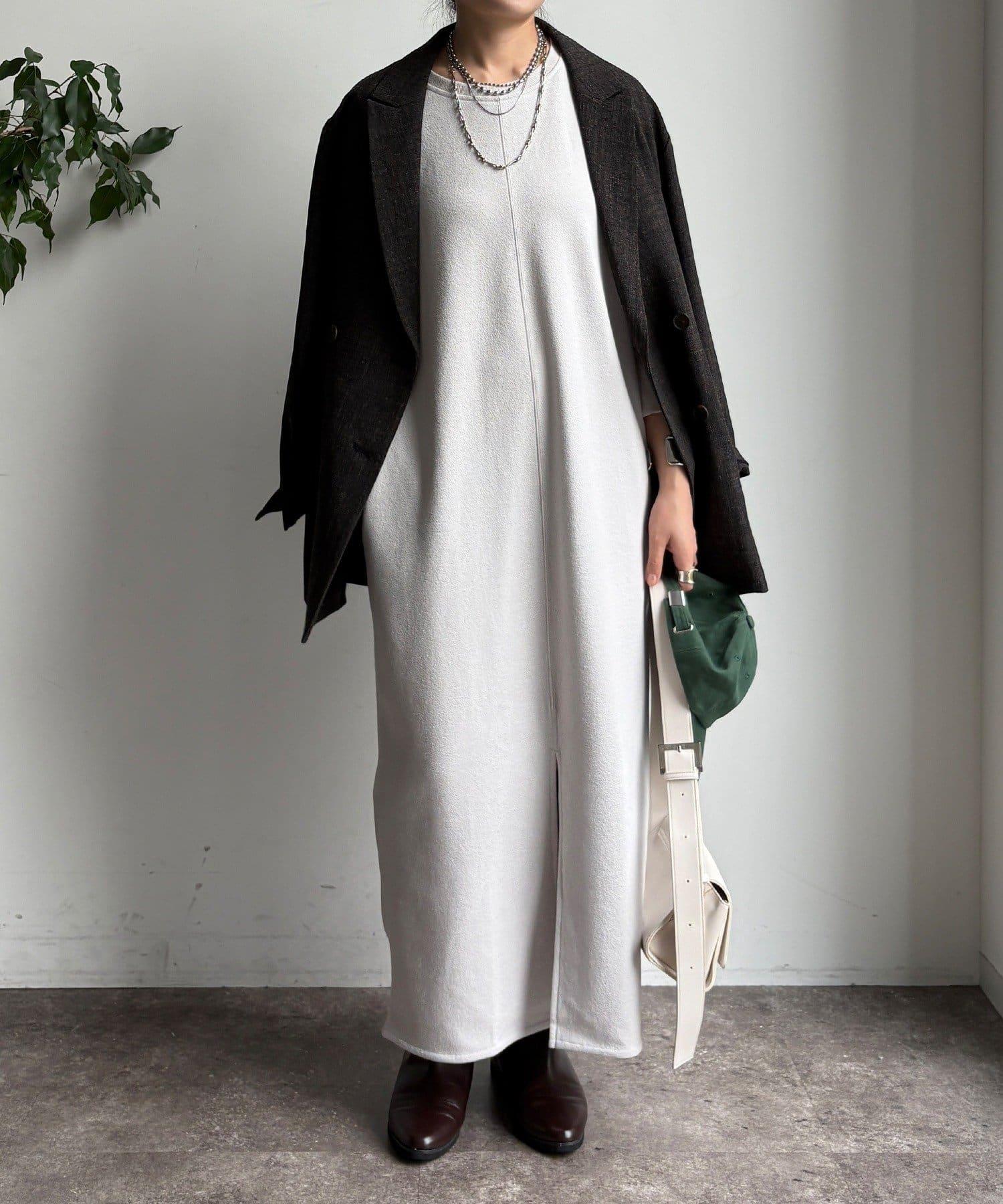 通過在前下襬加入開衩設計,長款連衣裙不會給人厚重的感覺。