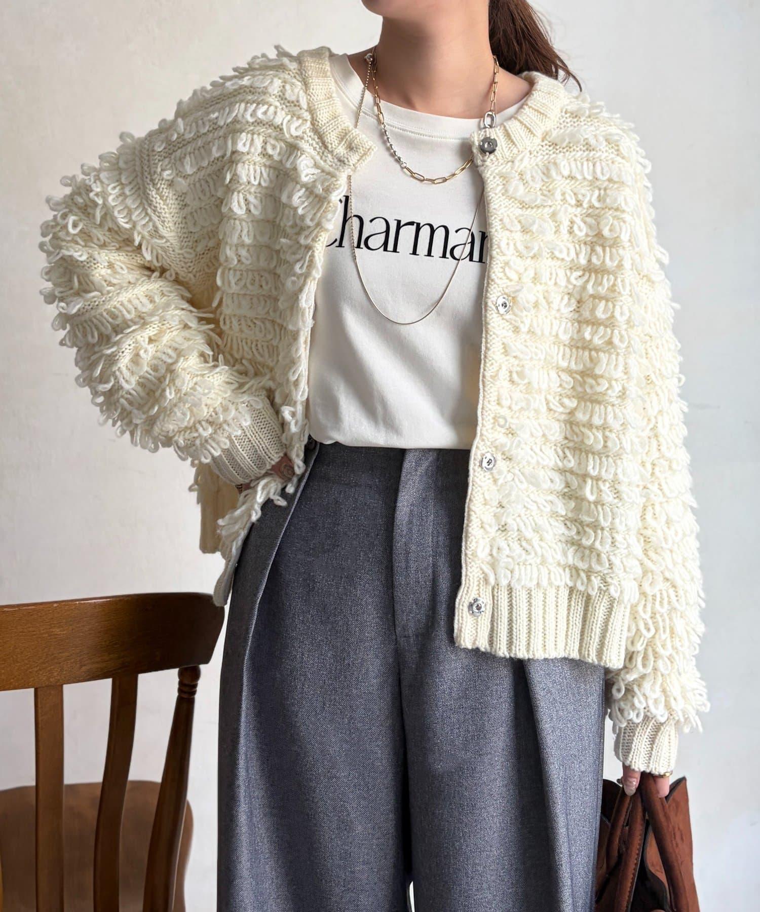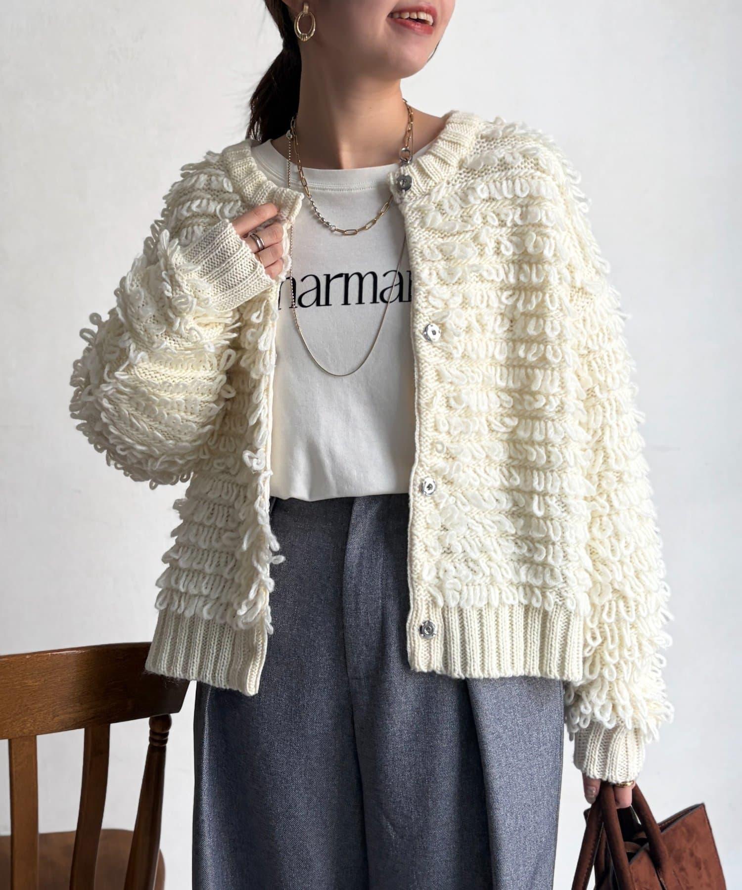 這款開衫可作為輕薄型編織物使用,因此在居家、外出和日常造型等多種場景中均可期待成功!