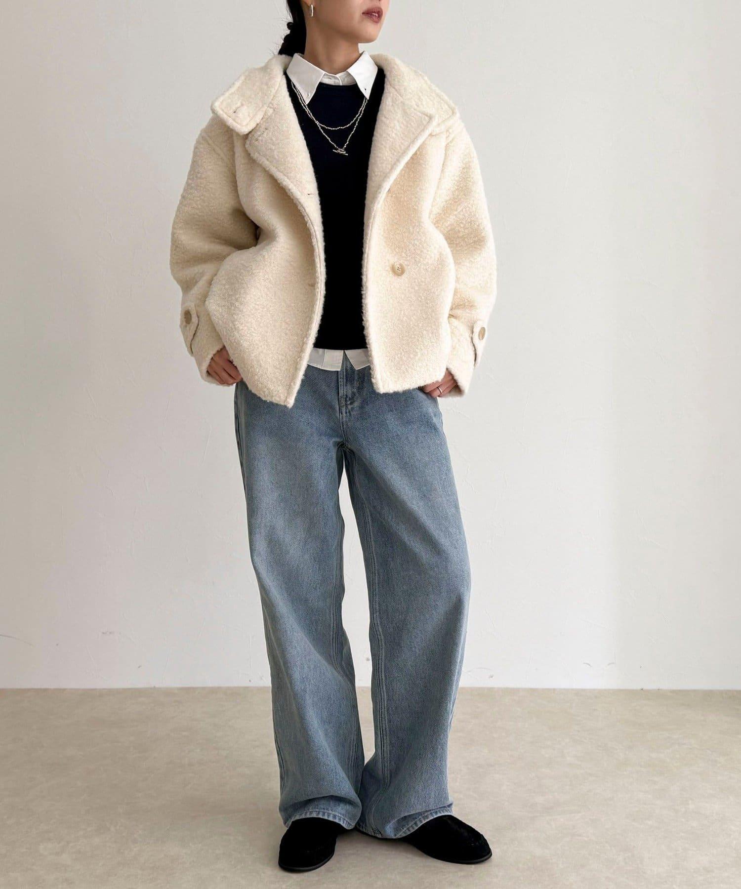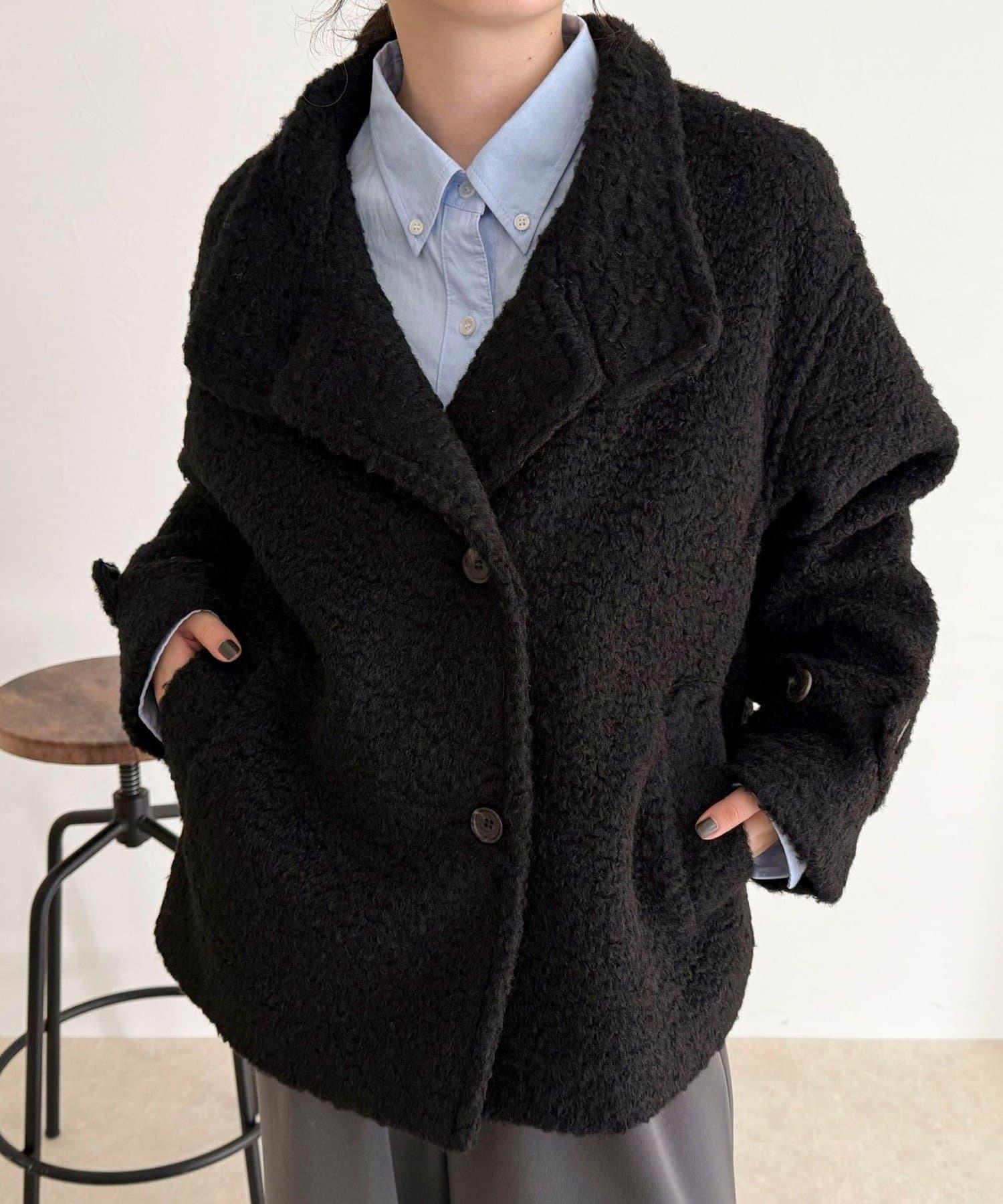 這是一款立領大衣,蓬鬆的體積吸引眼球。