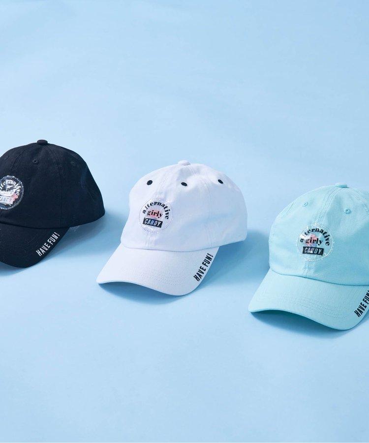 在透明徽章內裝有糖果狀珠子玩具的流行帽。