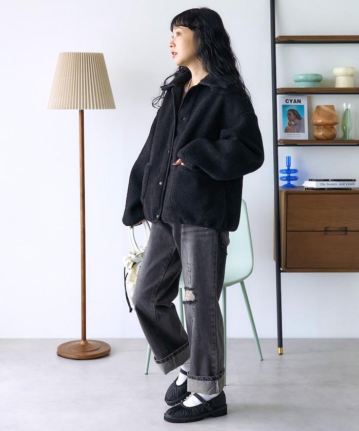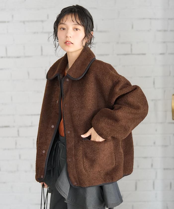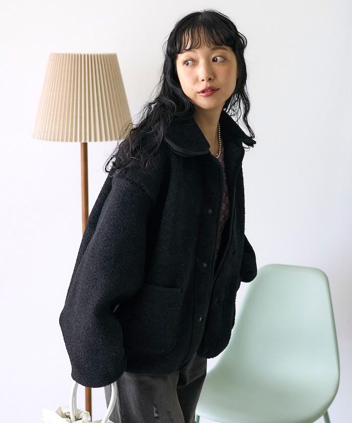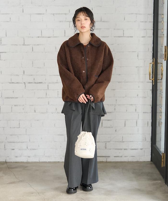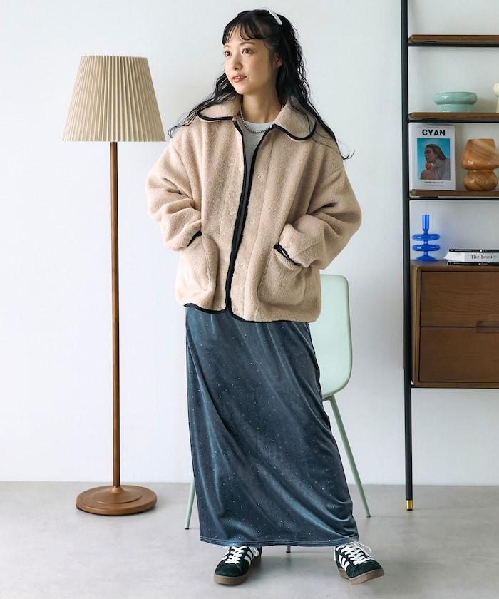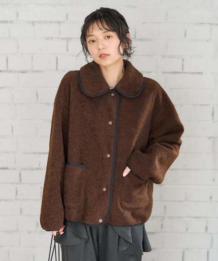絨毛材質的圓領蟒蛇夾克,令人愛不釋手。
