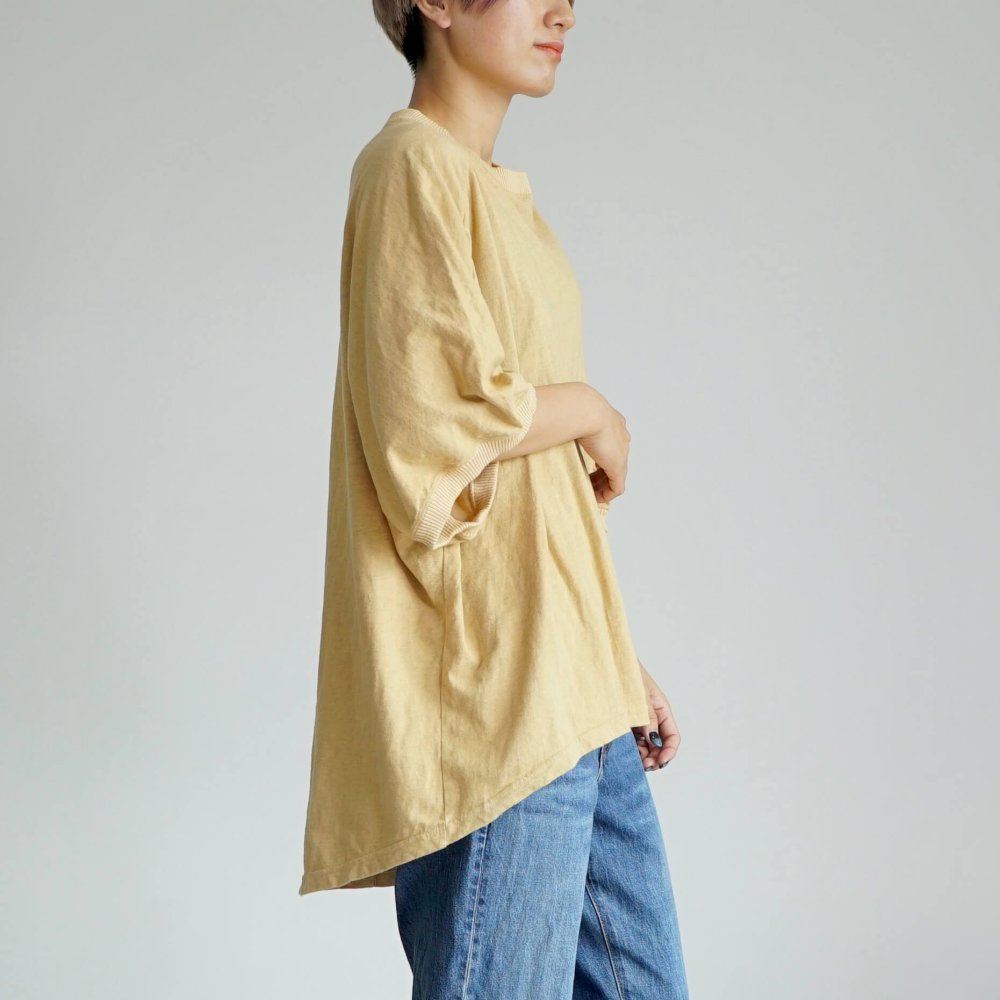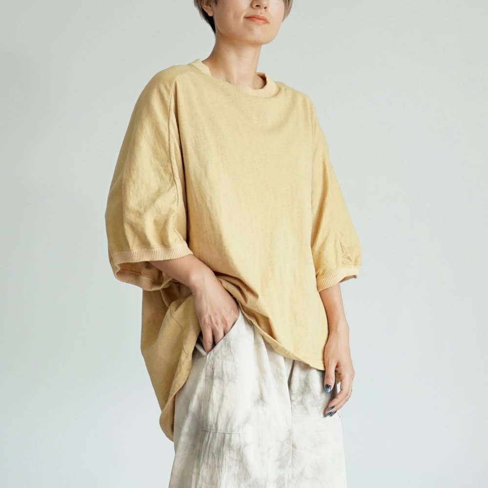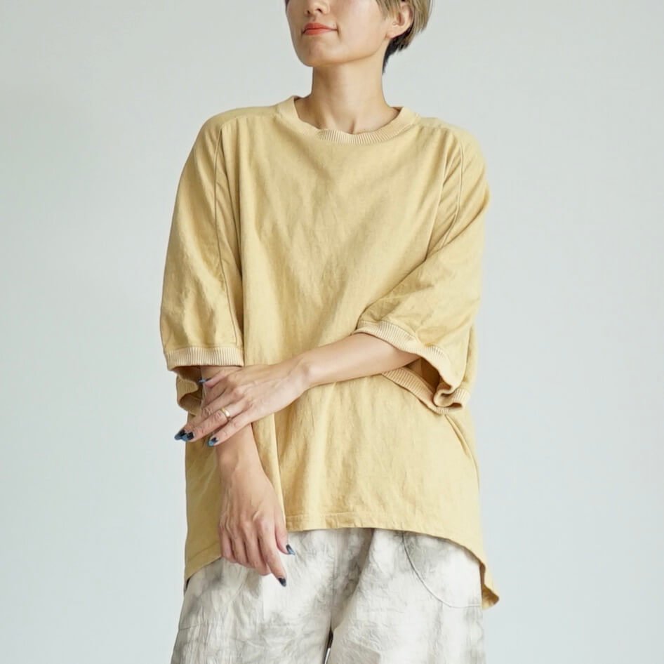 圓領寬鬆袖T恤/淺橙色/愛知縣產針織面料