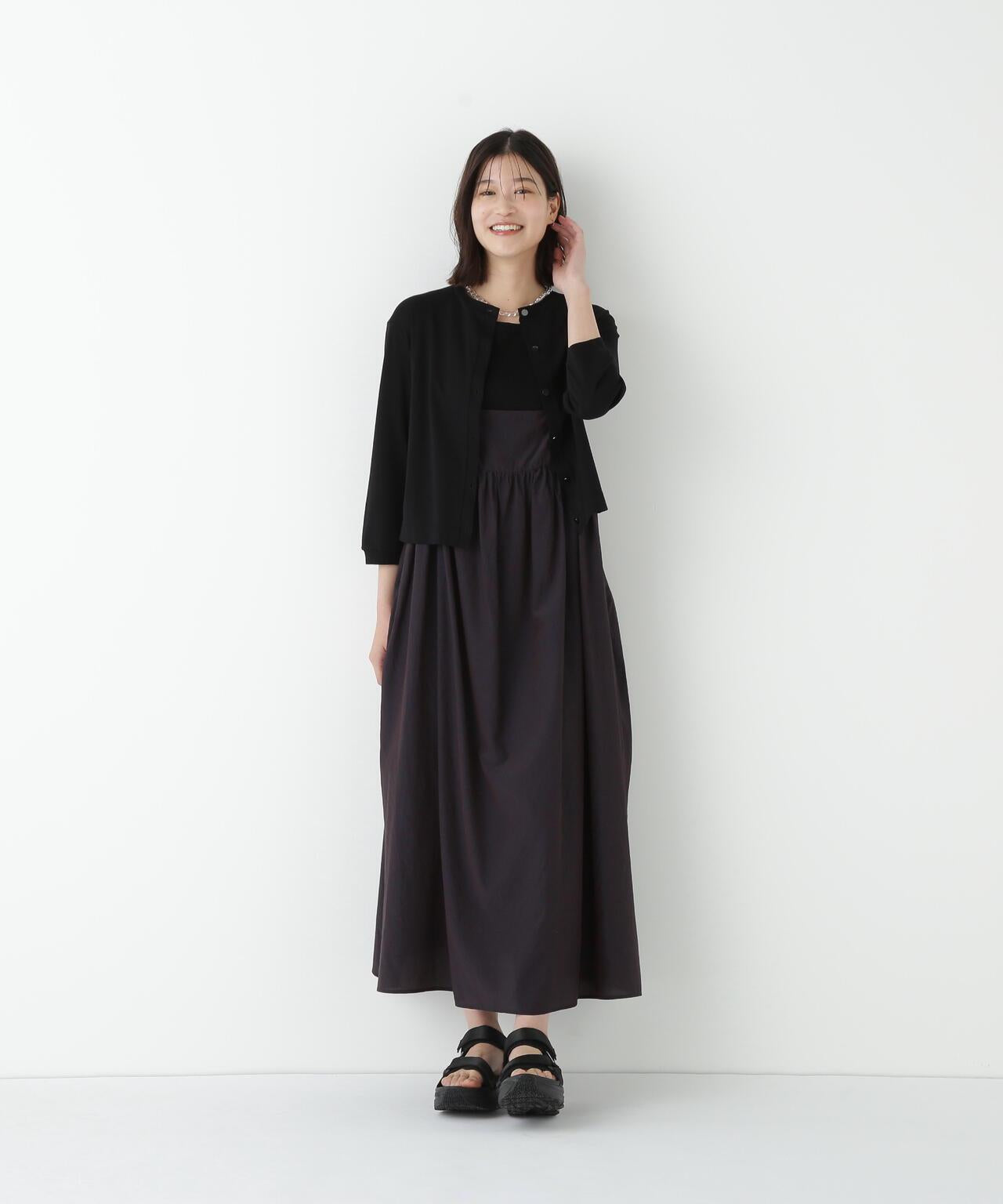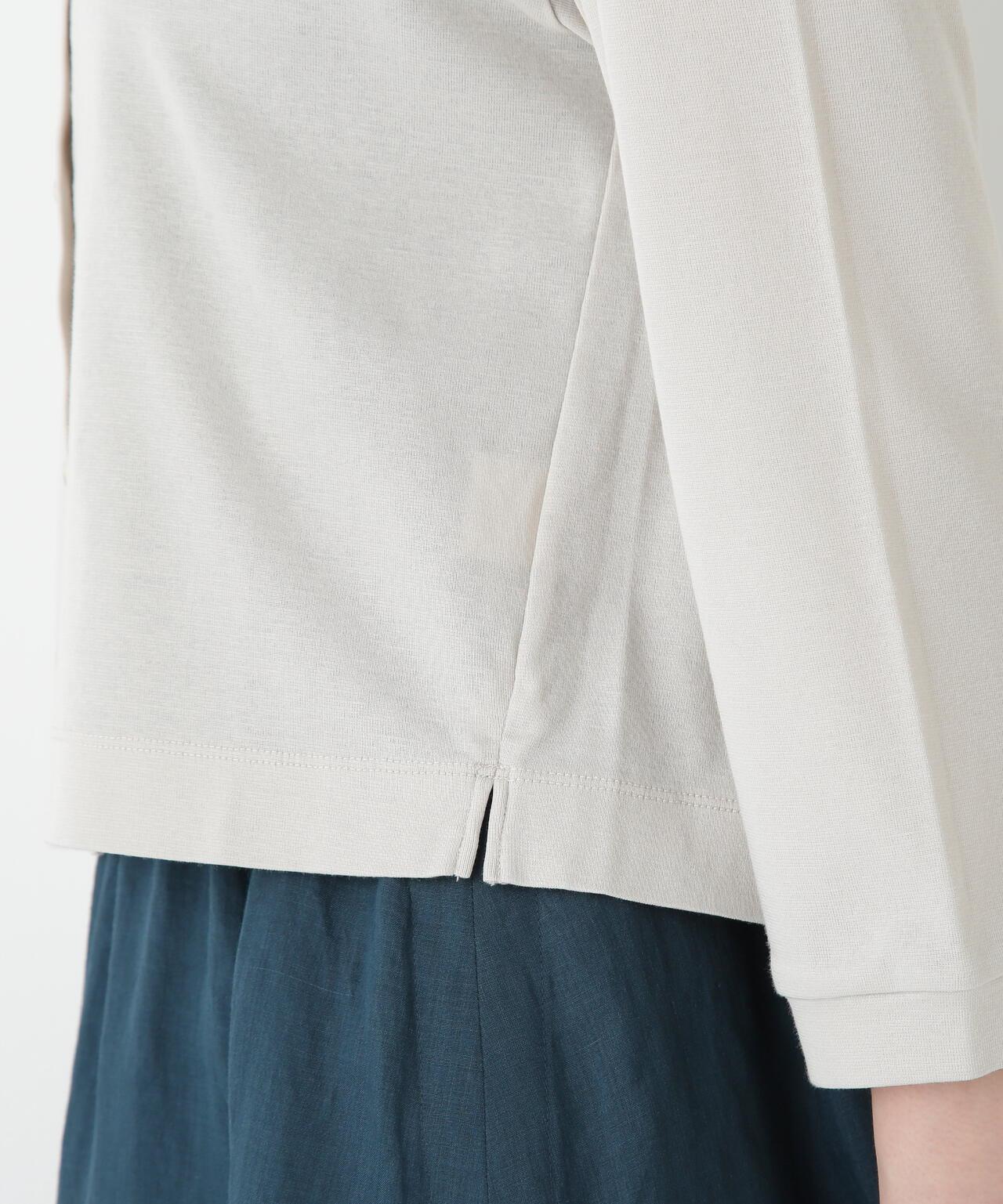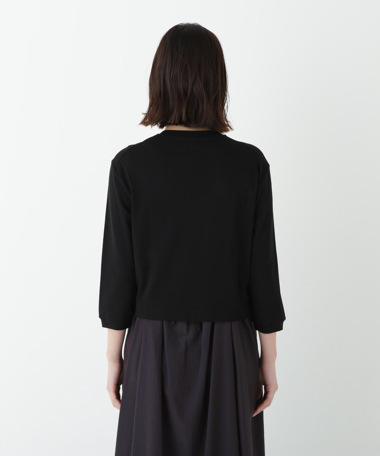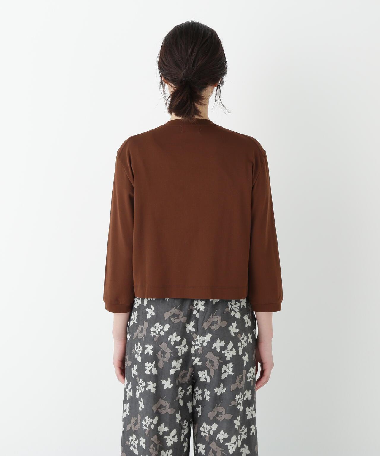 剪裁和縫製簡潔的開衫,適合各種場合 [設計特色] 這款圓領開衫長度較短,7''袖子給人輕盈的印象。金屬裝飾在簡潔的場景中也很實用。面料採用磨毛面料,手感乾爽。面料觸感涼爽,質地輕盈。簡潔的設計適合上班和下班時穿著。扣上紐扣後還可作為套頭衫穿著。此外,還建議將其放在包裡,作為防空調用品。