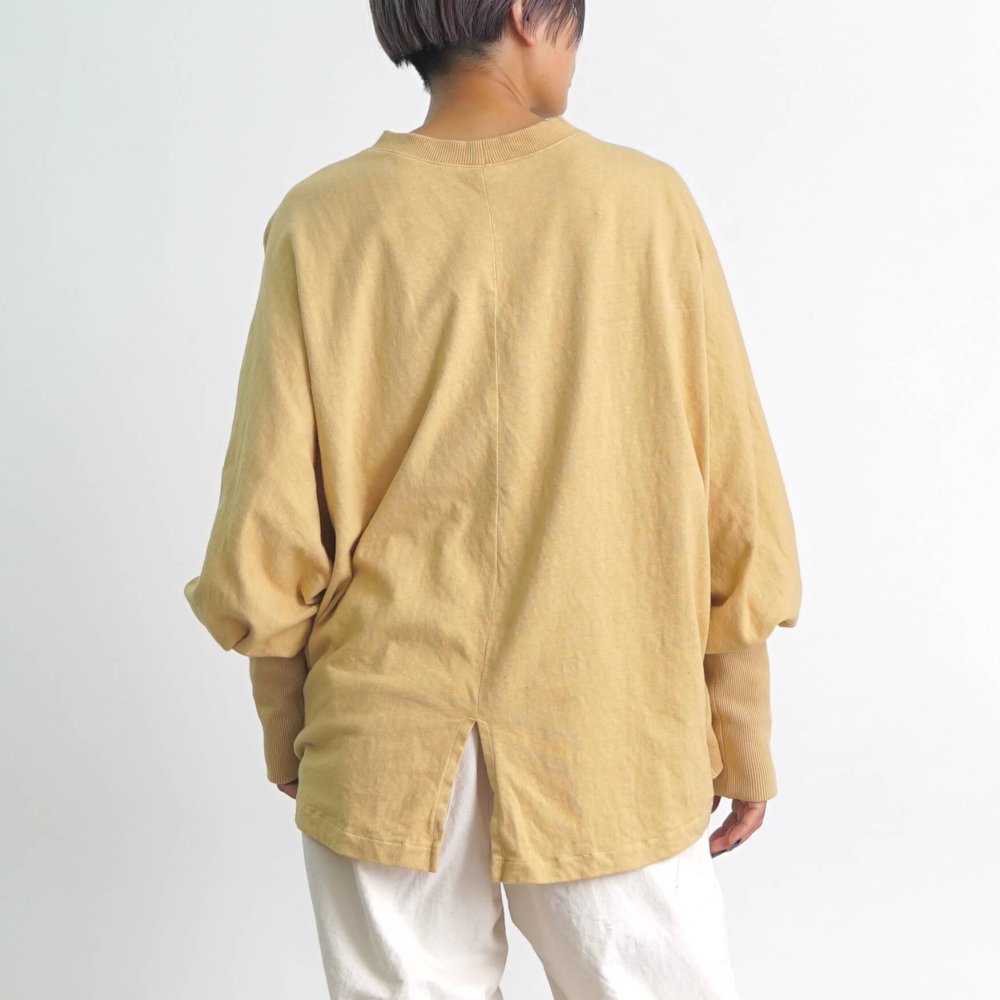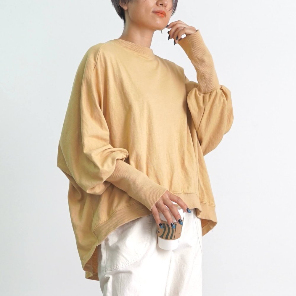 在充分利用多爾曼袖的同時,採用了時尚簡潔的製作方法,即使穿上外衣也不會顯得臃腫,因此可以放心穿著。當然,也建議穿得隨意一點,把褲子搭配得高大上一點,露出裡面襯衫的一瞥的疊穿款式也很推薦,給人一種季節感。