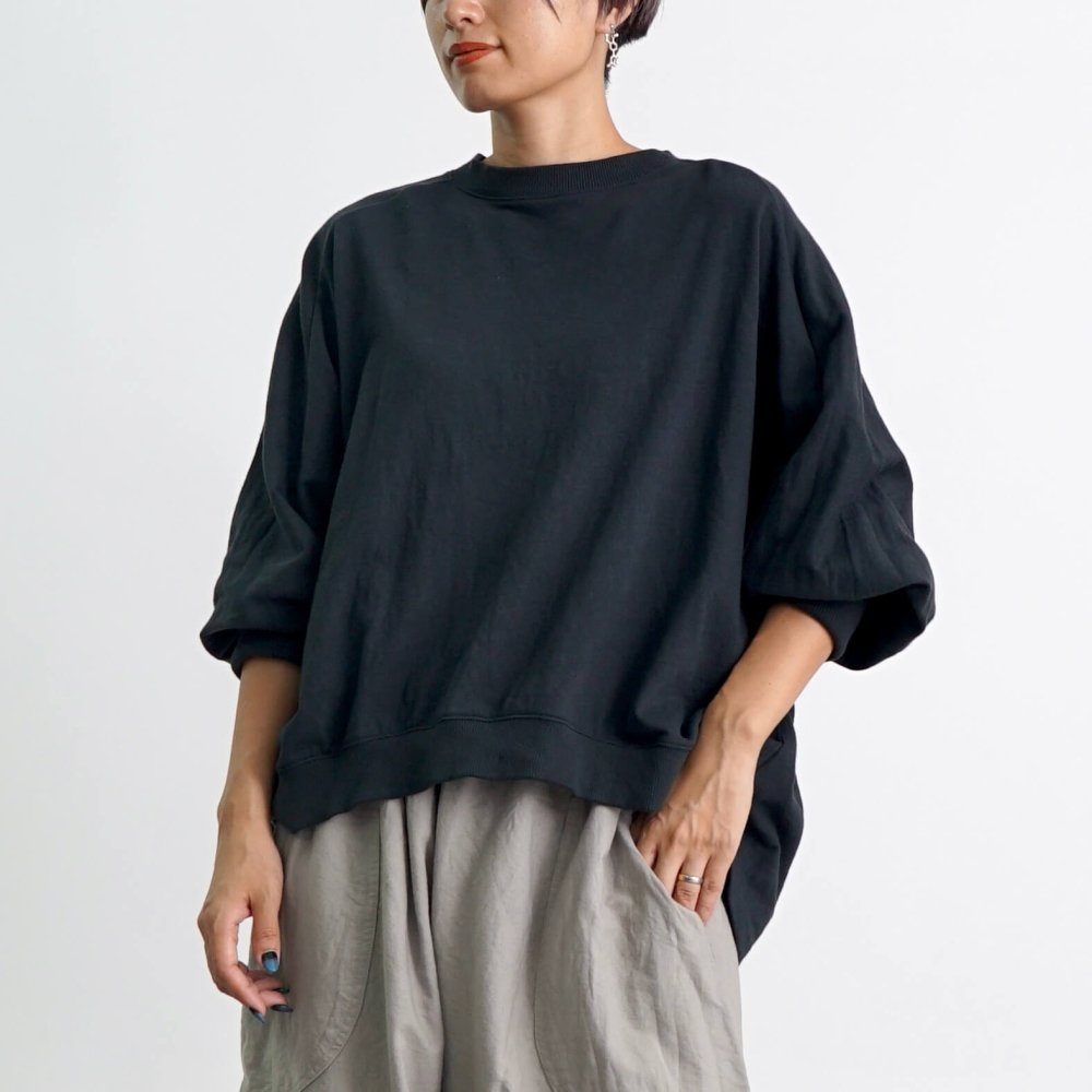 在充分利用多爾曼袖的同時,採用了時尚簡潔的製作方法,即使穿上外衣也不會顯得臃腫,因此可以放心穿著。當然,也建議穿得隨意一點,把褲子搭配得高大上一點,露出裡面襯衫的一瞥的疊穿款式也很推薦,給人一種季節感。