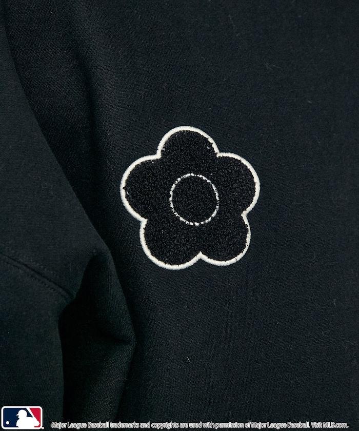 正面印有 MLB 隊徽和 MARY QUANT 標誌性的雛菊圖案徽章。👍的設計融合了不同的魅力,將成為您造型的主角。