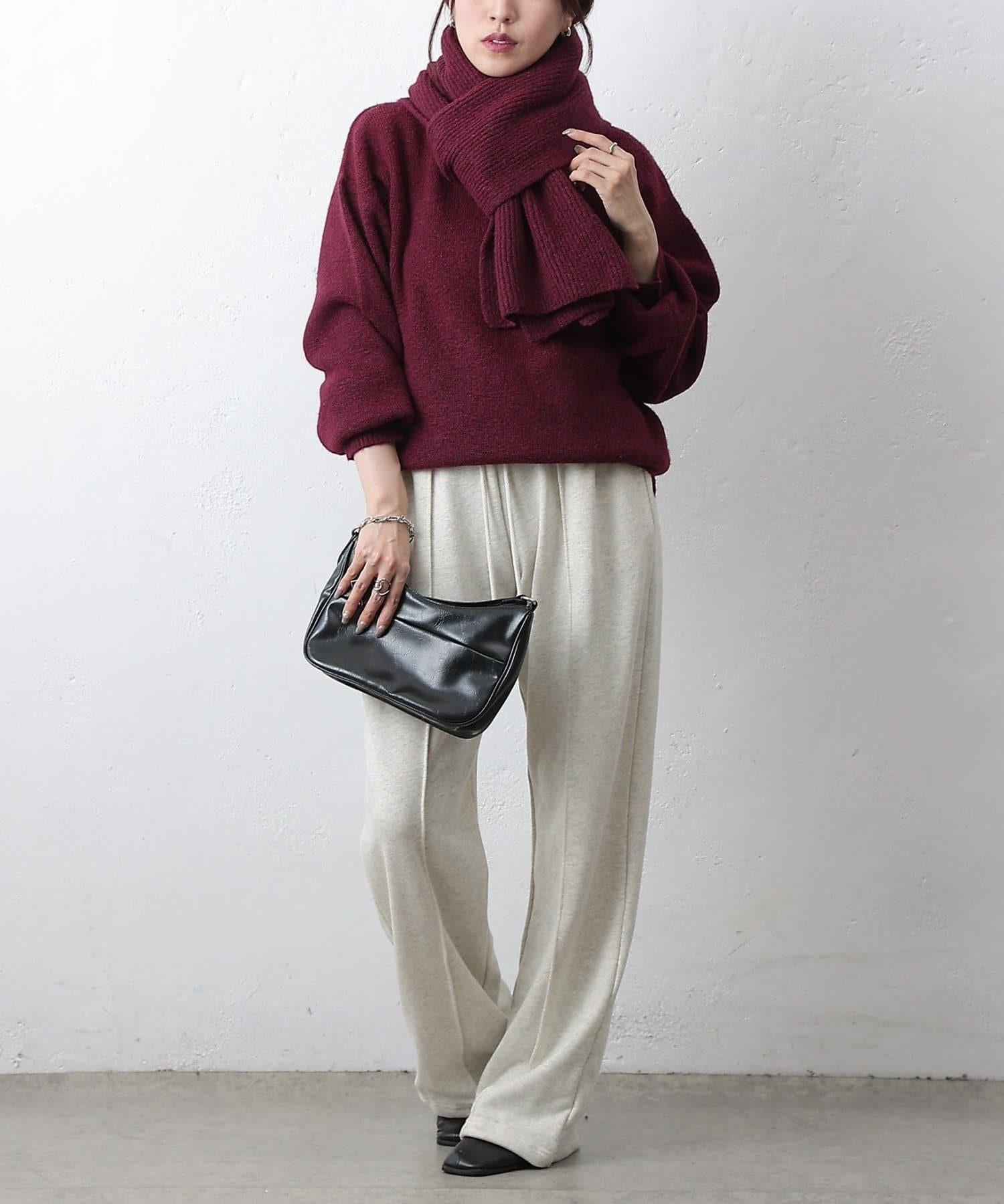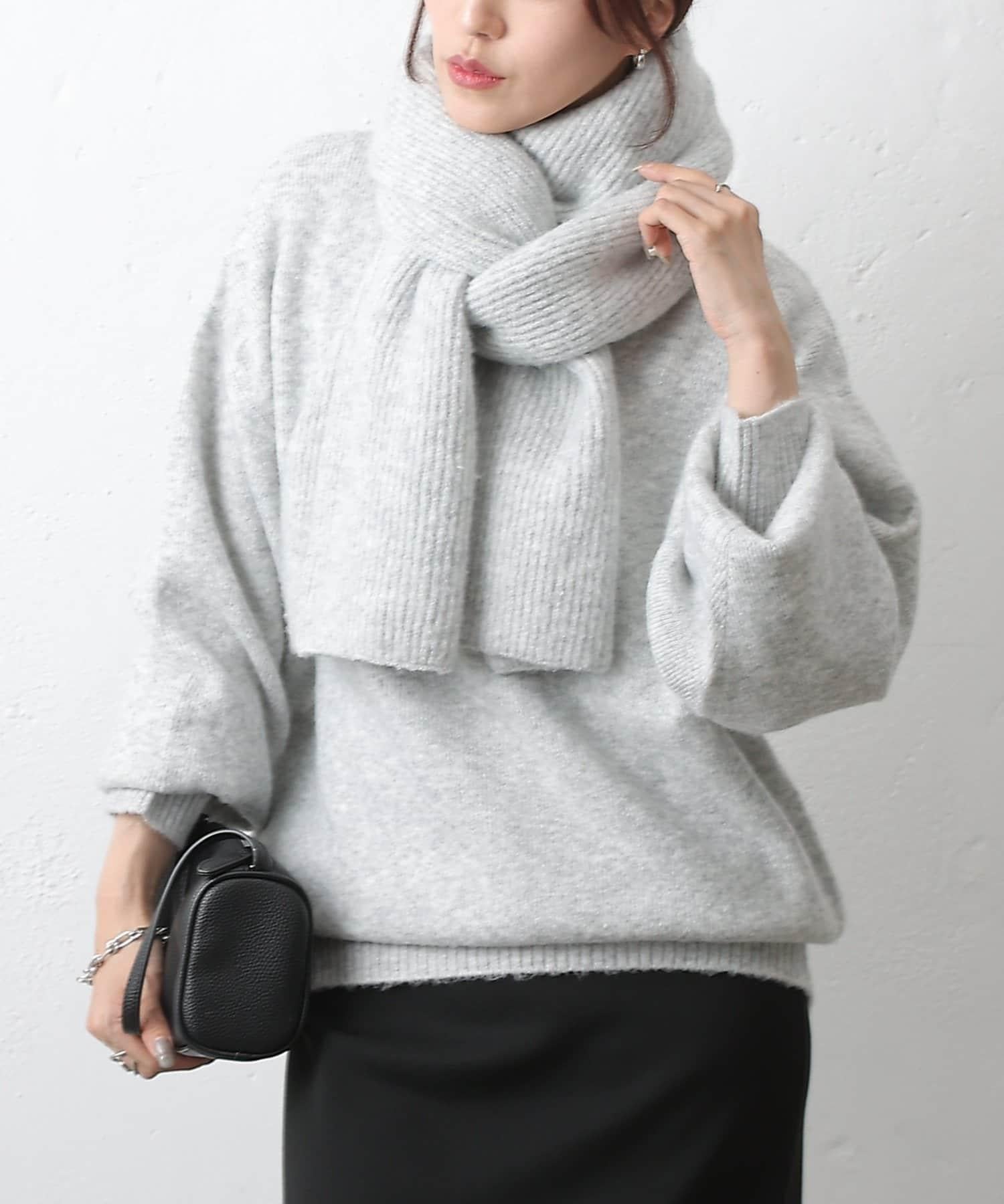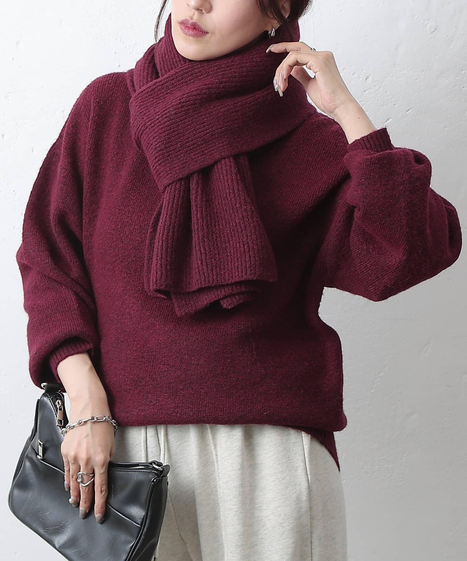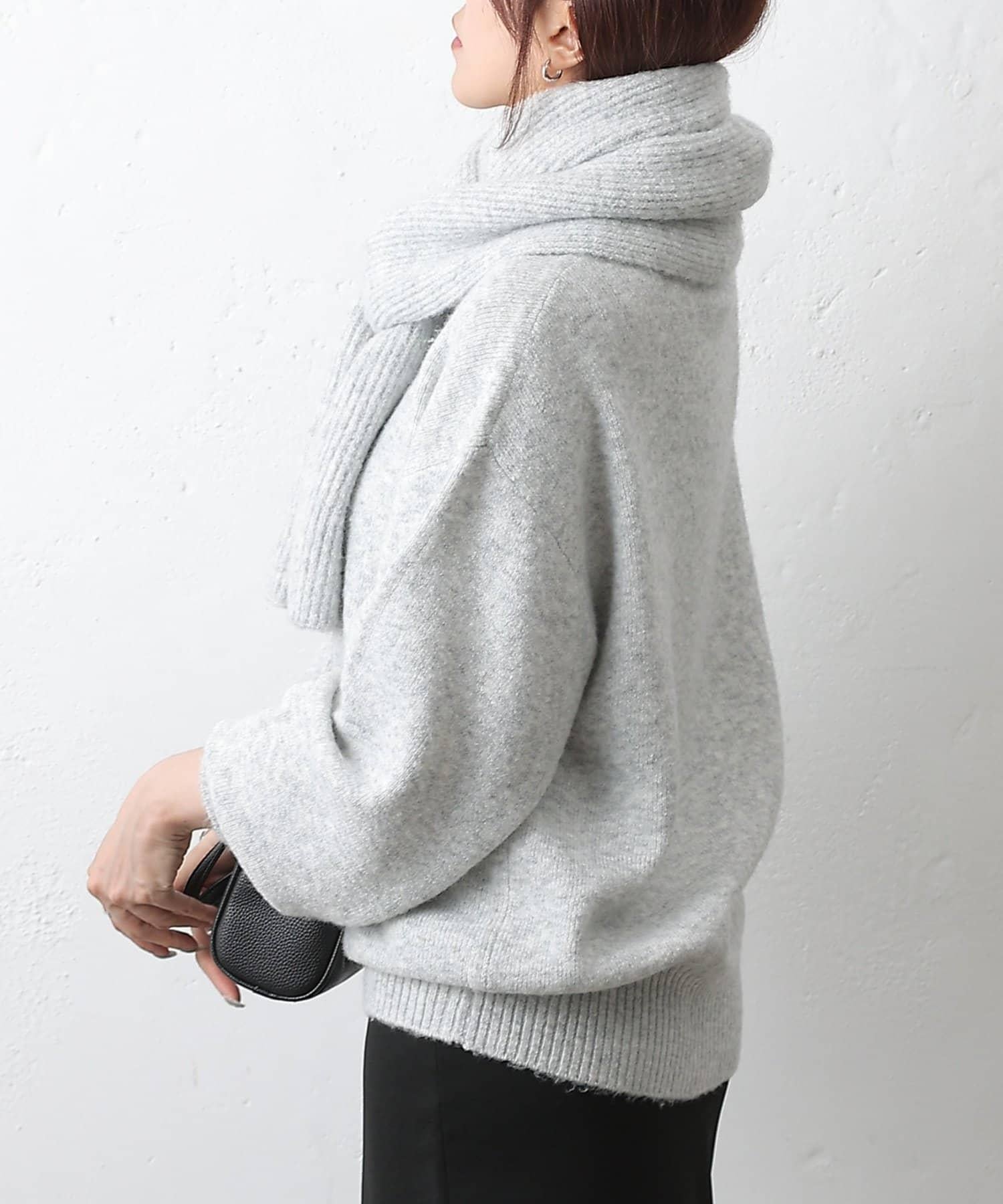 該套裝包括一件圓領針織衫和一條同色圍巾。