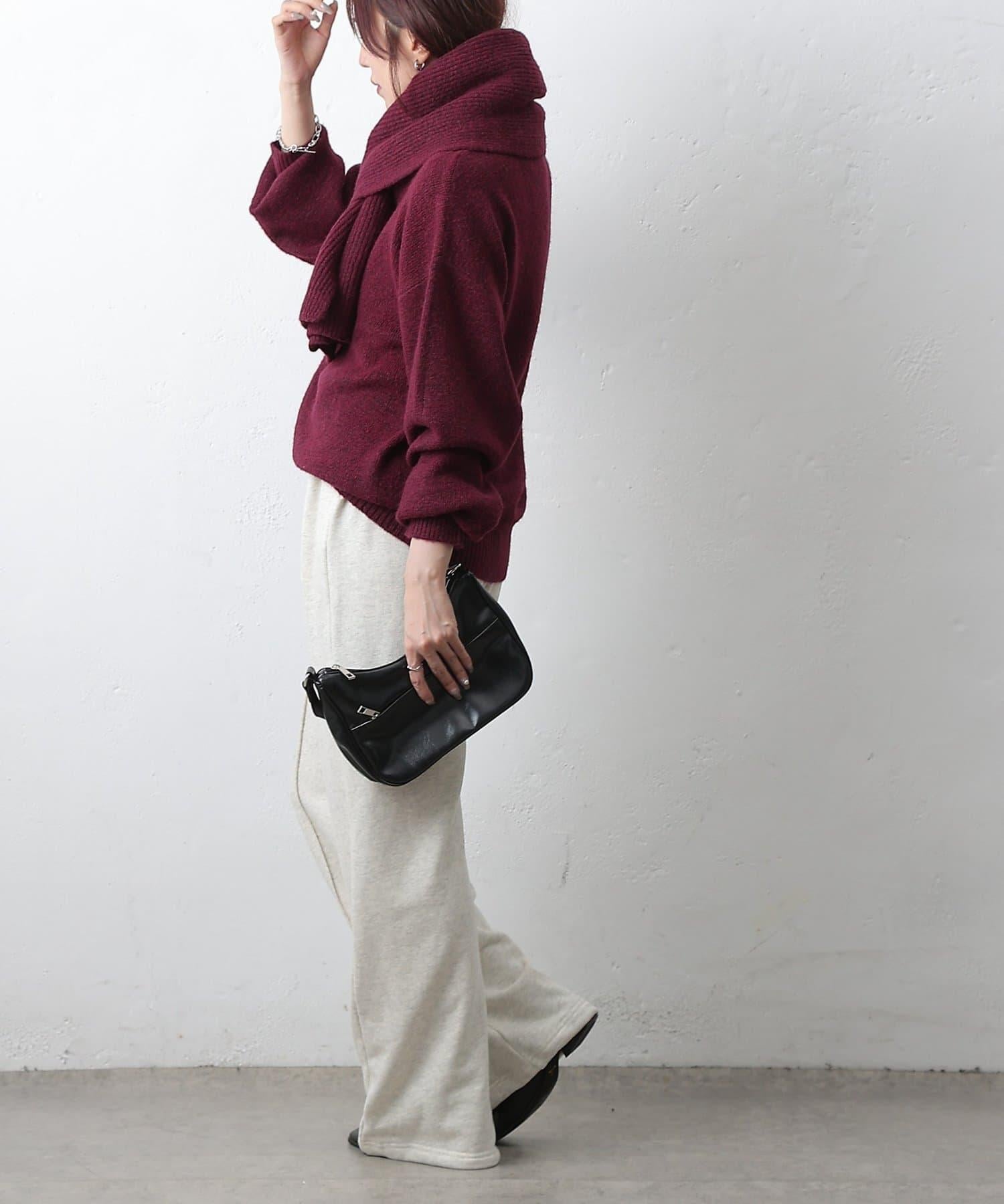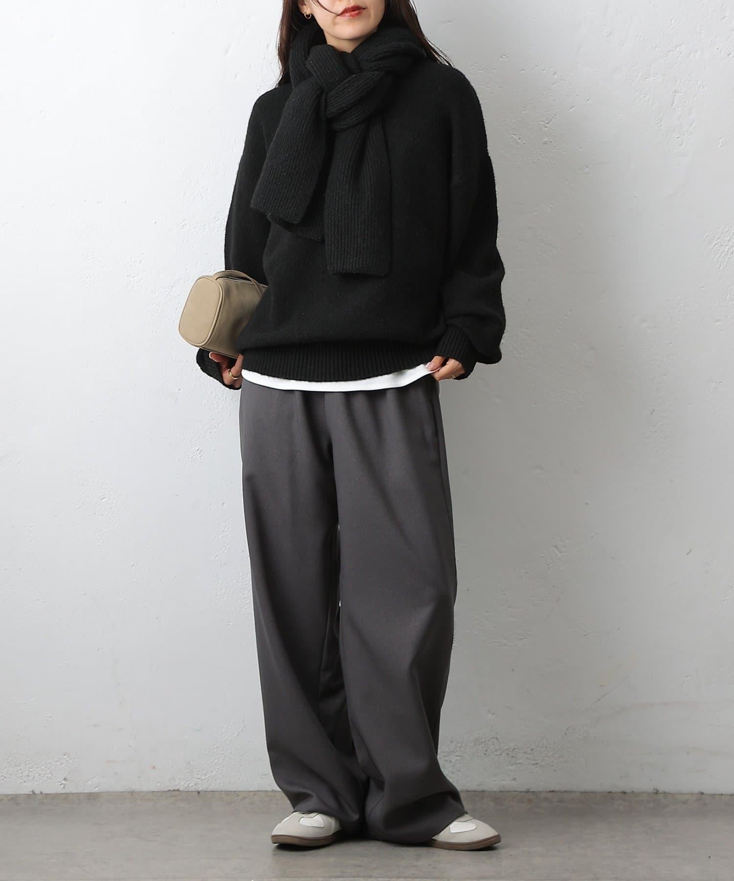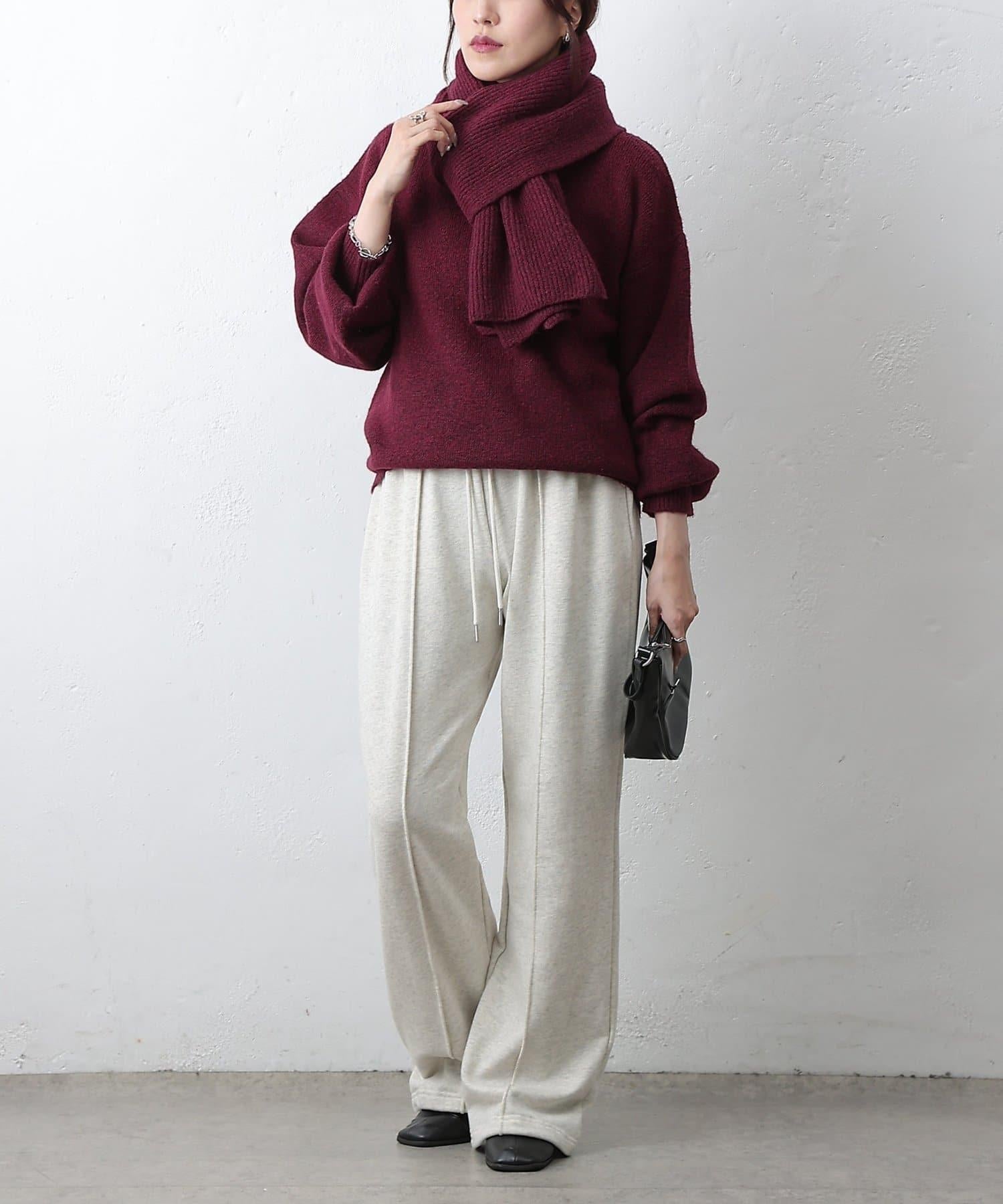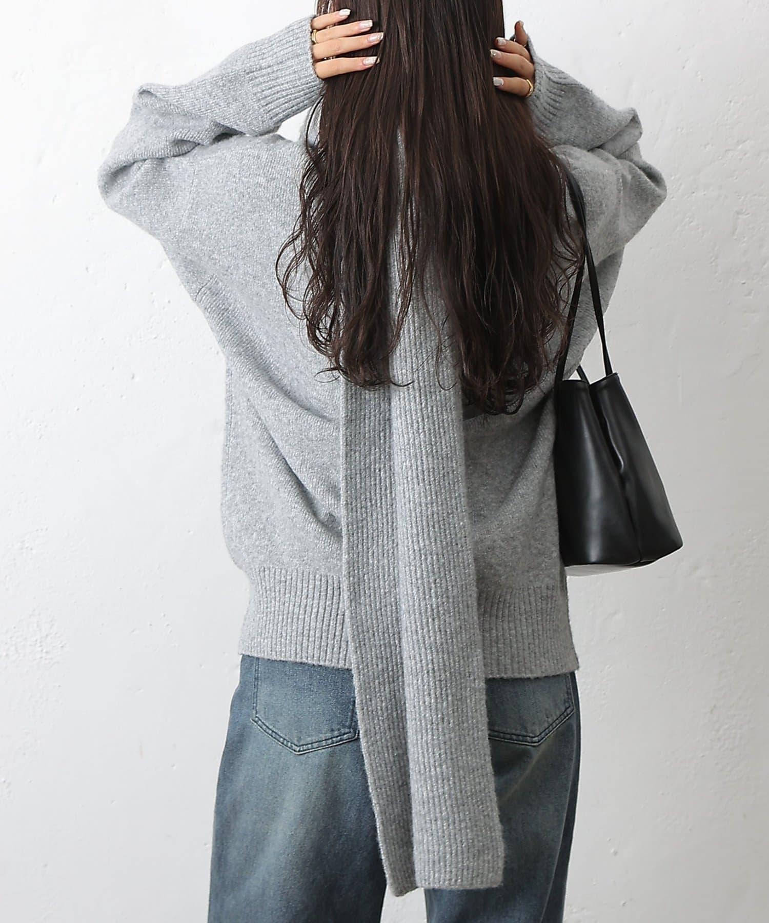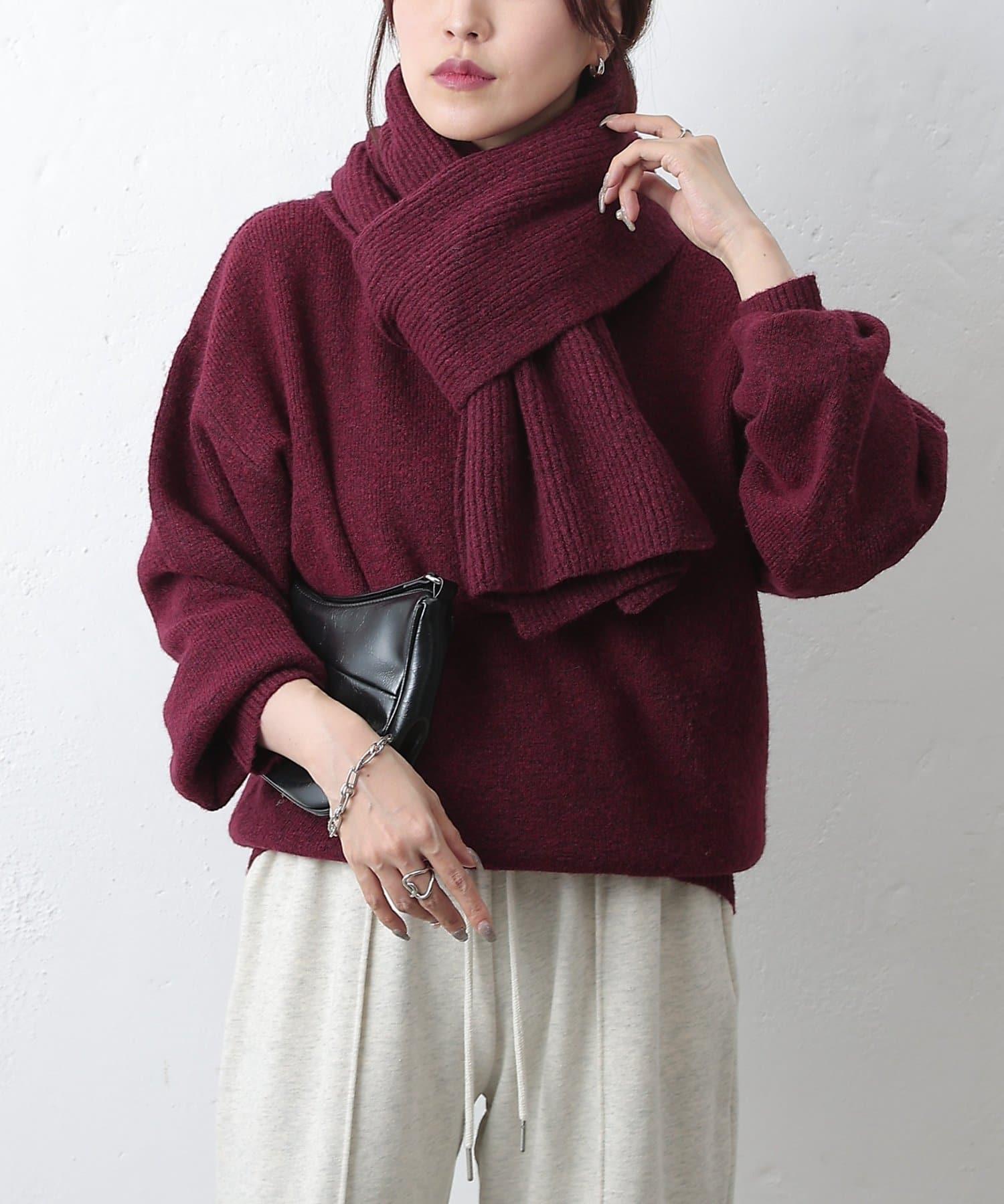 該套裝包括一件圓領針織衫和一條同色圍巾。