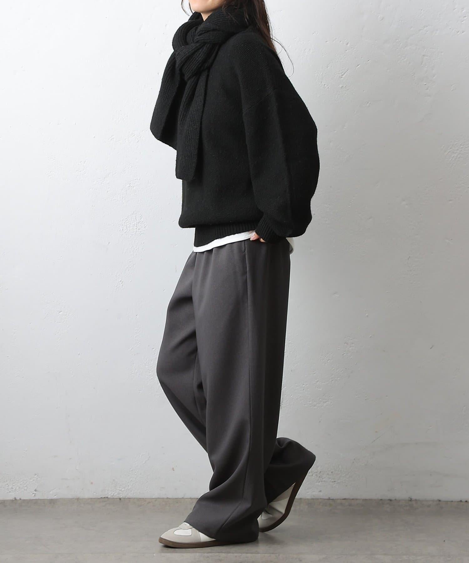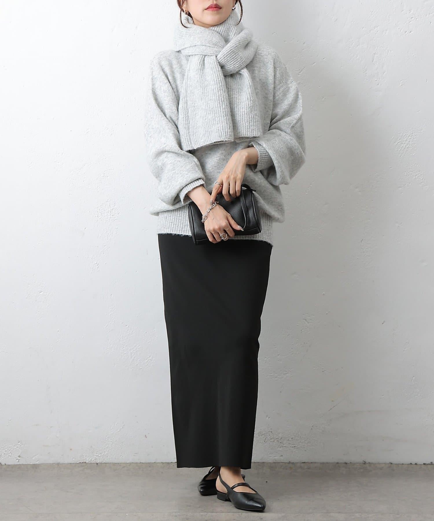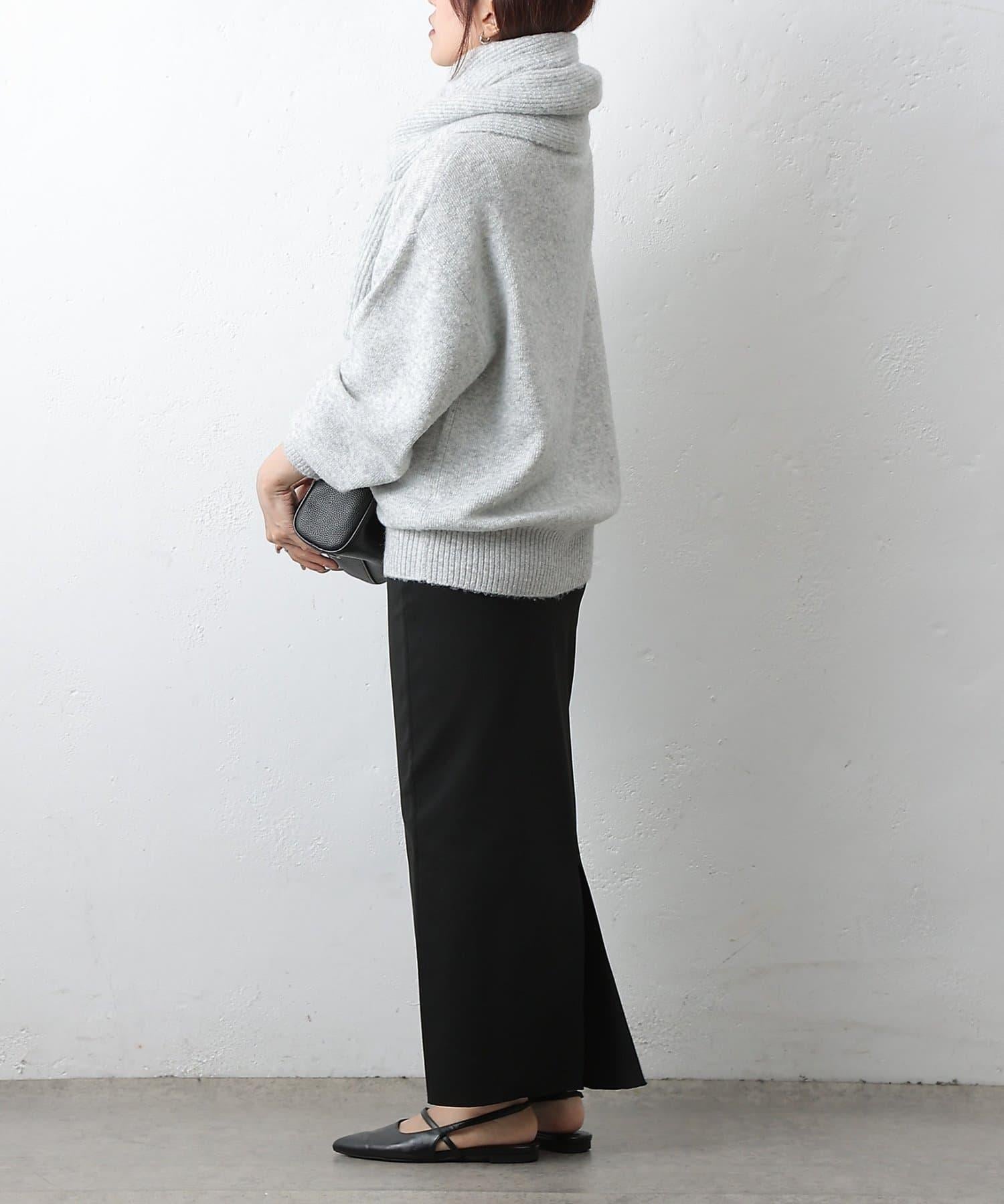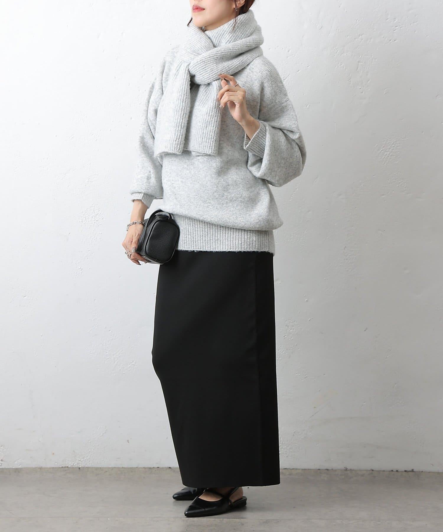 該套裝包括一件圓領針織衫和一條同色圍巾。