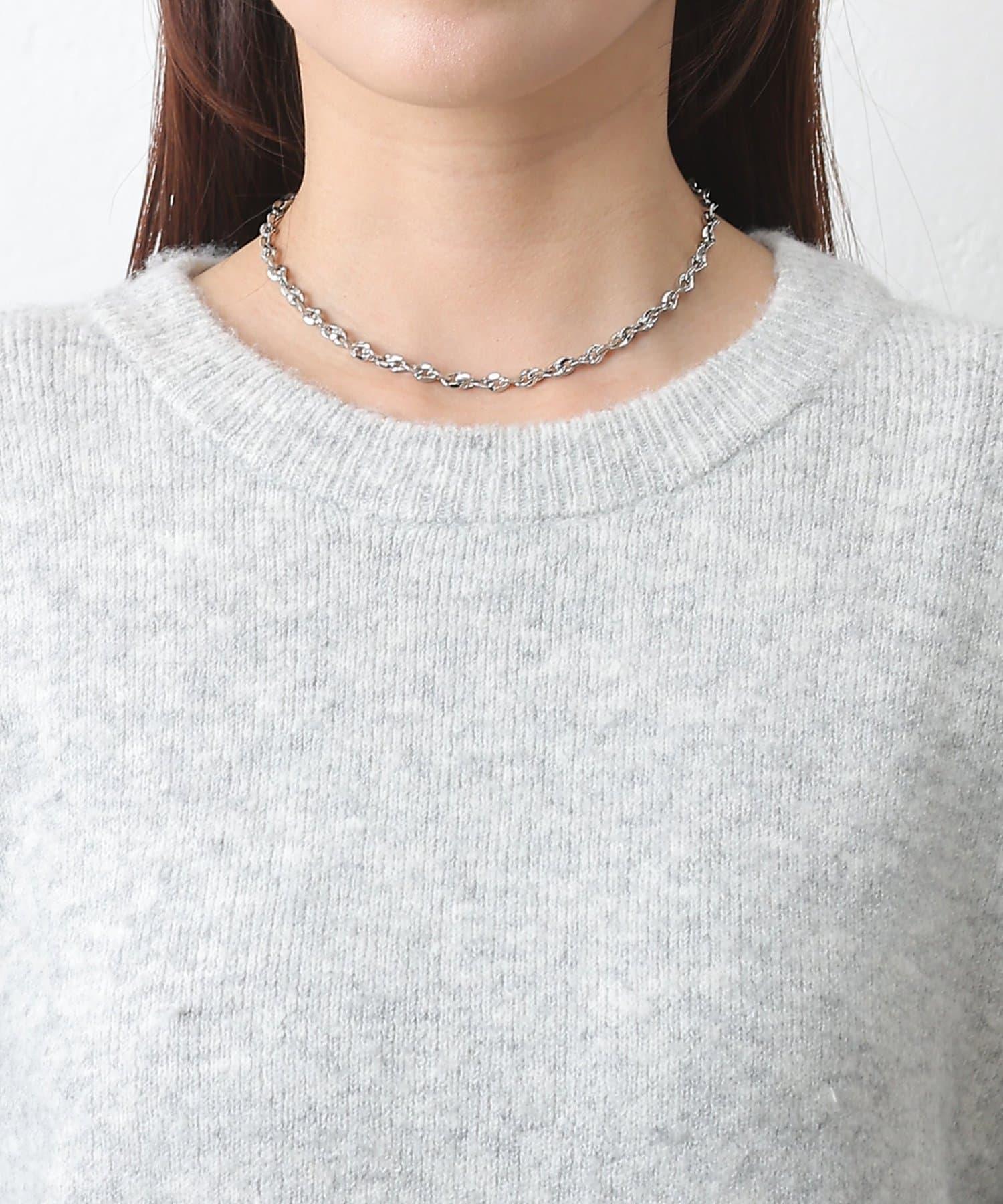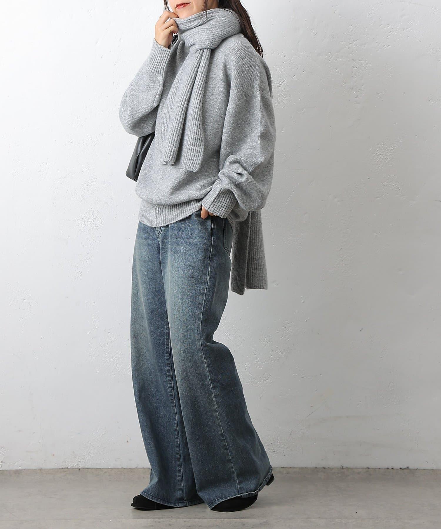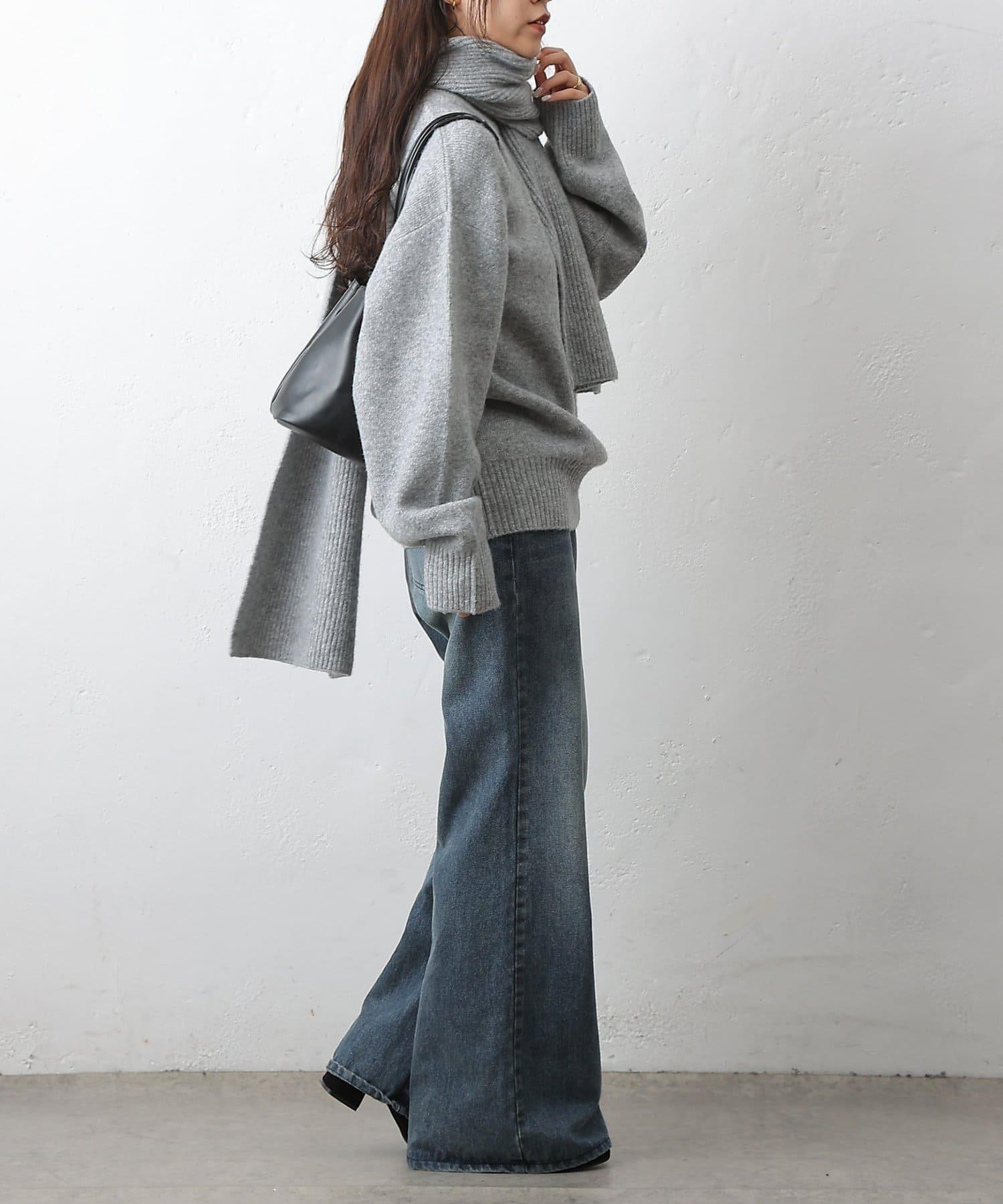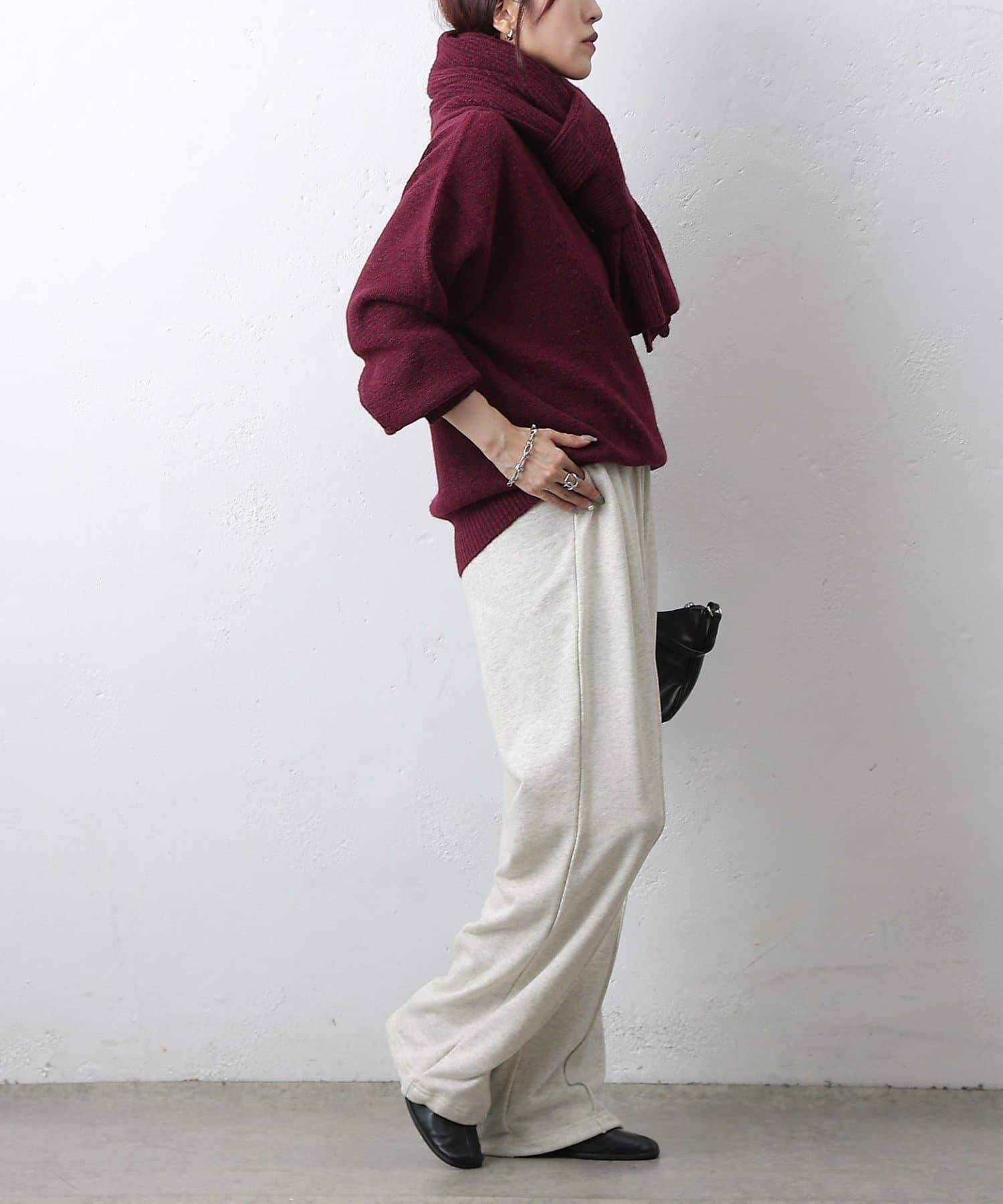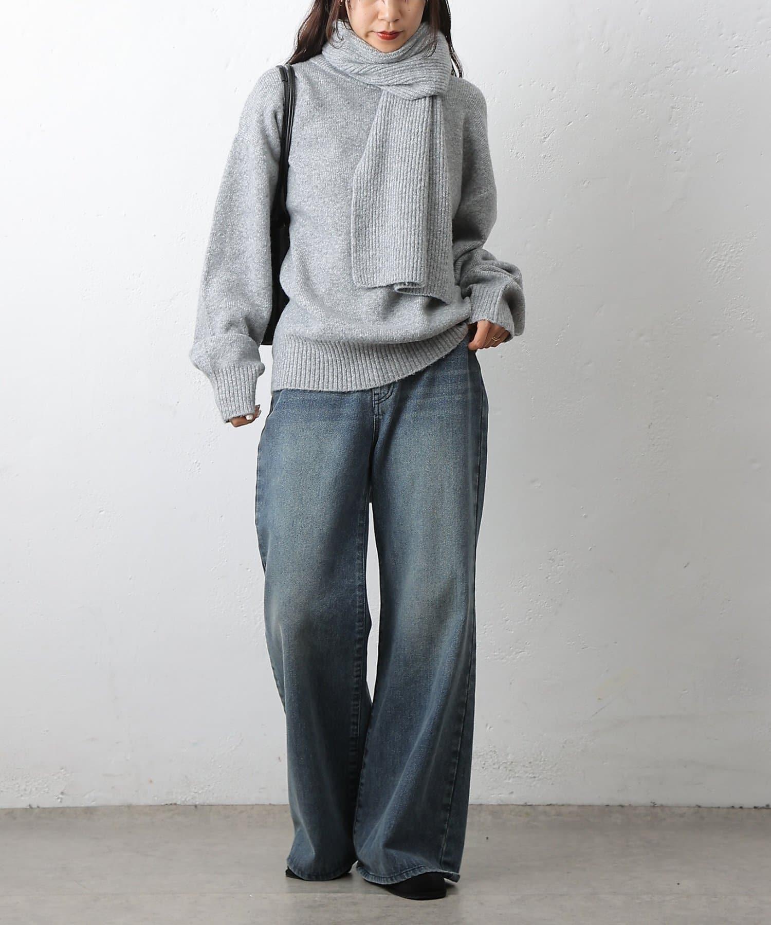 該套裝包括一件圓領針織衫和一條同色圍巾。