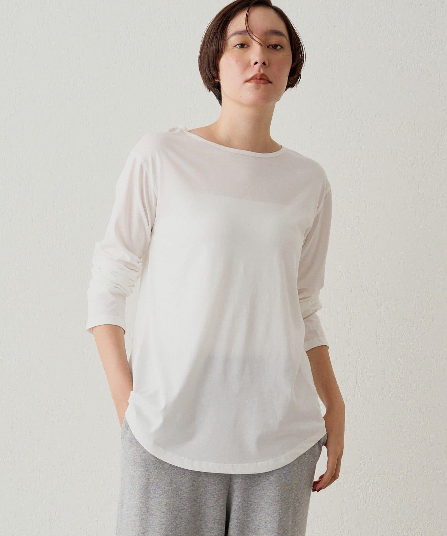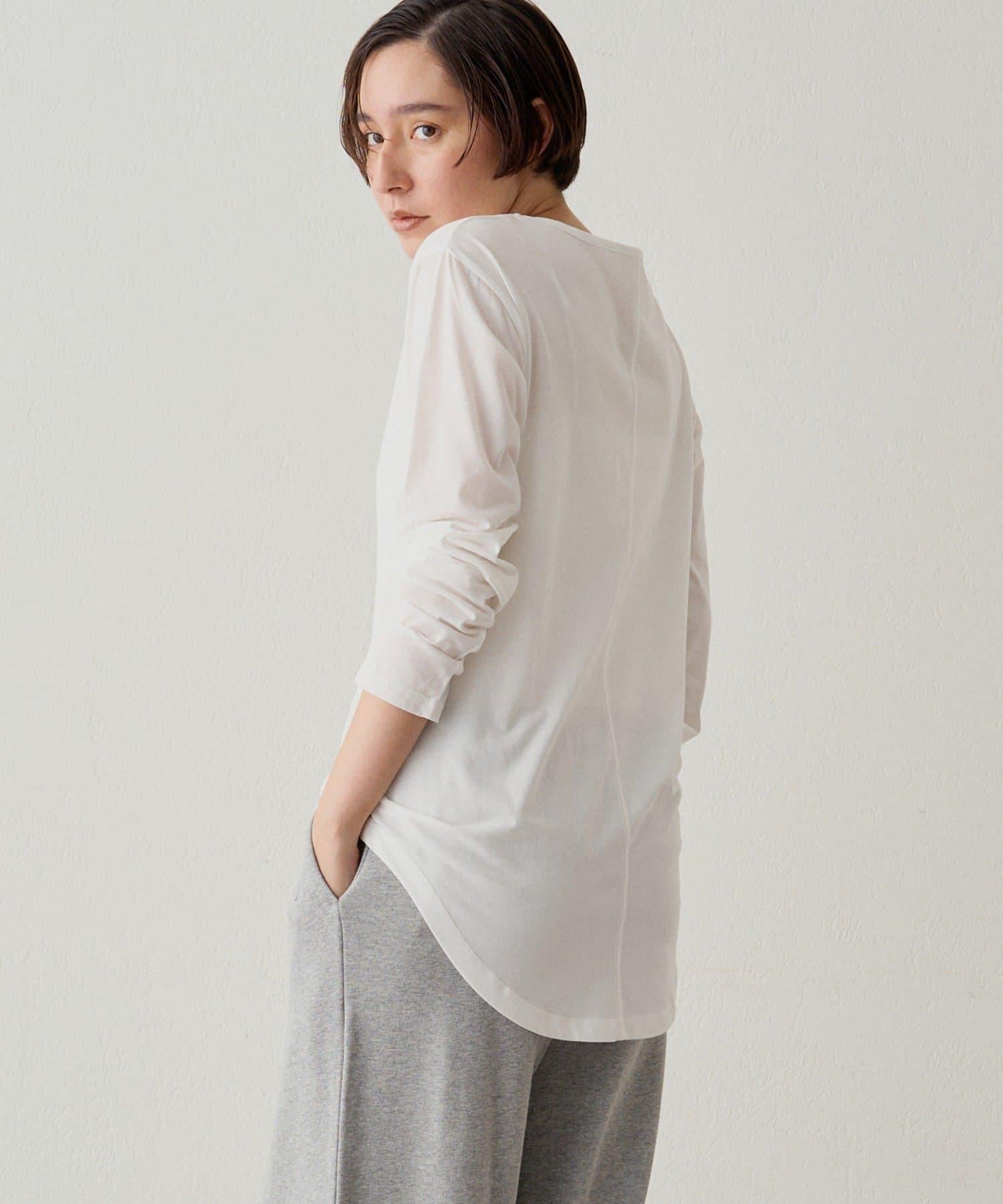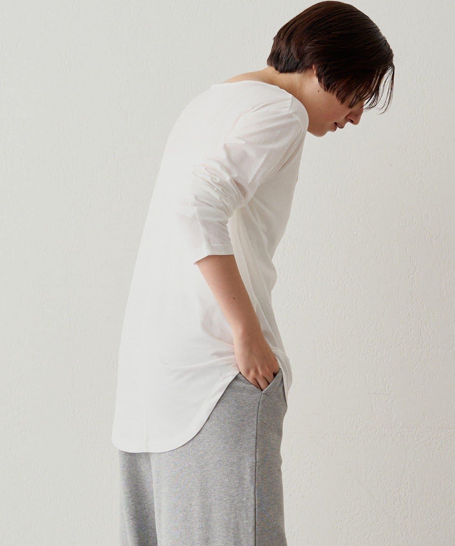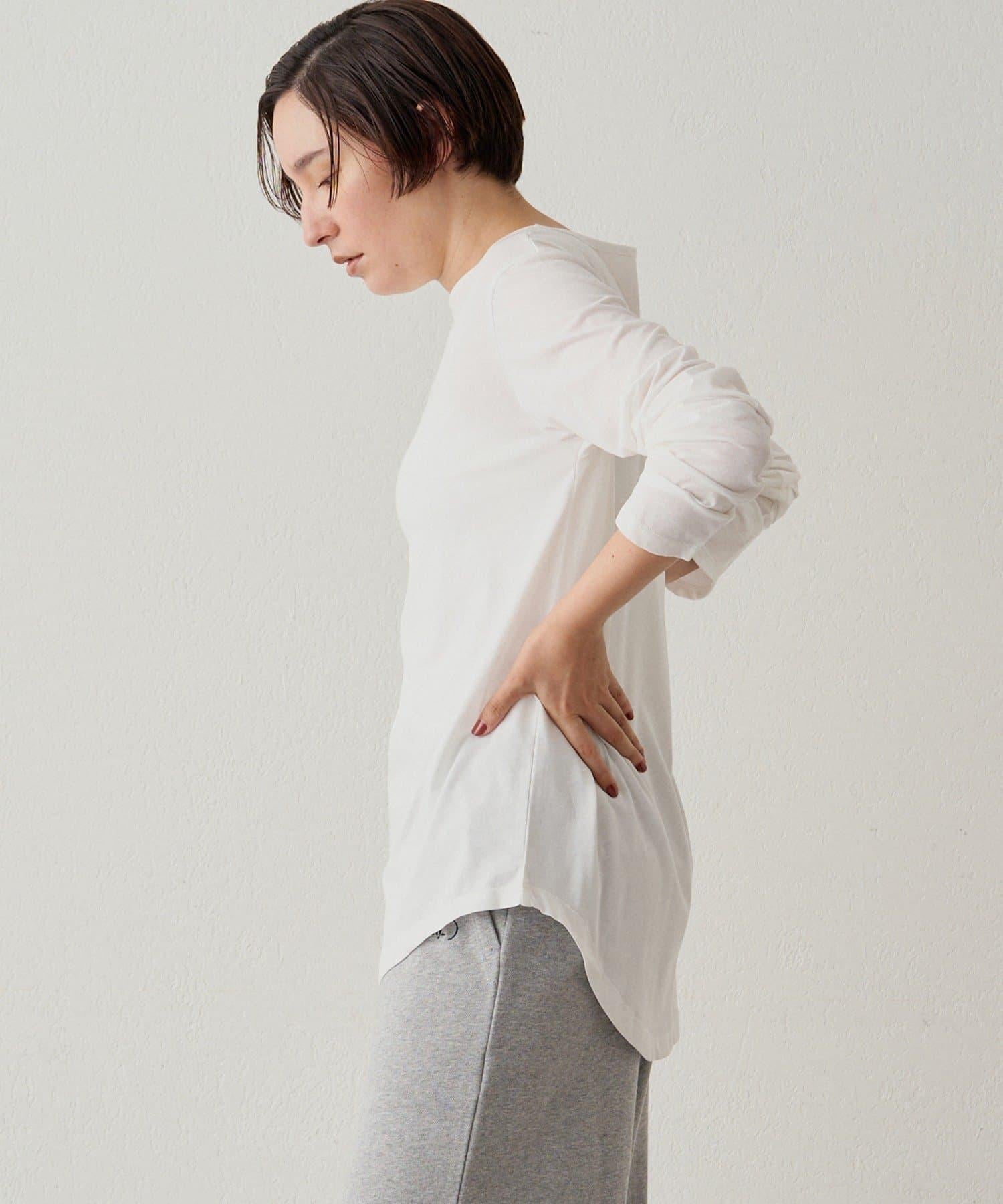 這款經典 T 恤的圓形下襬採用了稍長的圓尾設計。