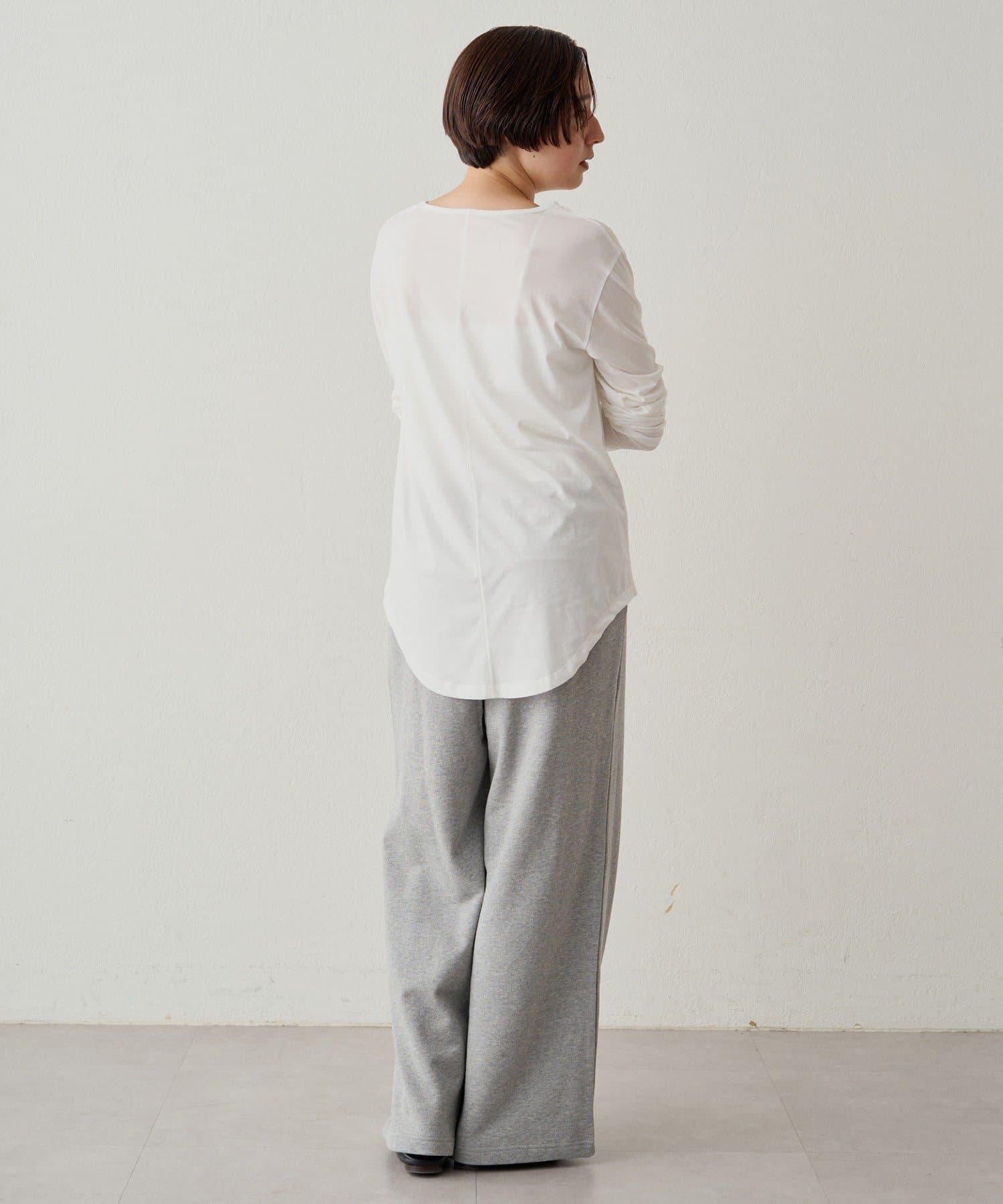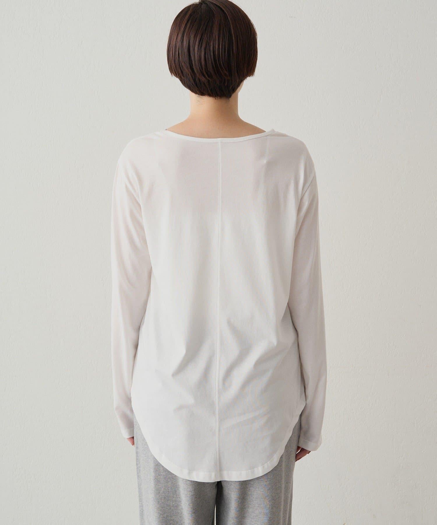 該款 T 恤的下襬為圓形,尾部為稍長的圓形。