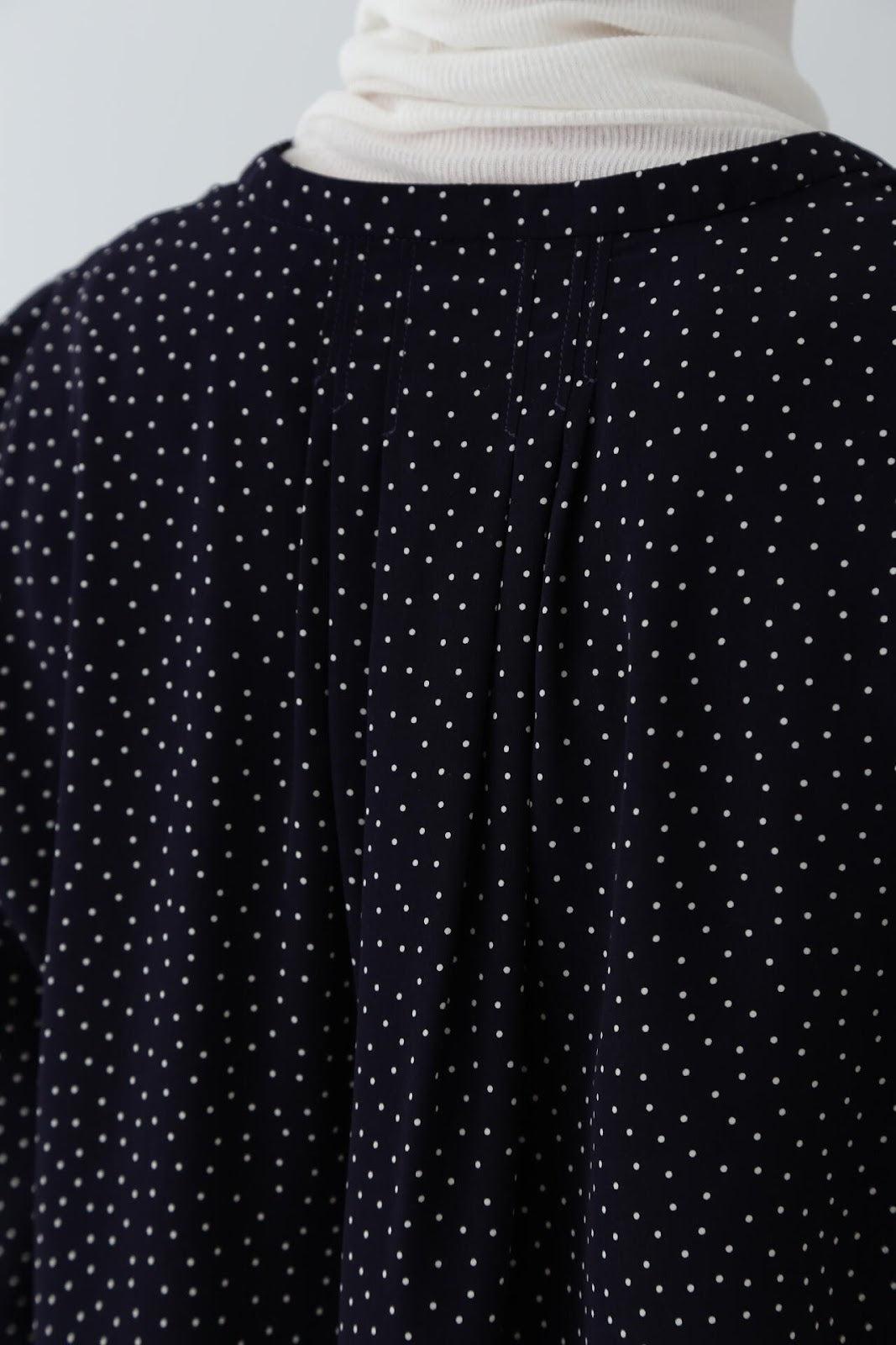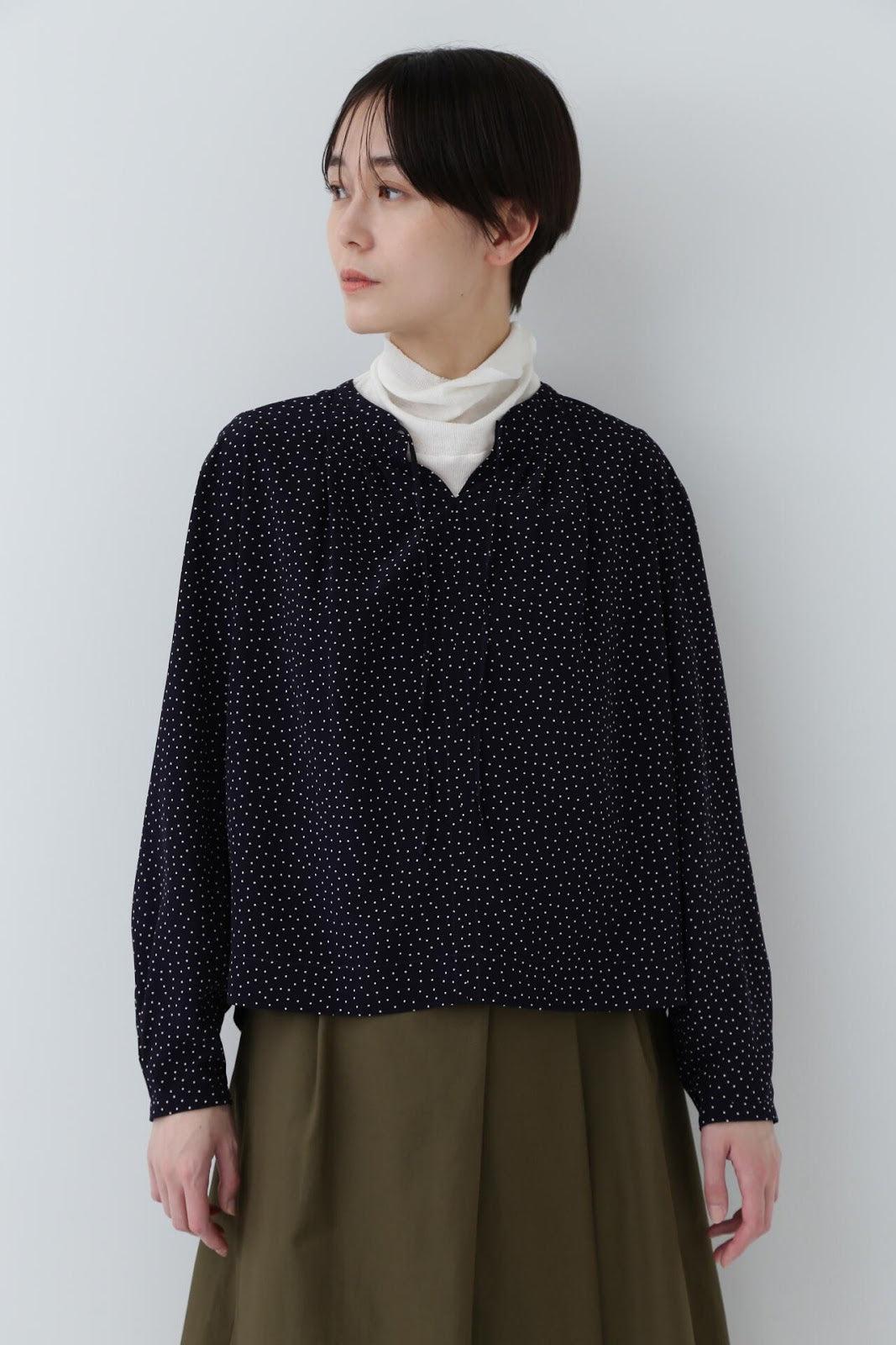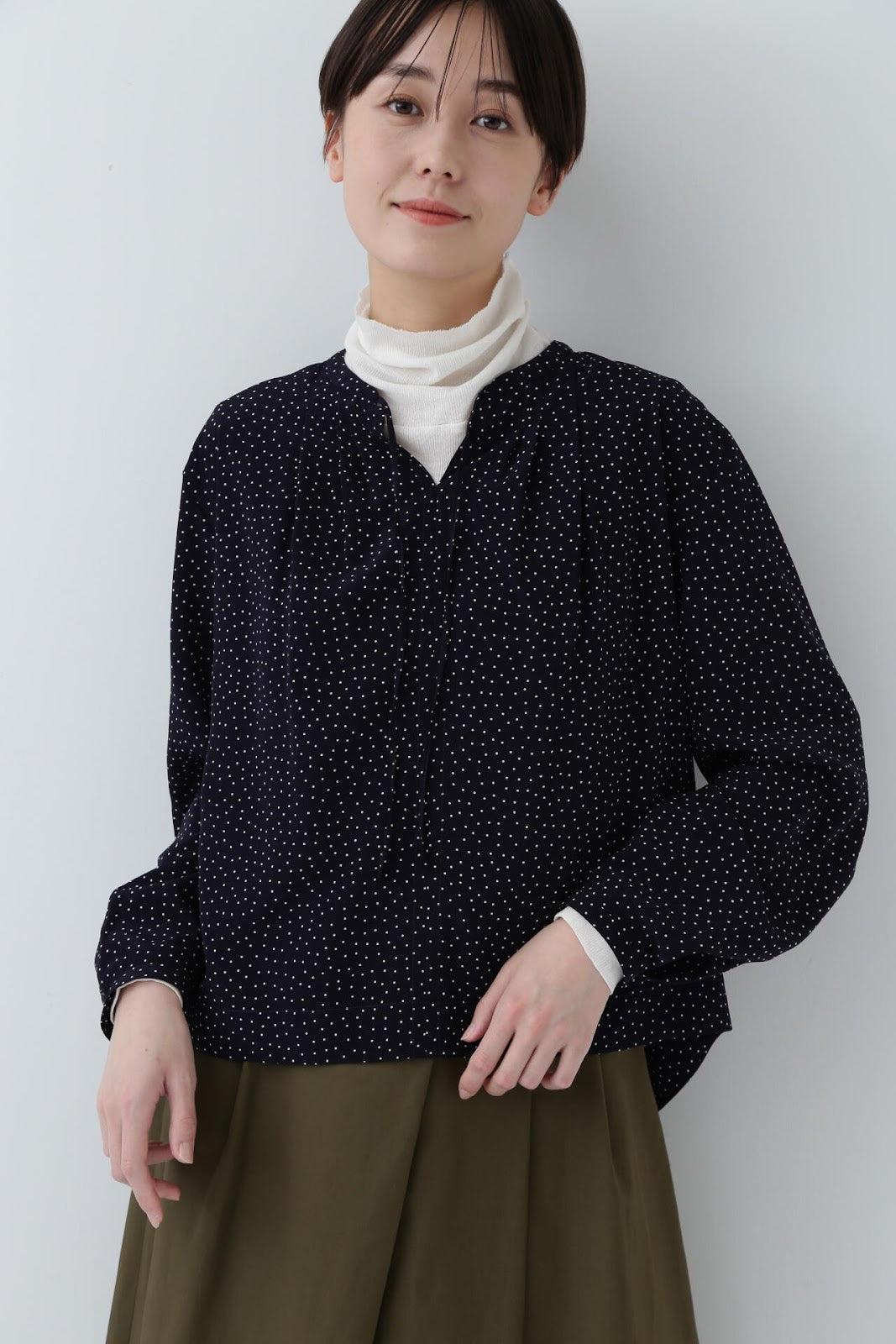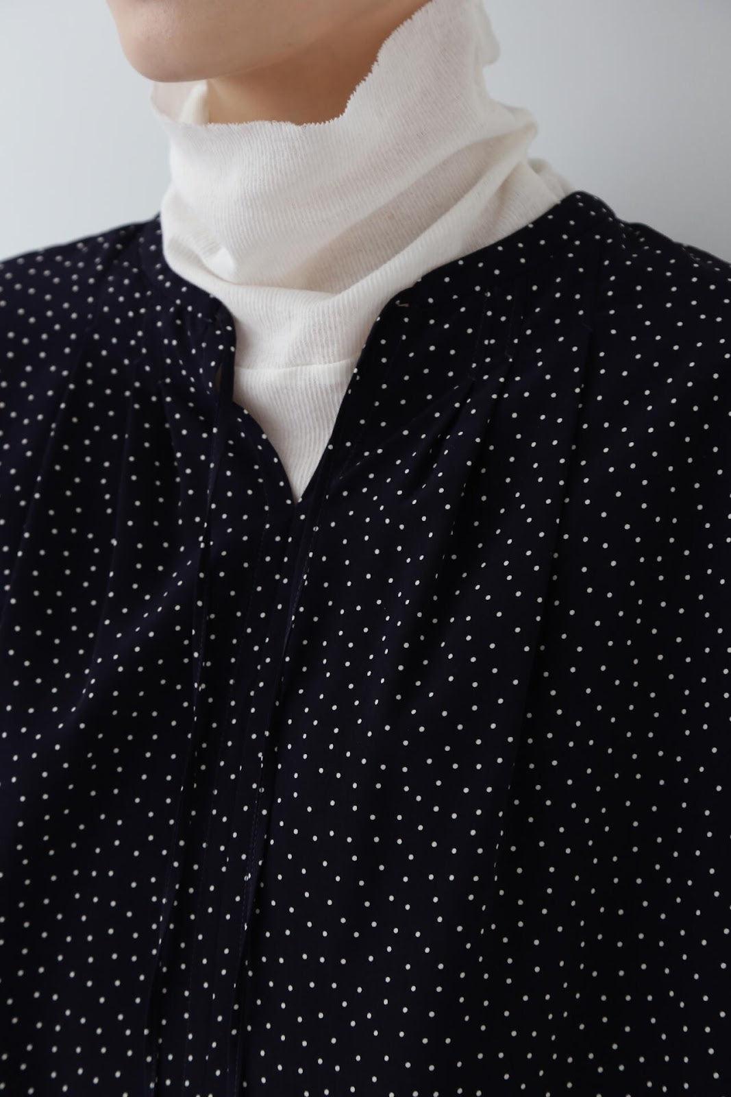 適用於任何場合的法式時尚成人圓點上衣 [設計特點] 盒形套頭上衣,領口處有褶襉細節。絲帶可輕輕繫上,也可自然垂下。獨創的隨機圓點印在滌綸底布上,其特點是表面美觀且不易掉色。有兩種顏色可供選擇:咖啡色 x 黑色和深藍色 x 咖啡色。也有純色可供選擇。高領針織衫採用經典輕盈的面料,手感柔軟舒適。也可將高領毛衣從頸部探出,穿出層次感。