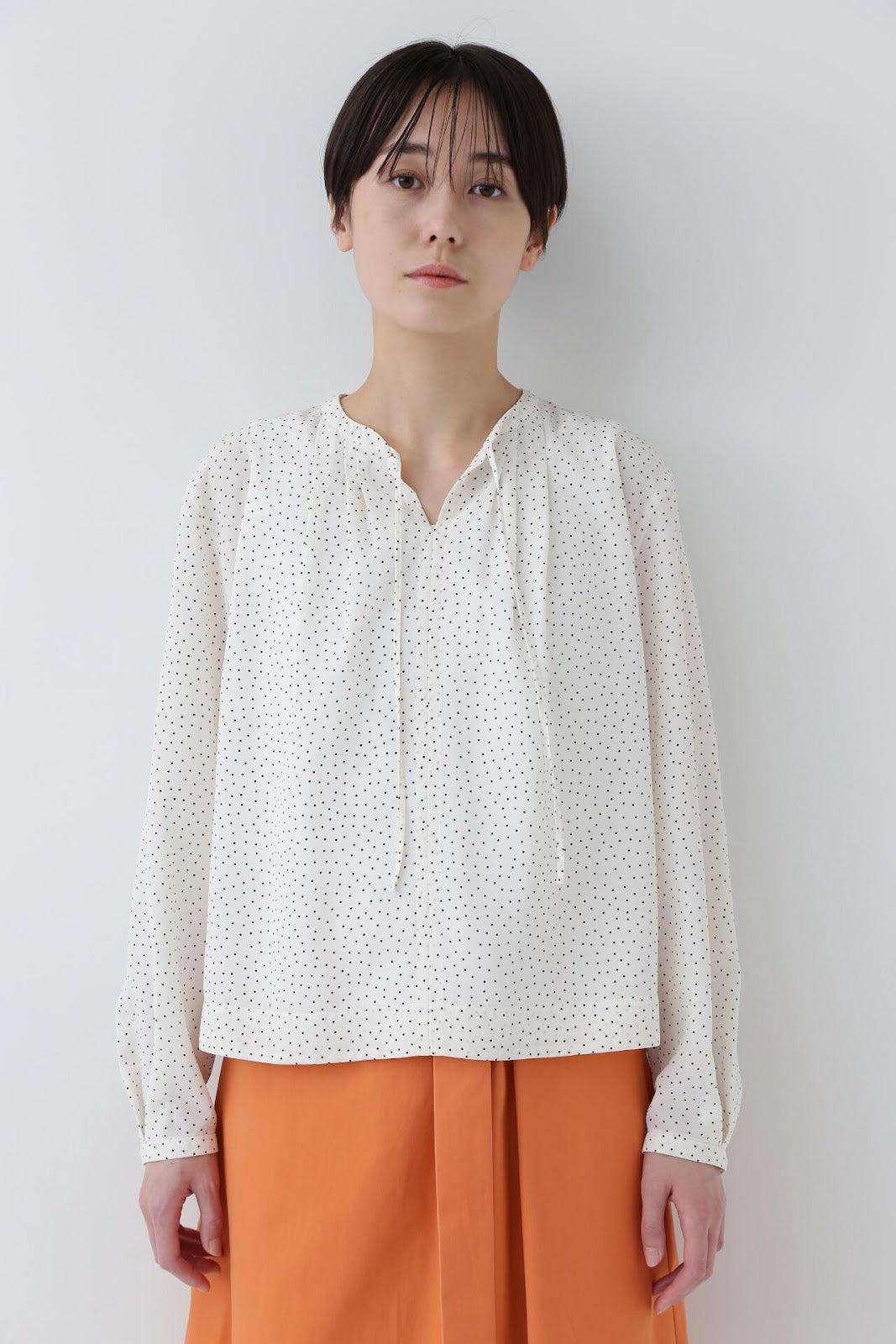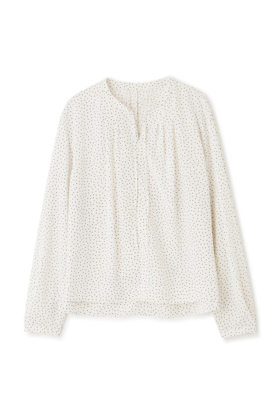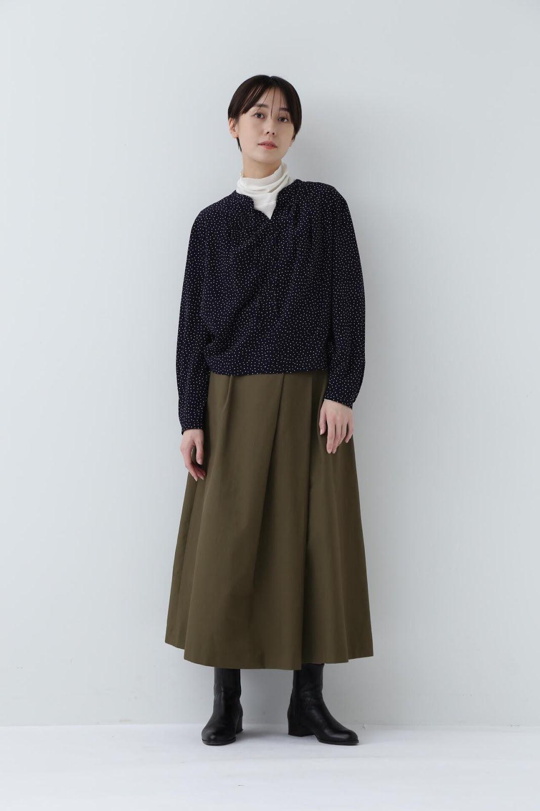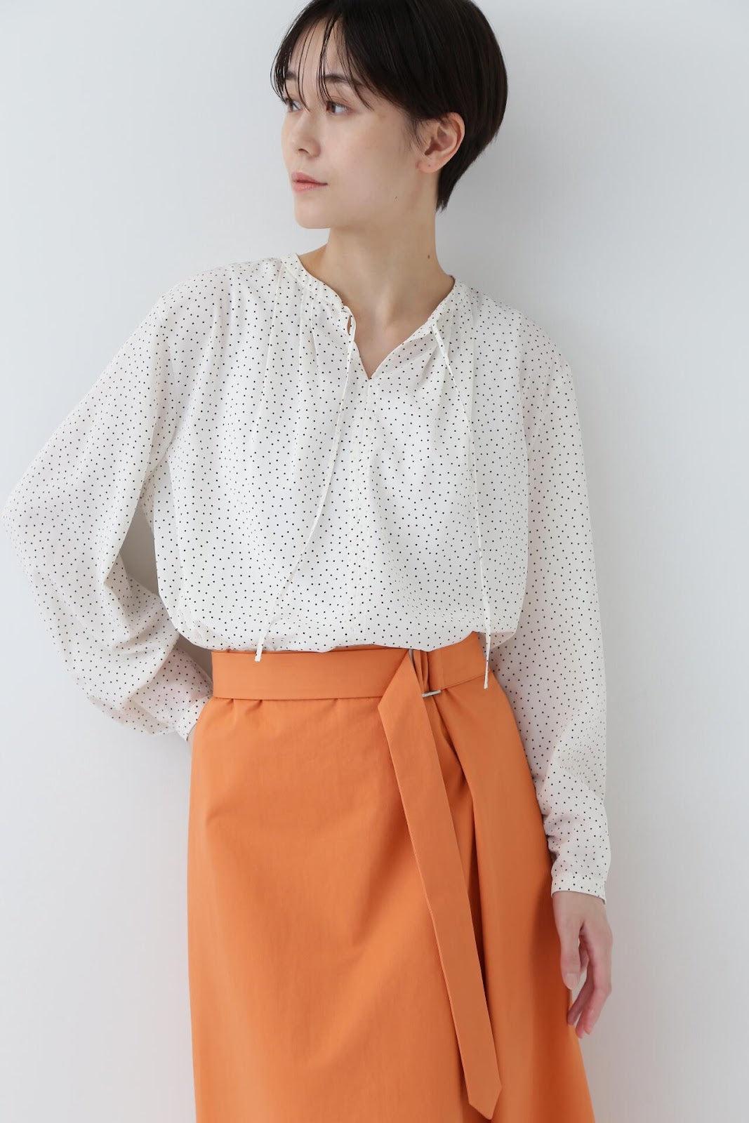 適用於任何場合的法式時尚成人圓點上衣 [設計特點] 盒形套頭上衣,領口處有褶襉細節。絲帶可輕輕繫上,也可自然垂下。獨創的隨機圓點印在滌綸底布上,其特點是表面美觀且不易掉色。有兩種顏色可供選擇:咖啡色 x 黑色和深藍色 x 咖啡色。也有純色可供選擇。高領針織衫採用經典輕盈的面料,手感柔軟舒適。也可將高領毛衣從頸部探出,穿出層次感。