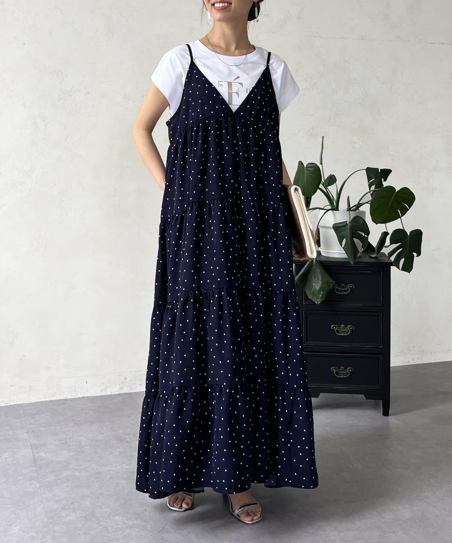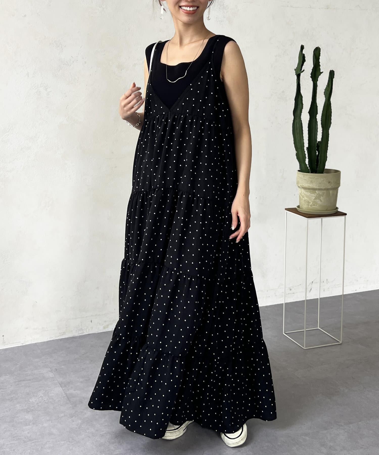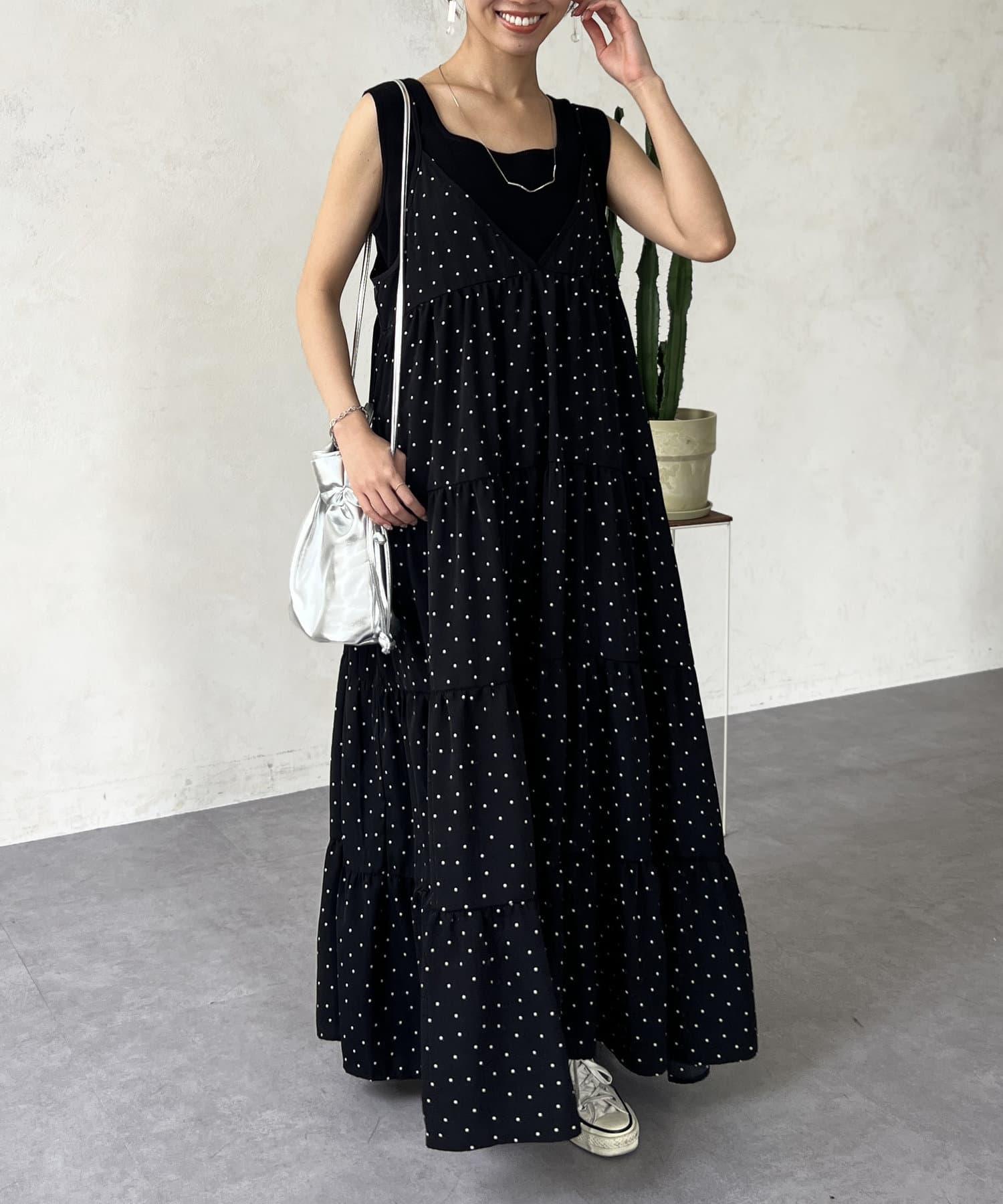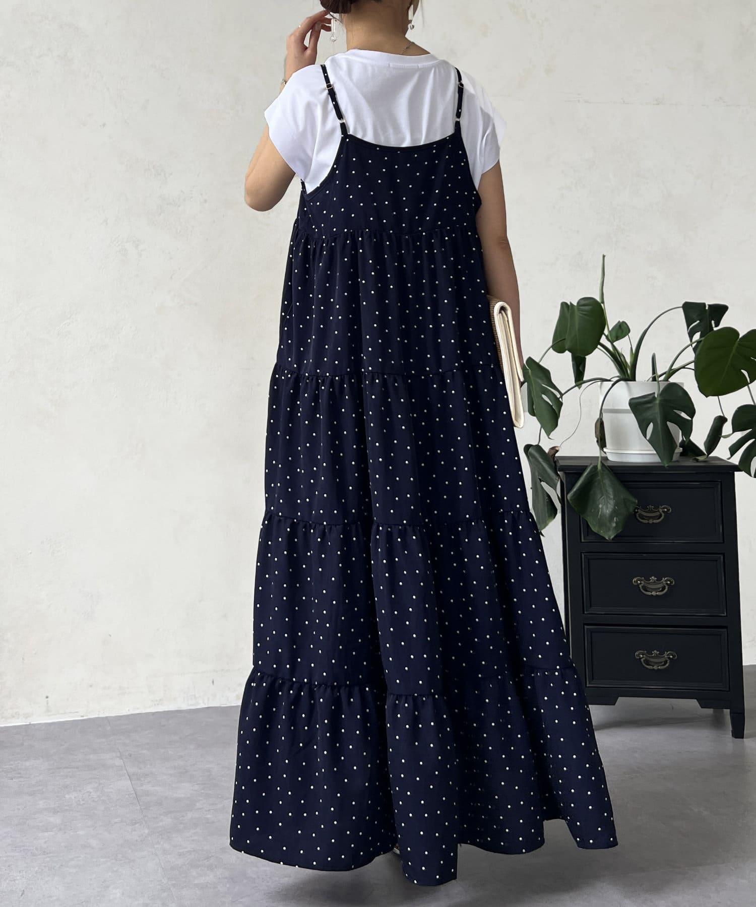 圓點吊帶連衣裙